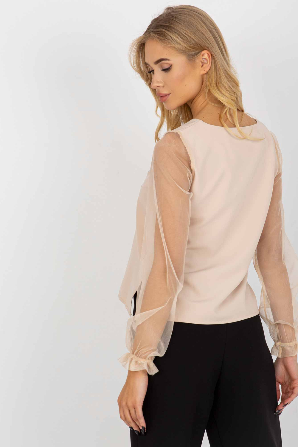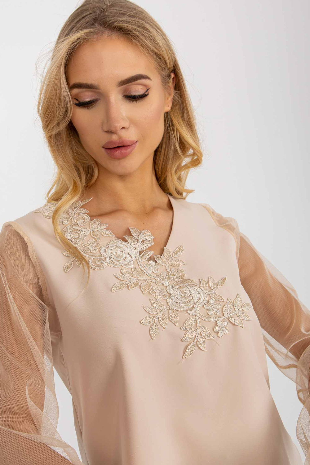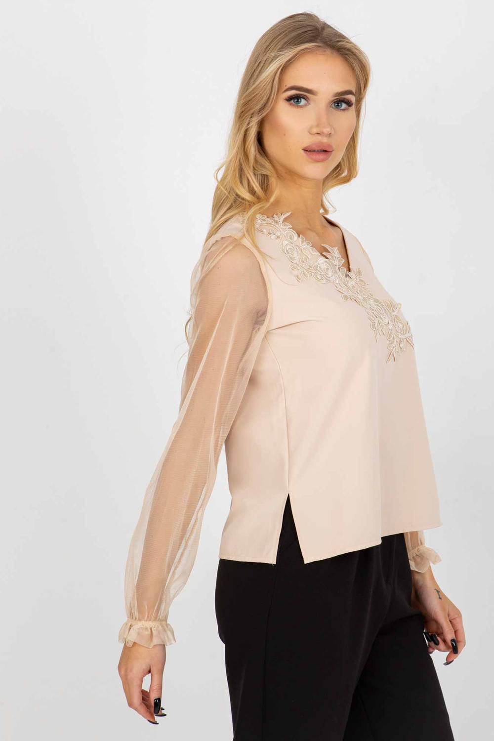 Bēša eleganta svinīga blūze ar mežģīnēm.
