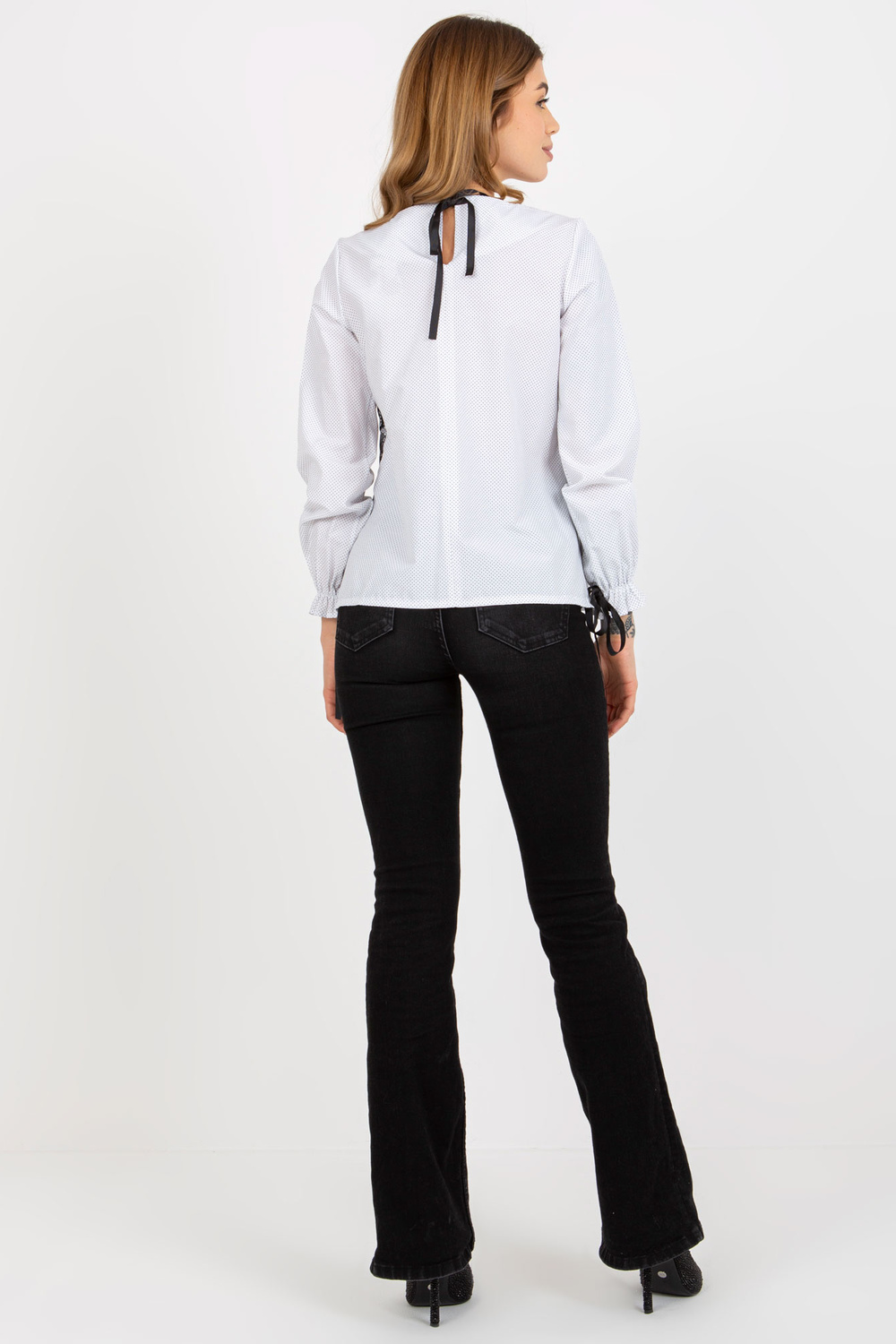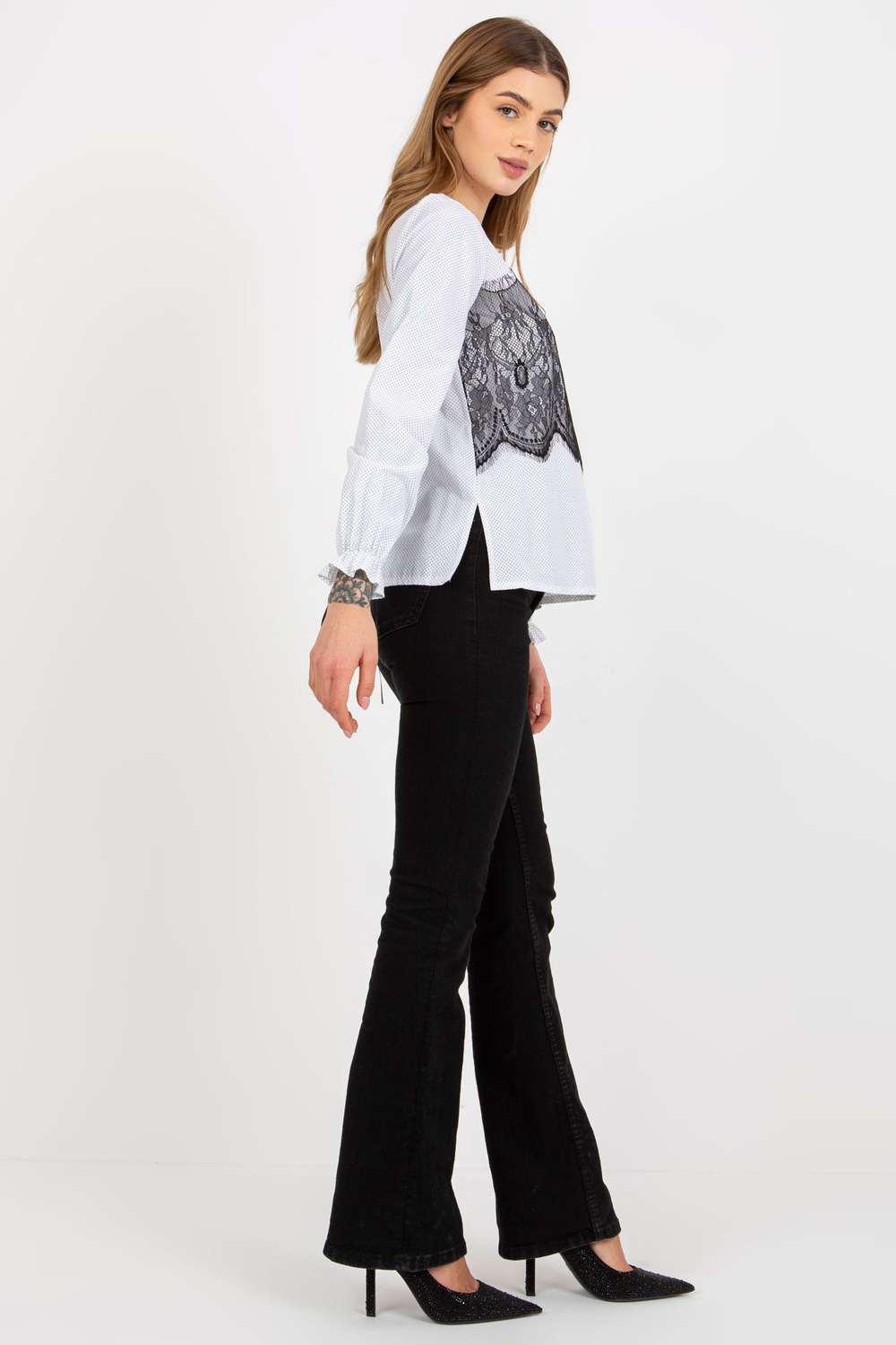 Balta un melna svinīga blūze ar punktiem ar mežģīnēm.