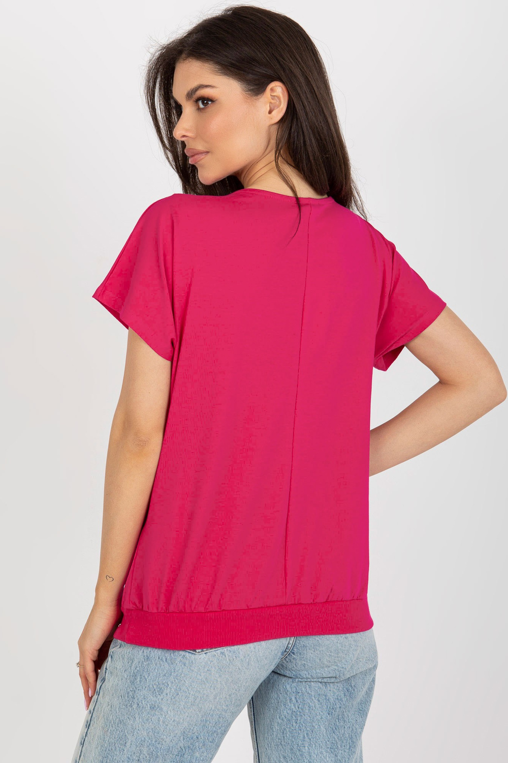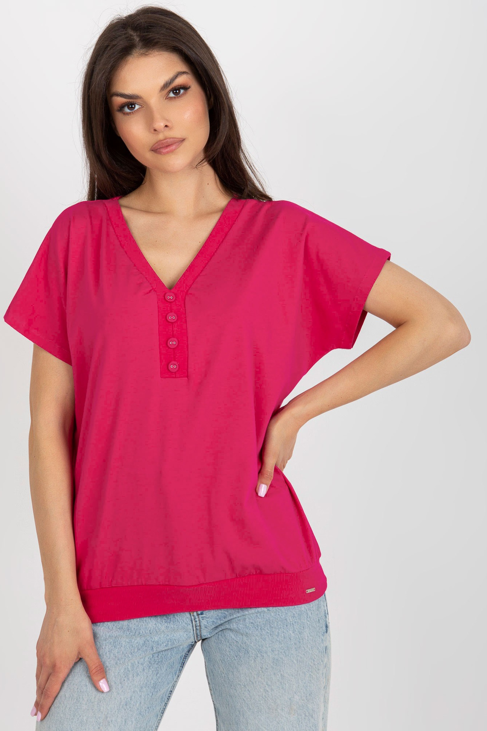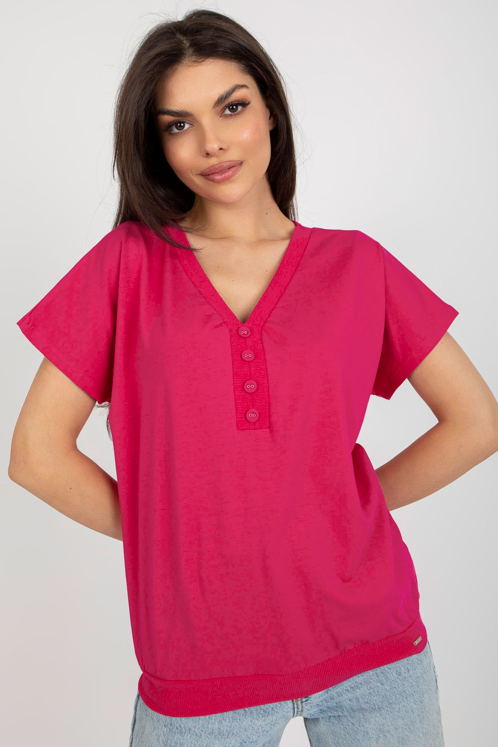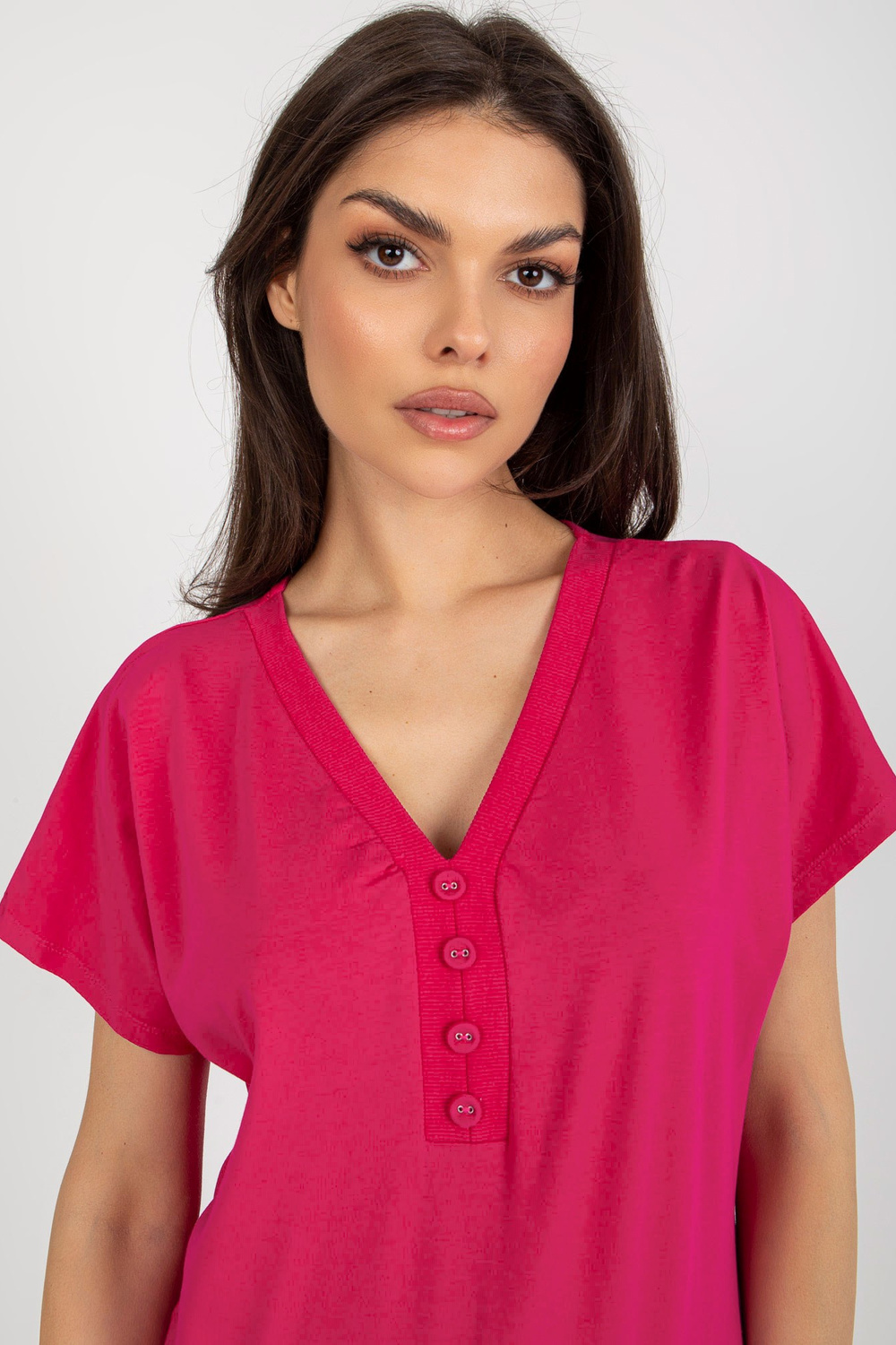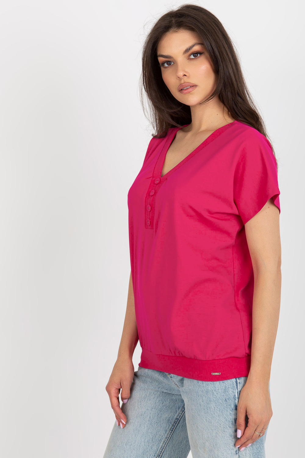 Fuksijas krāsas brīva pamata blūze ar pogām.