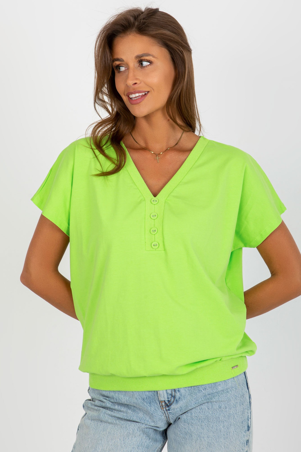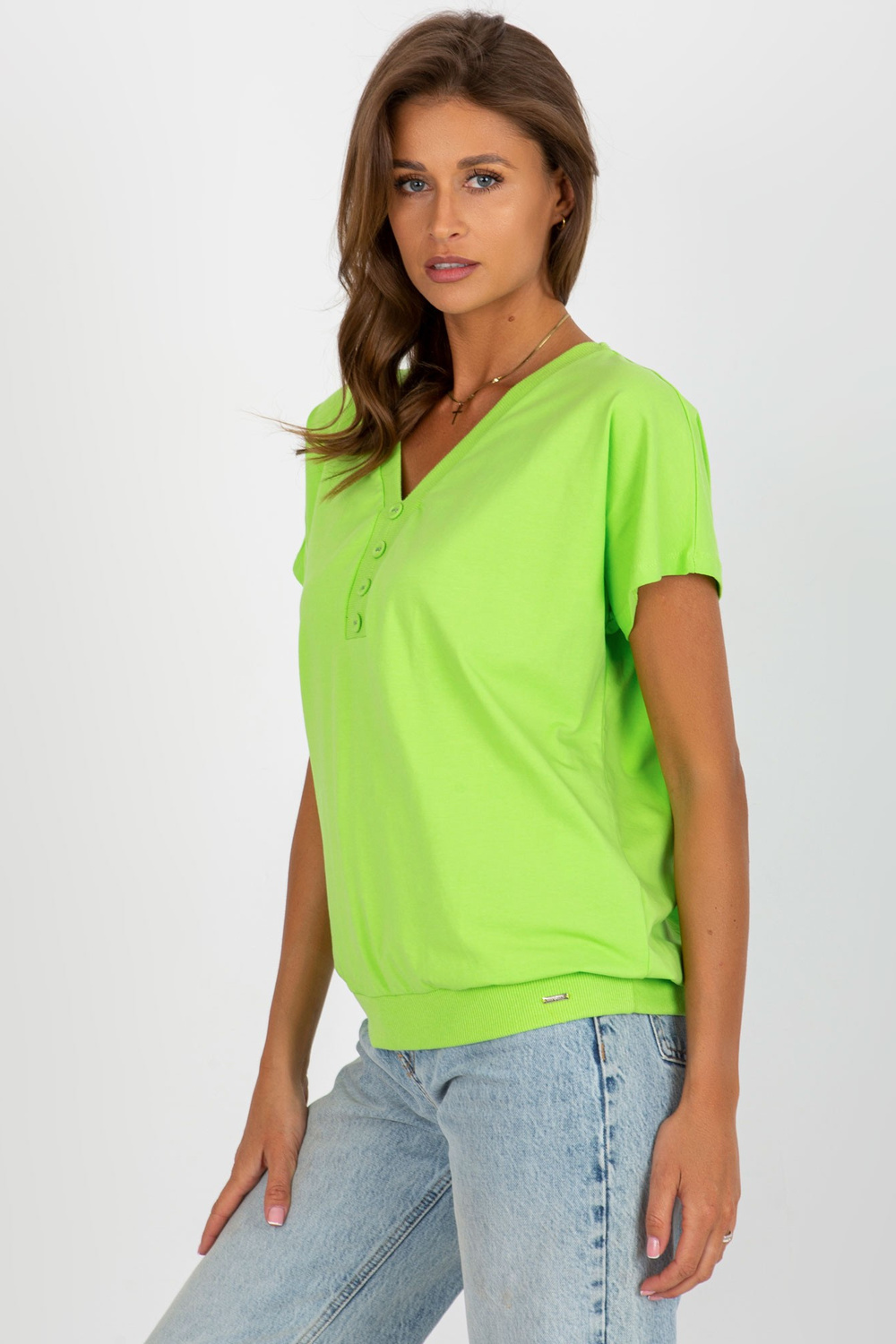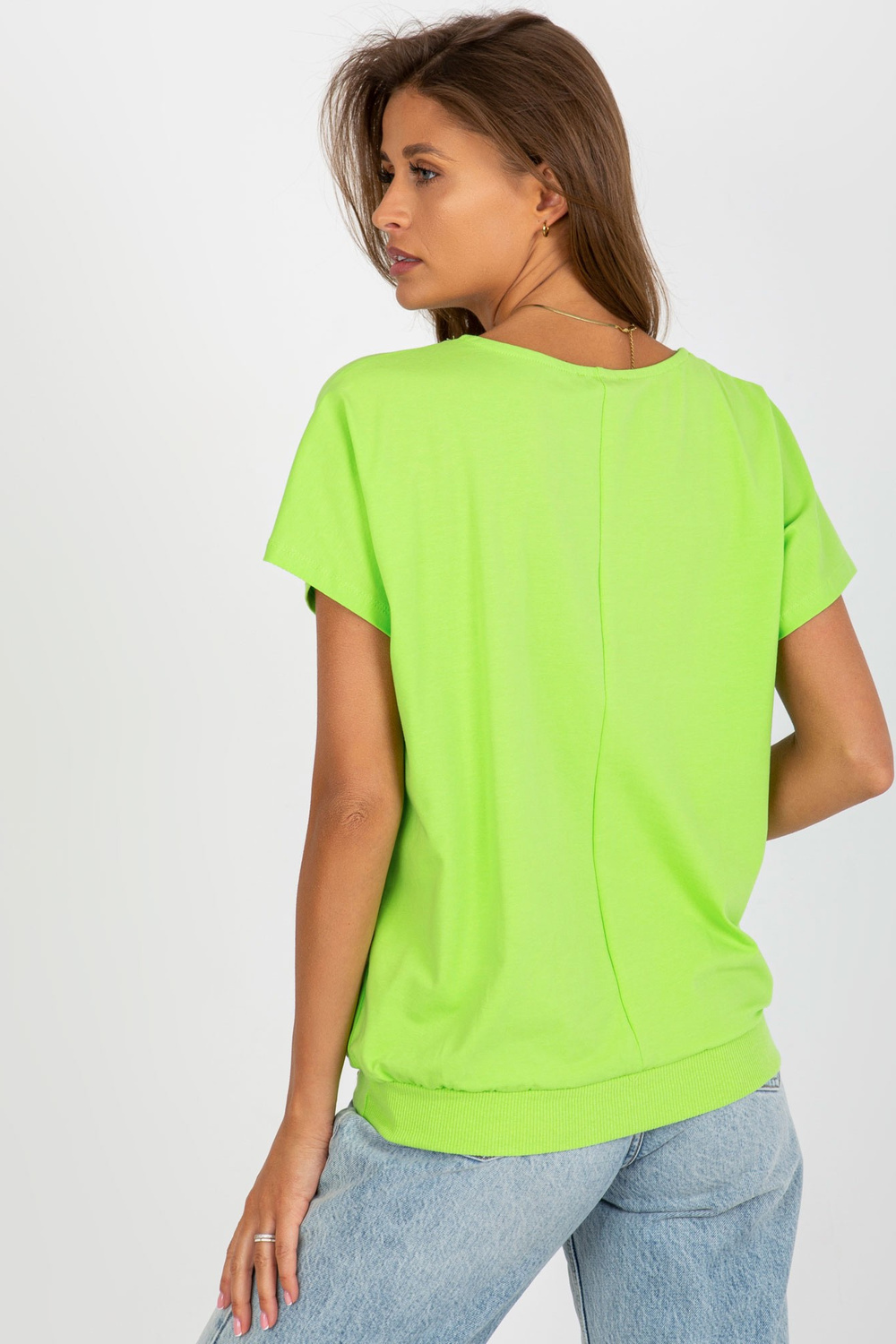 Lime pamata sieviešu blūze ar īsām piedurknēm. Preces kods: RV-BZ-8827.95 Dominējošais raksts: gluds Stils: Ikdienas gadījums: katru dienu, vasarai, pilsētai, pastaigai Modele valkā S/M izmēru. Izmēri: augstums 176 cm, krūtis 85 cm, viduklis 64 cm, h