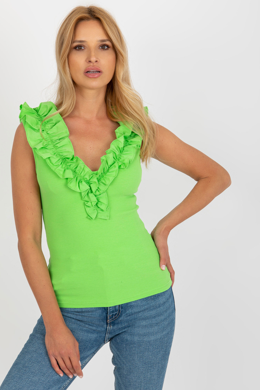 Gaiši zaļš rievotu tops ar kakla izgriezumu aizmugurē.