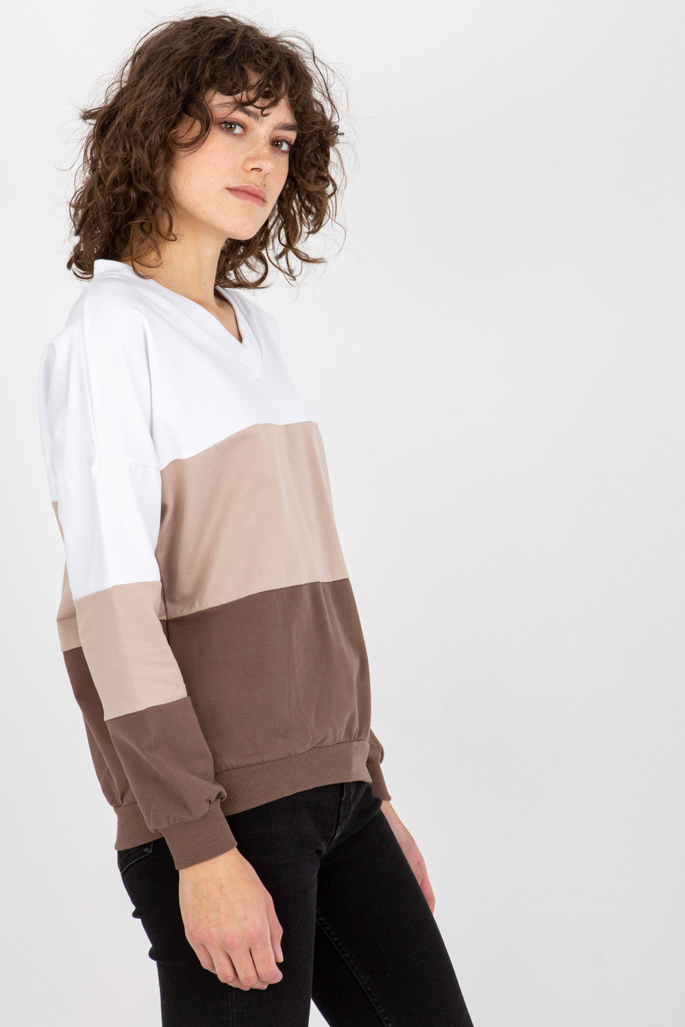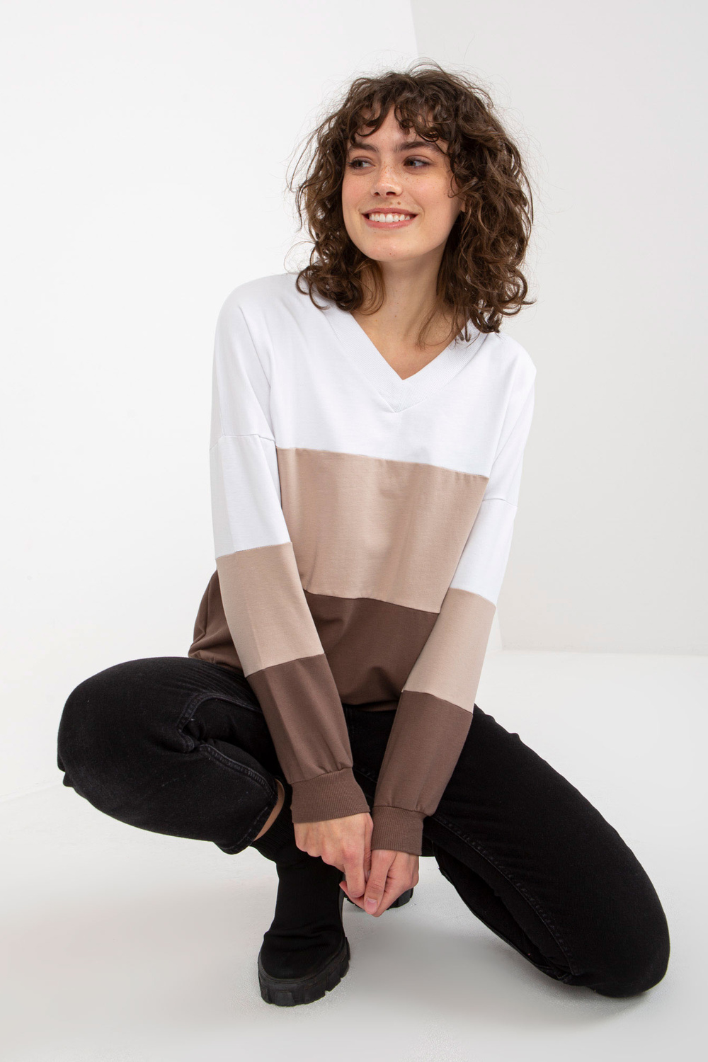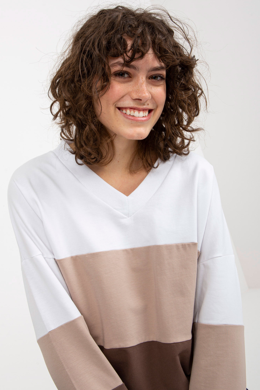 Balts un brūns pamata sporta krekls ar V veida kakla izgriezumu RUE PARIS.