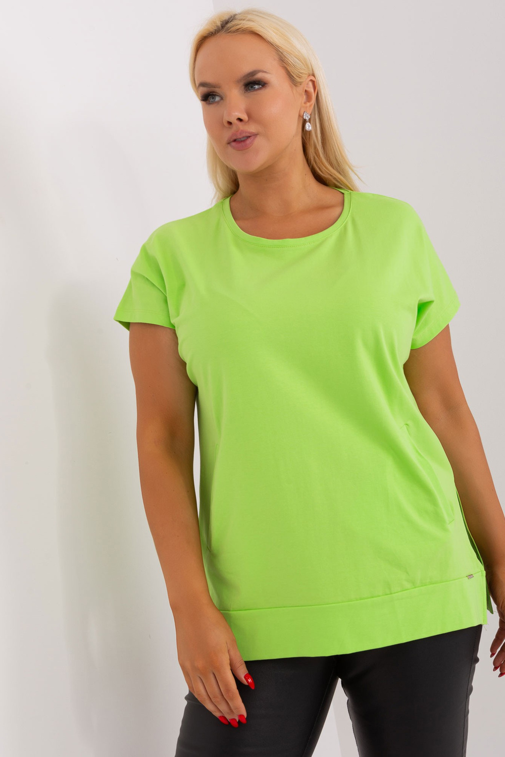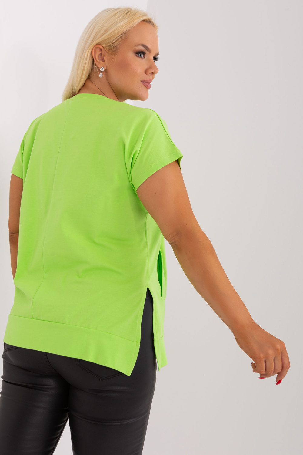 Modeles izmēri viena izmēra blūze, mērot plakana: platums zem rokām - 56 cm, kopējais garums - 67 cm.