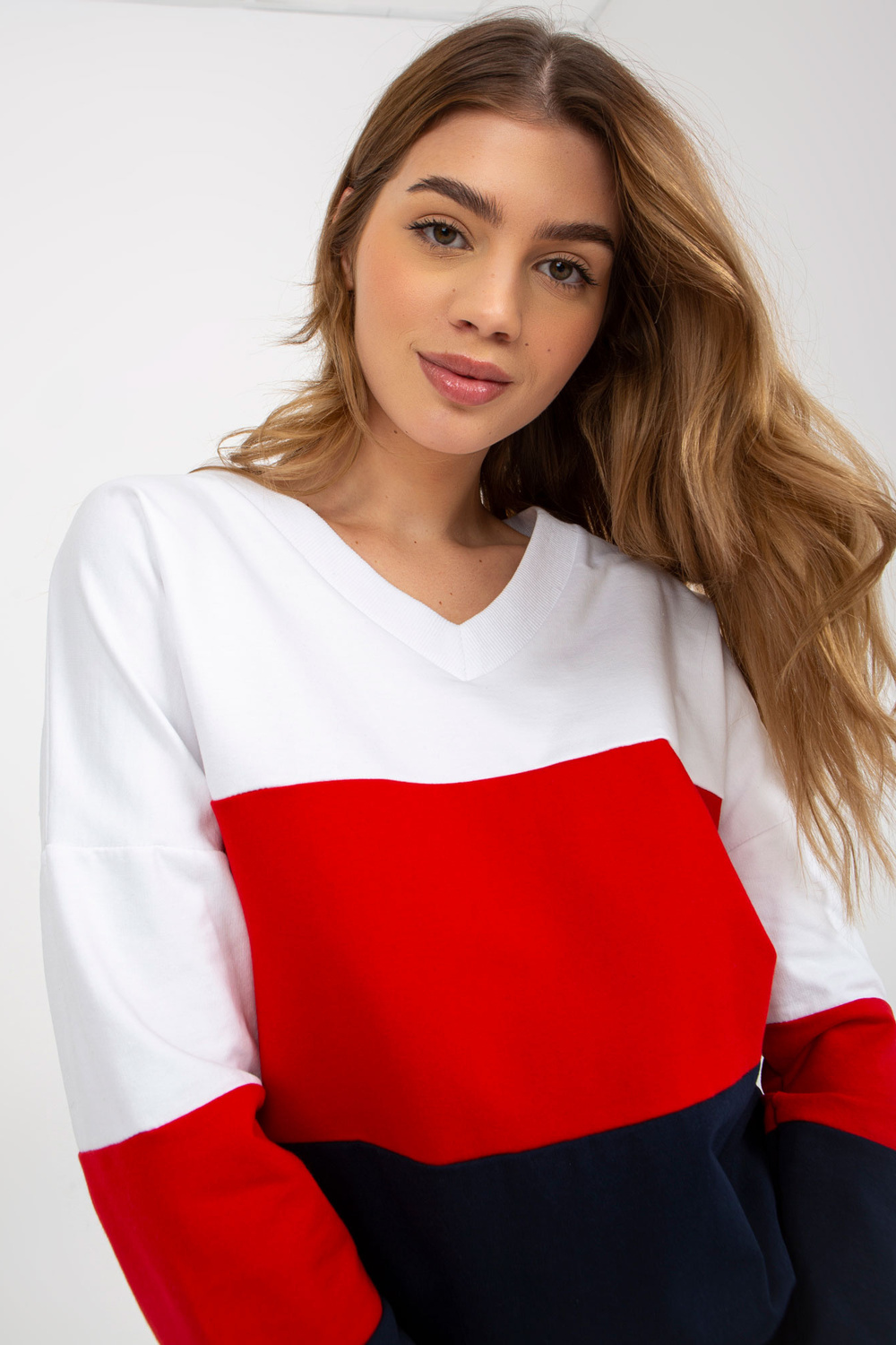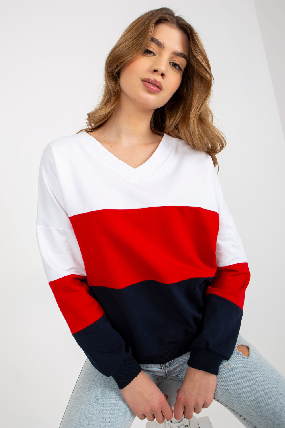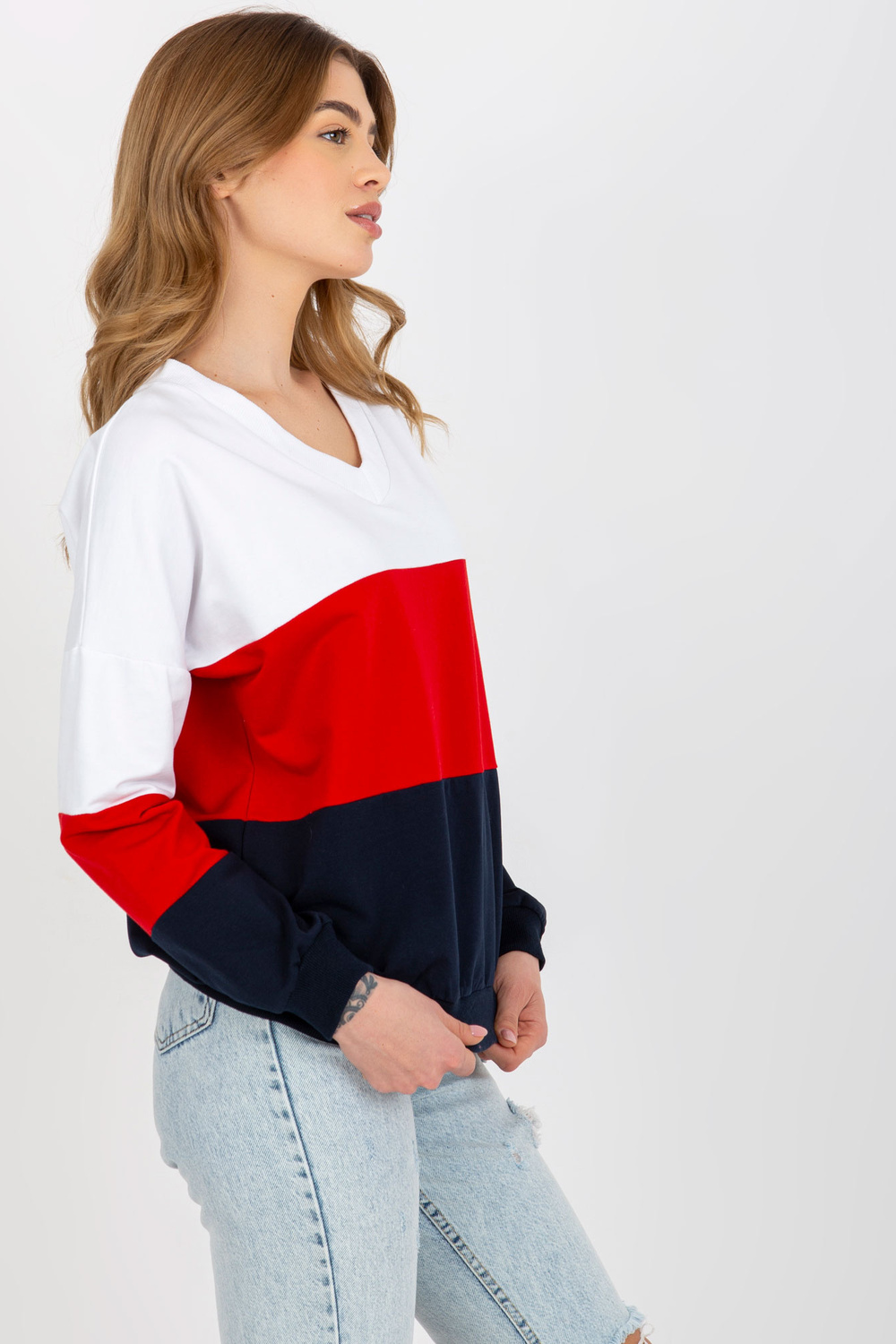 Balts un tumši zils pamata sporta krekls bez kapuces RUE PARIS. Preces kods: RV-BL-8328.86P Dominējošais raksts: gluds Stils: ikdienišķs Notikums: ikdienišķs, darbam, pilsētai Modele valkā S/M izmēru. Modeļa izmēri: augums 173 cm, krūtis 78 cm, viduklis 61
