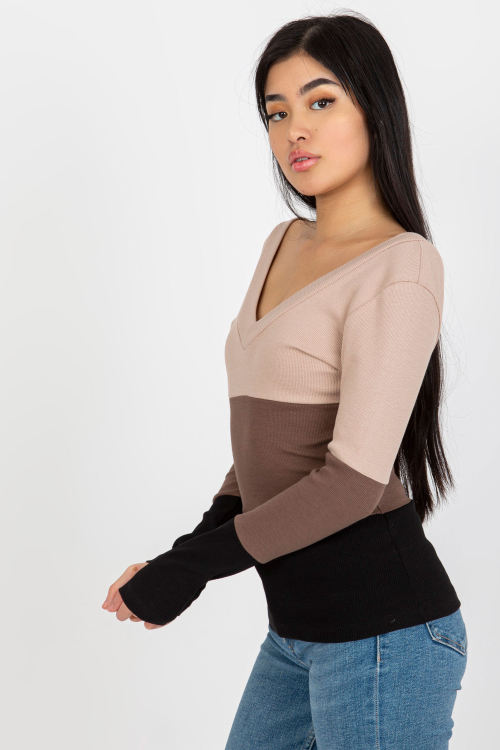 Bēša un melna ikdienas pamata blūze ar svītru RUE PARIS.
