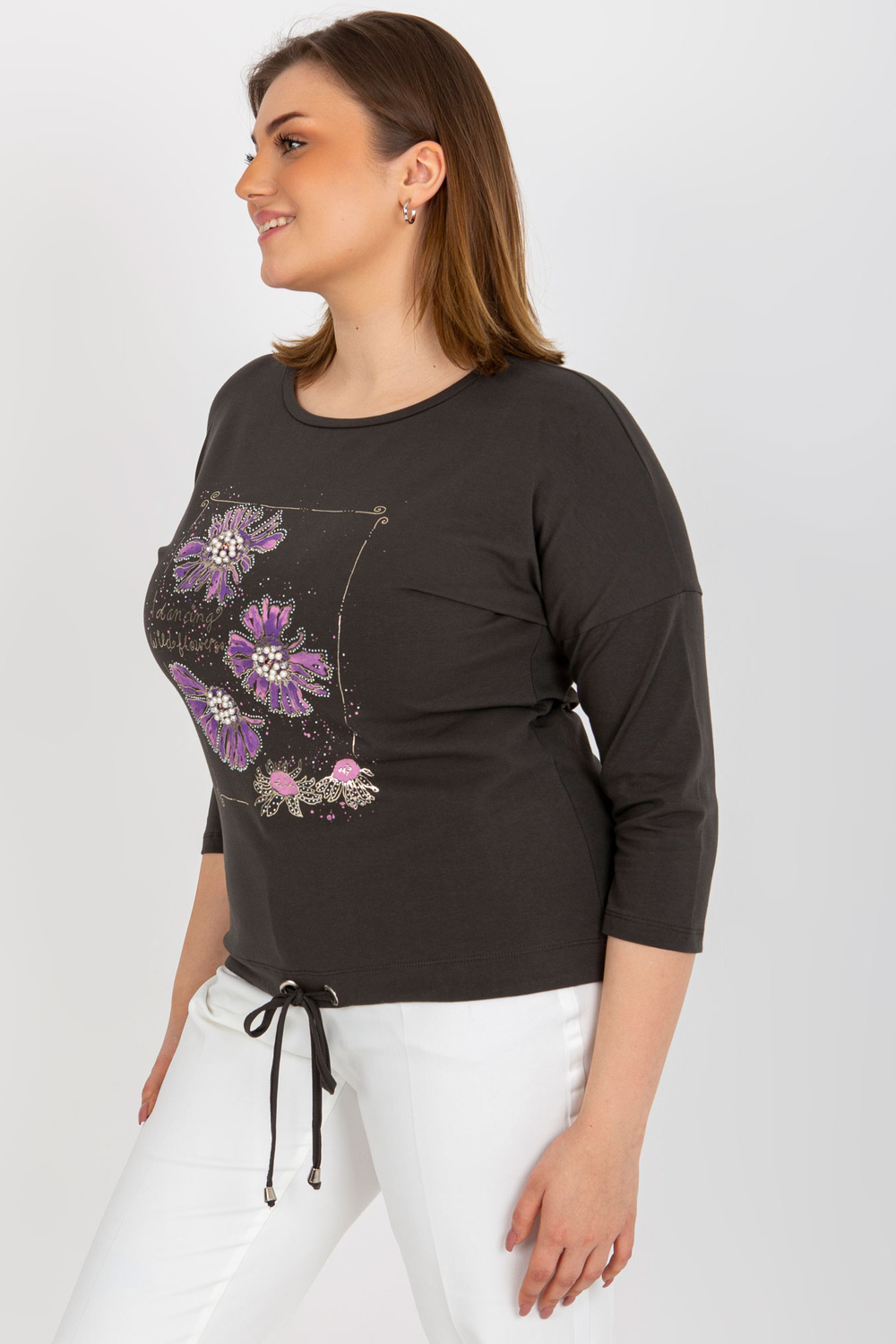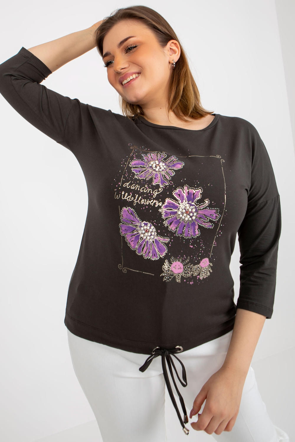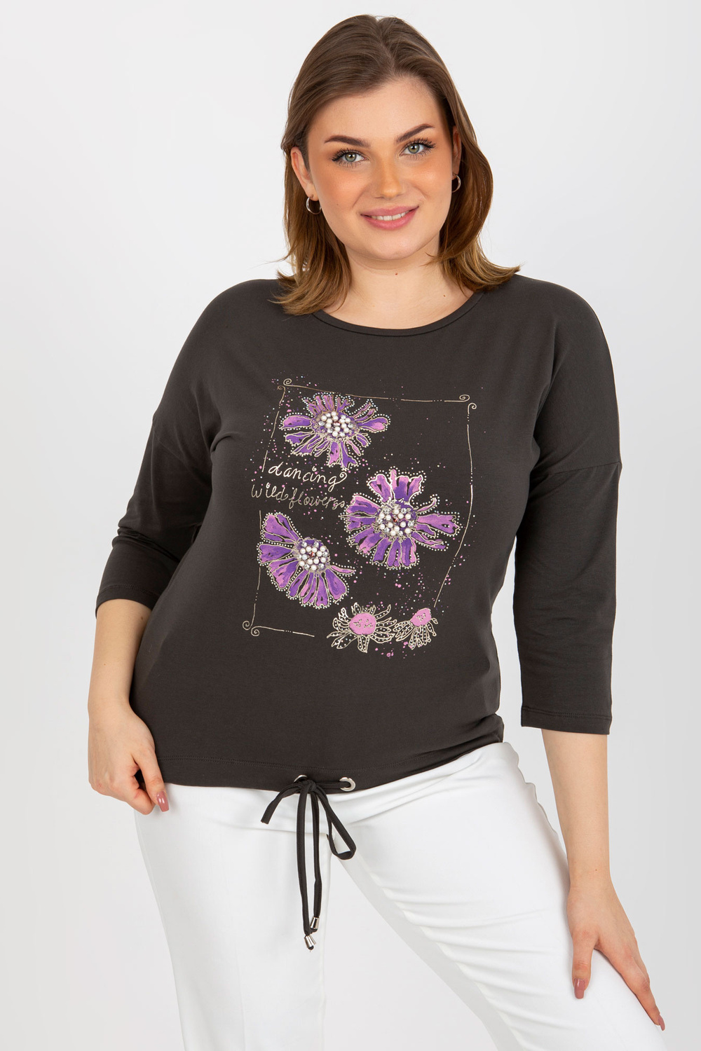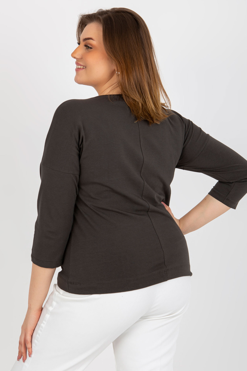 Khaki krāsas liela izmēra kokvilnas blūze ar rievotiem.