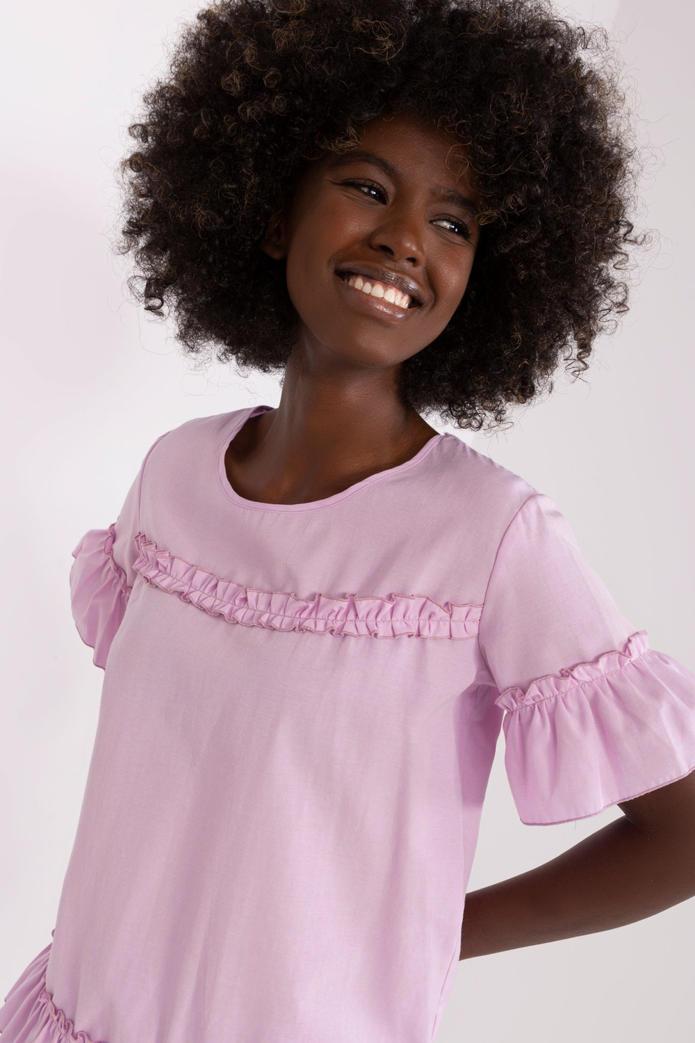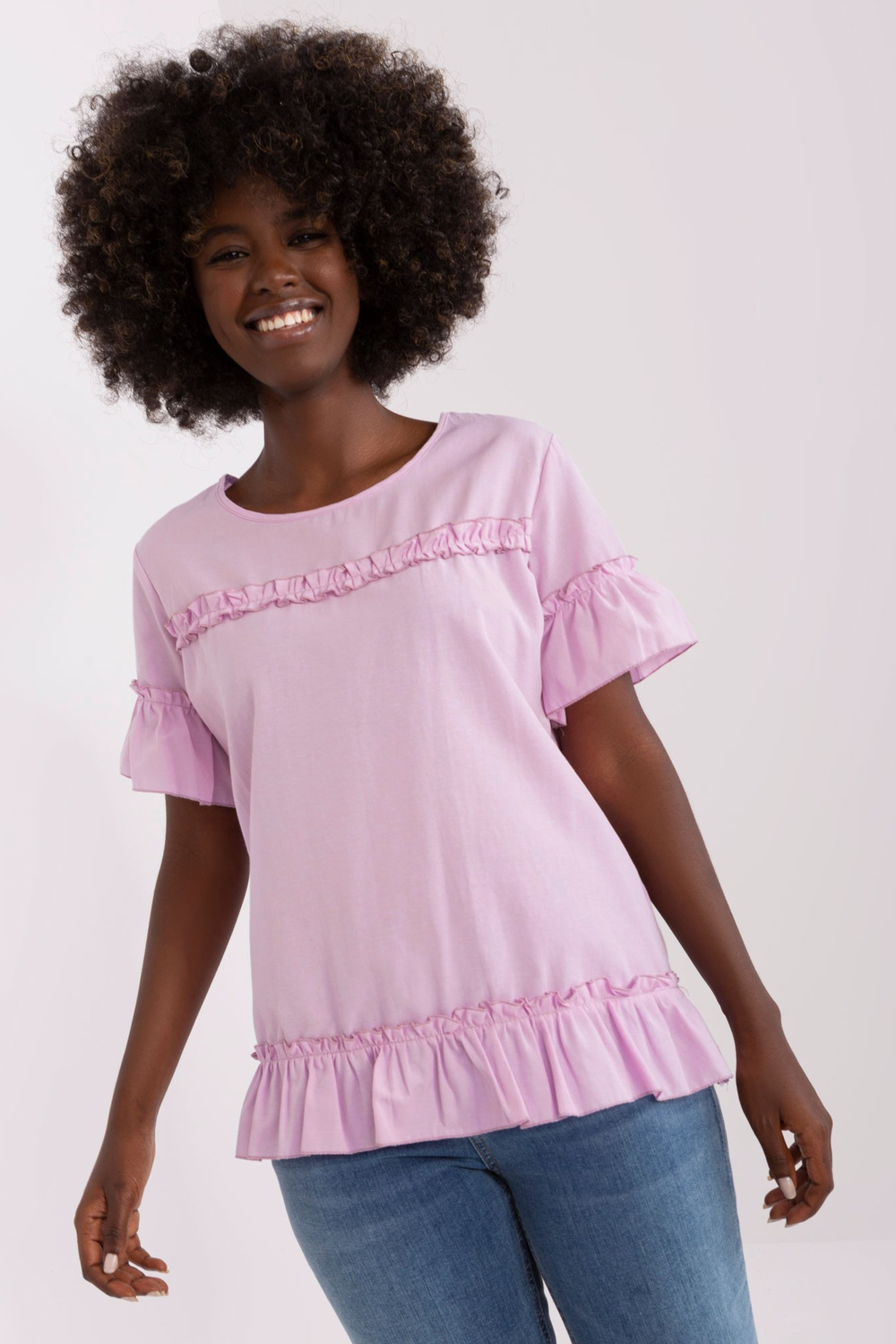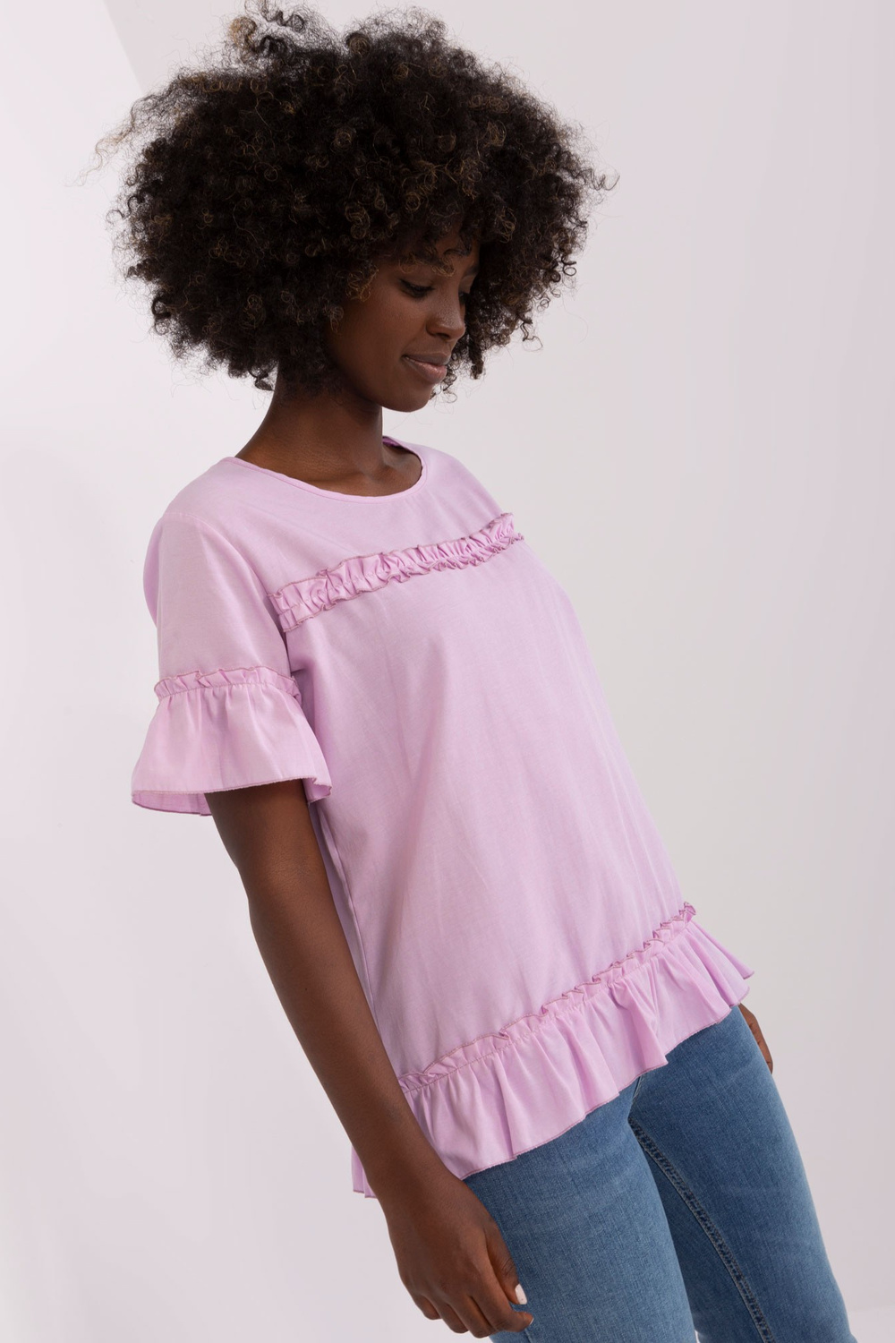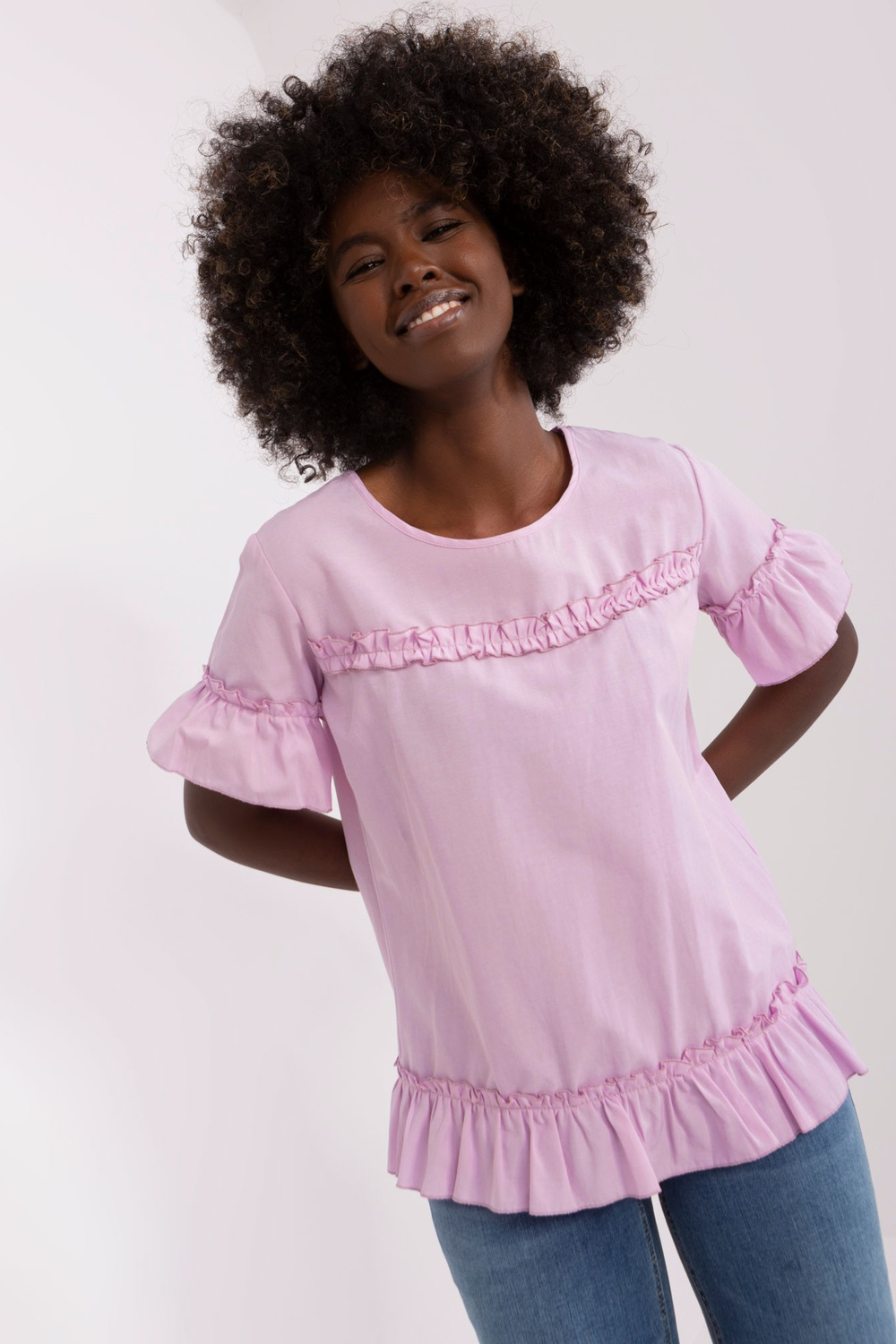 Blūzes izmēri 36. izmēram mērot uz plakanas: platums zem rokām - 49 cm, kopējais garums - 62 cm.