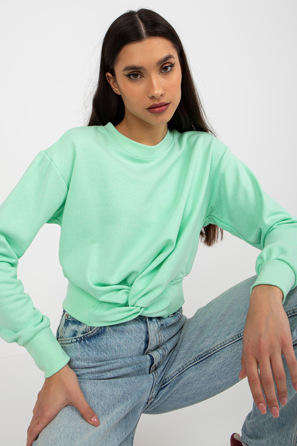 Piparmētru īss džemperis ar kapuci ar mezglu priekšpusē