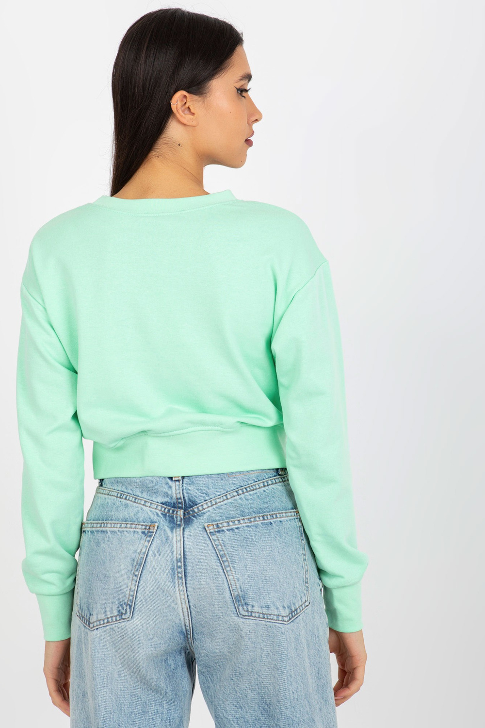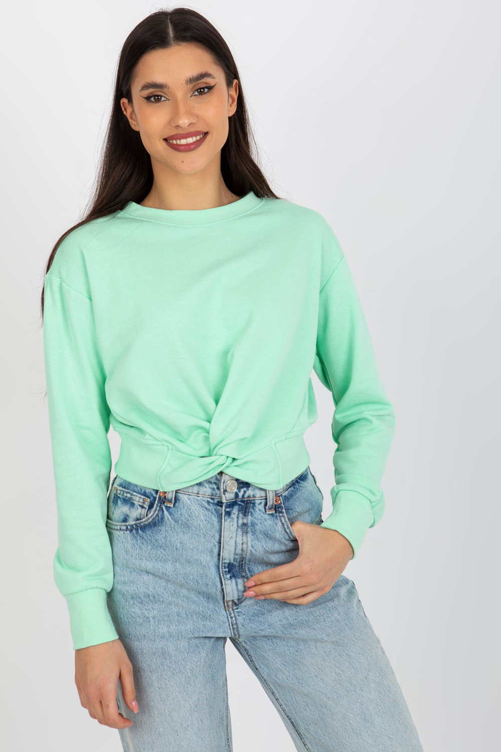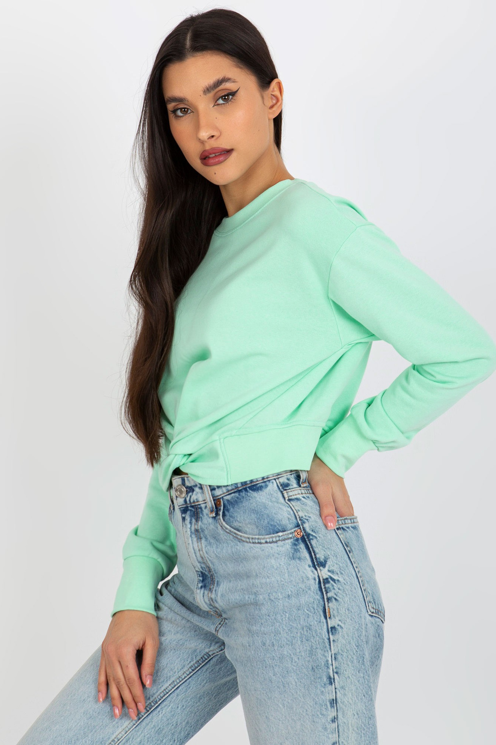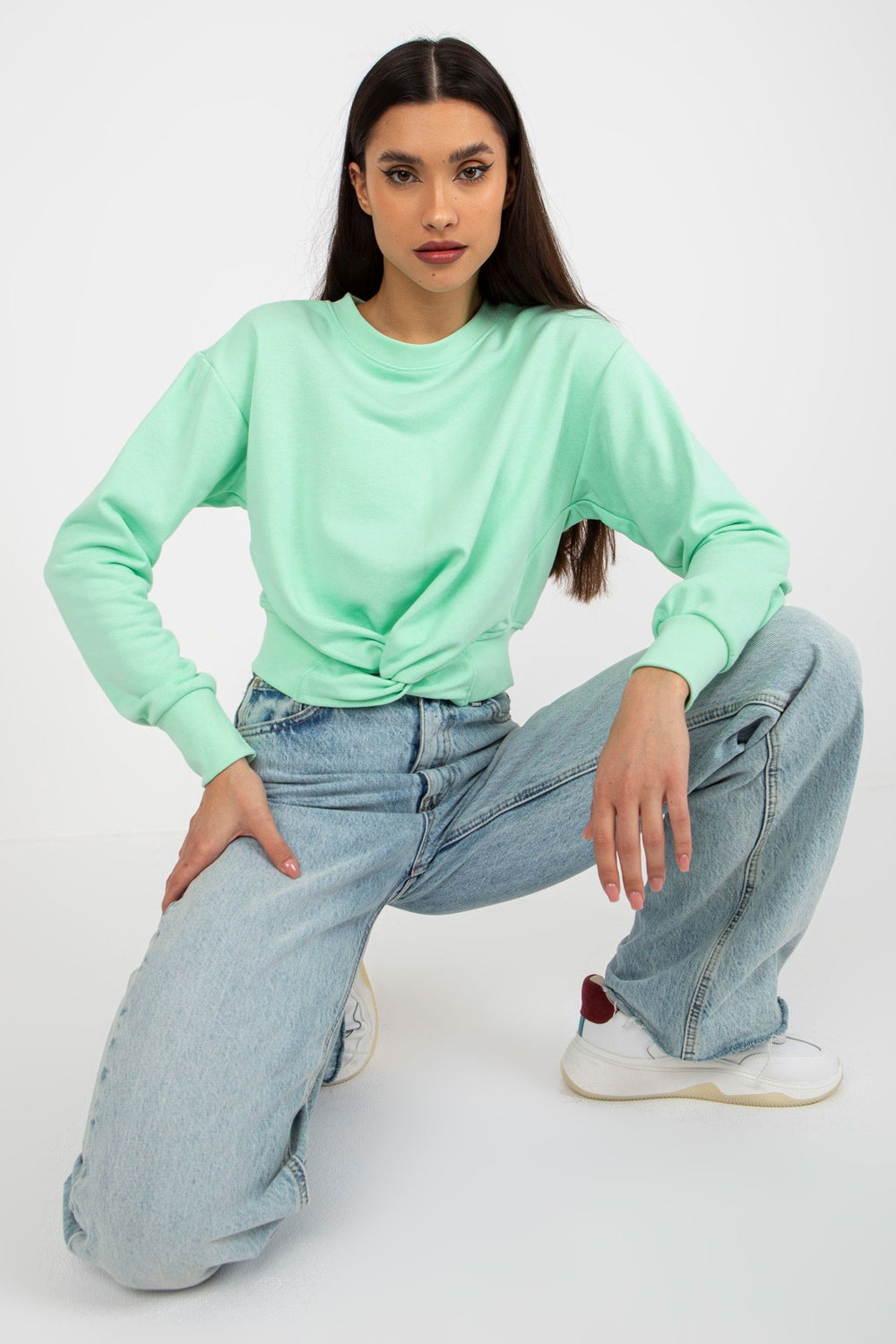 Piparmētru īss sporta krekls bez kapuces ar mezglu priekšpusē. produkta kods: EM-BL-HS-21-571.71 dominējošais raksts: gluds Stils: ikdienišķs gadījums: ikdienišķs, ārpus pilsētas, pastaigāties Modele valkā S izmēru. Modeļa izmēri: augums 172 cm, krūtis div>