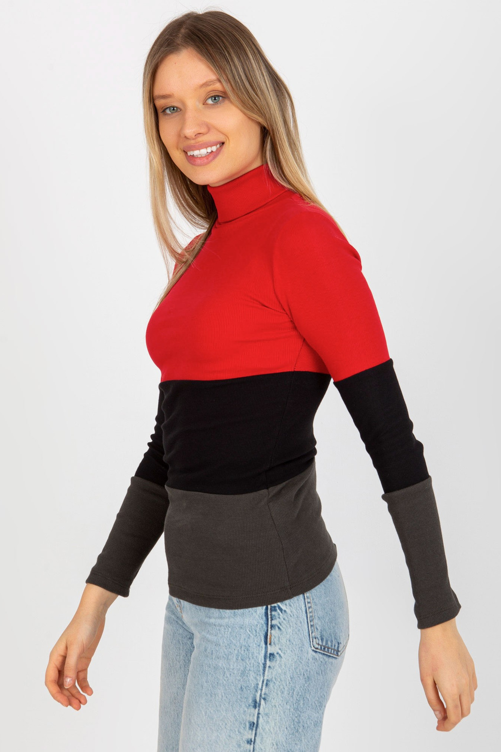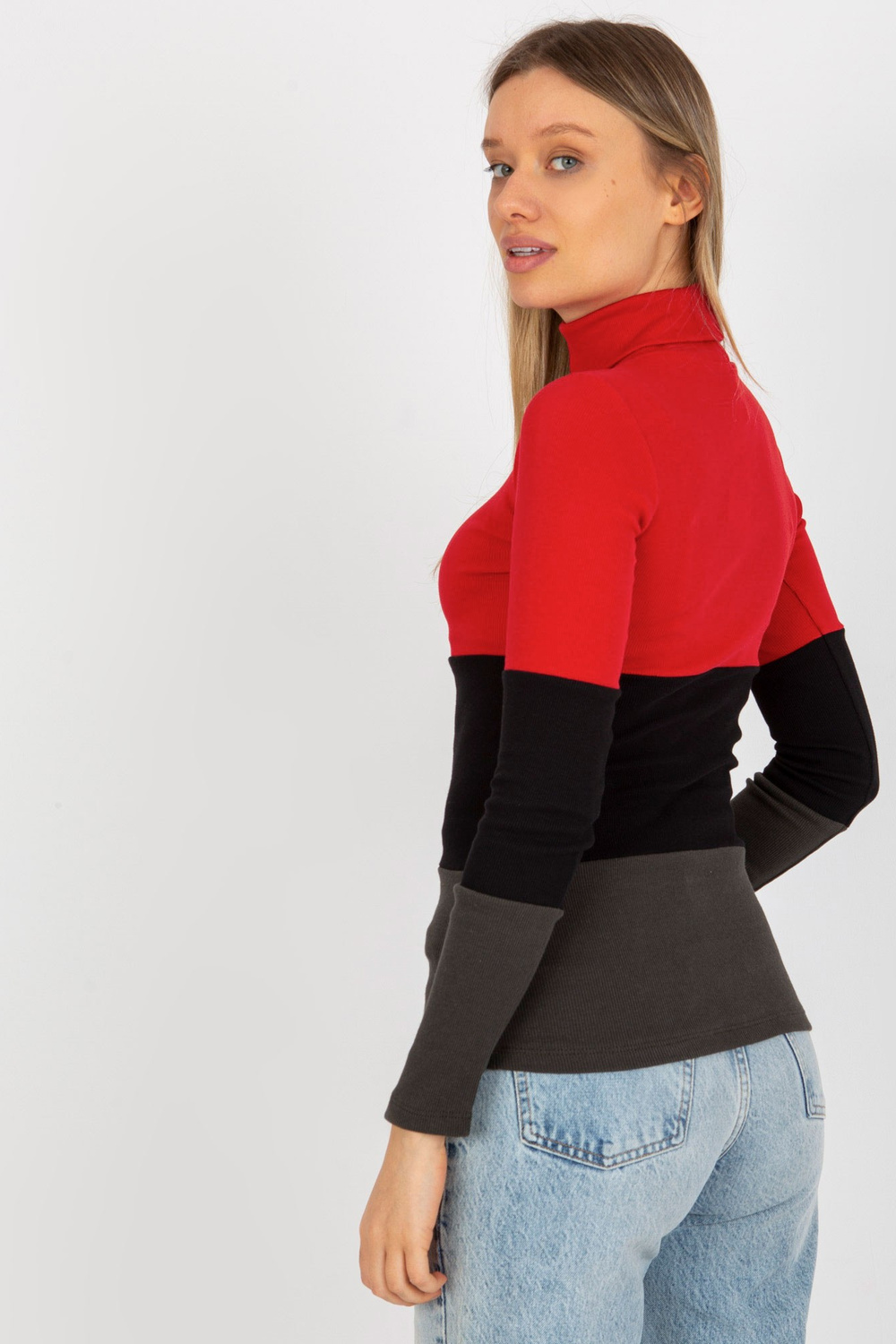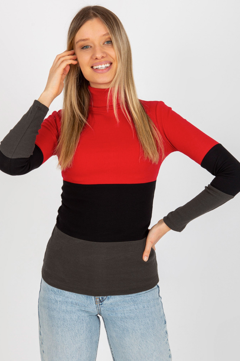 Sarkanā haki krāsas rievota pamata blūze ar bruņurupuču apkakli.