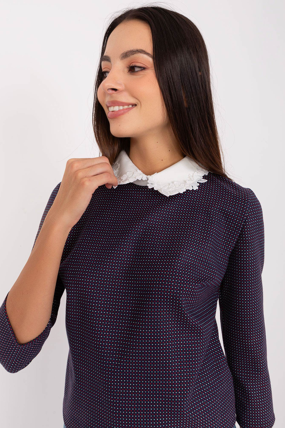 Blūzes izmēri 36. izmēram plakana: paduses platums - 48 cm, piedurknes garums - 44 cm, kopējais garums - 54 cm.