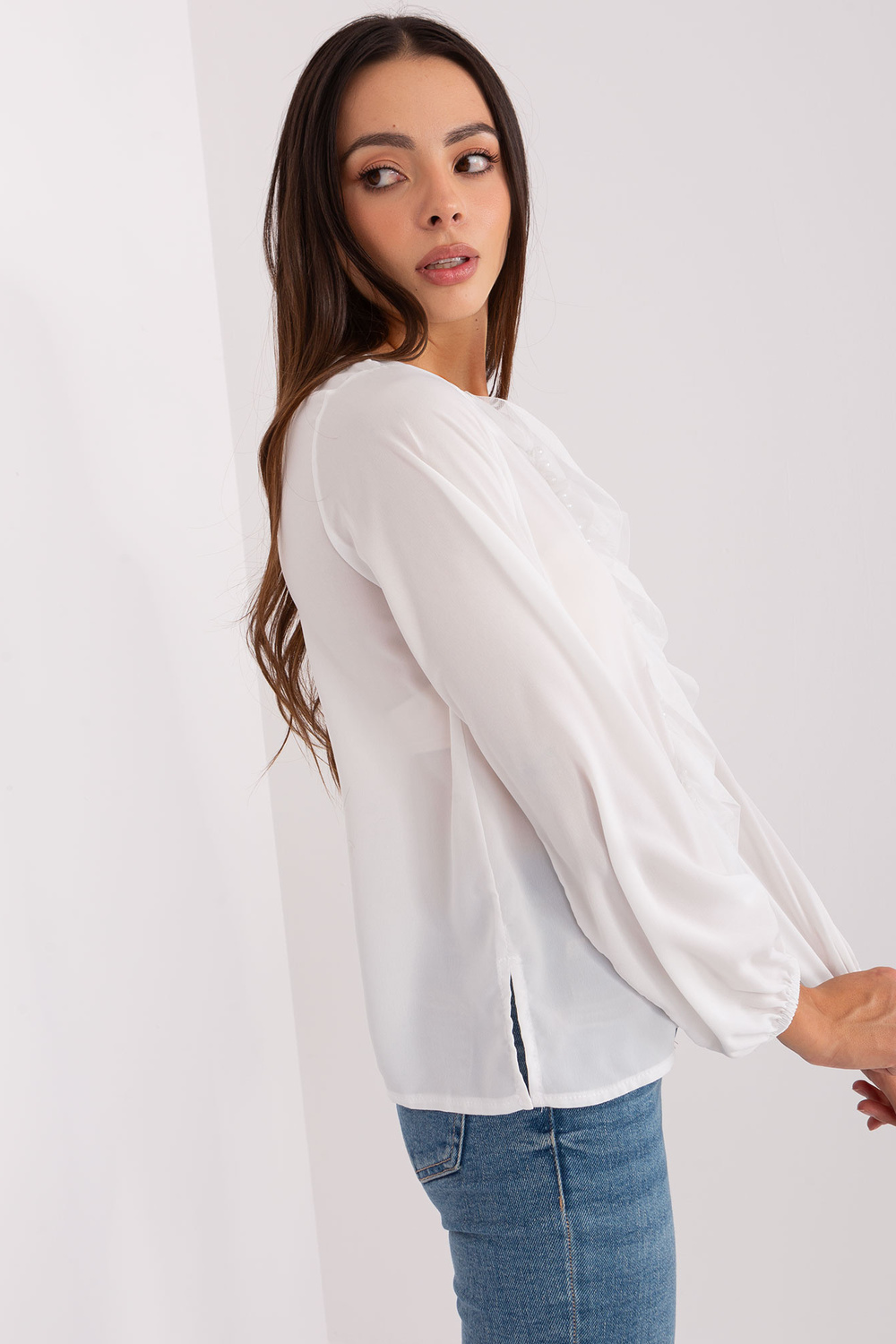 Blūzes izmēri 36. izmēram plakana: paduses platums - 46 cm, piedurknes garums - 58 cm, kopējais garums - 59 cm.