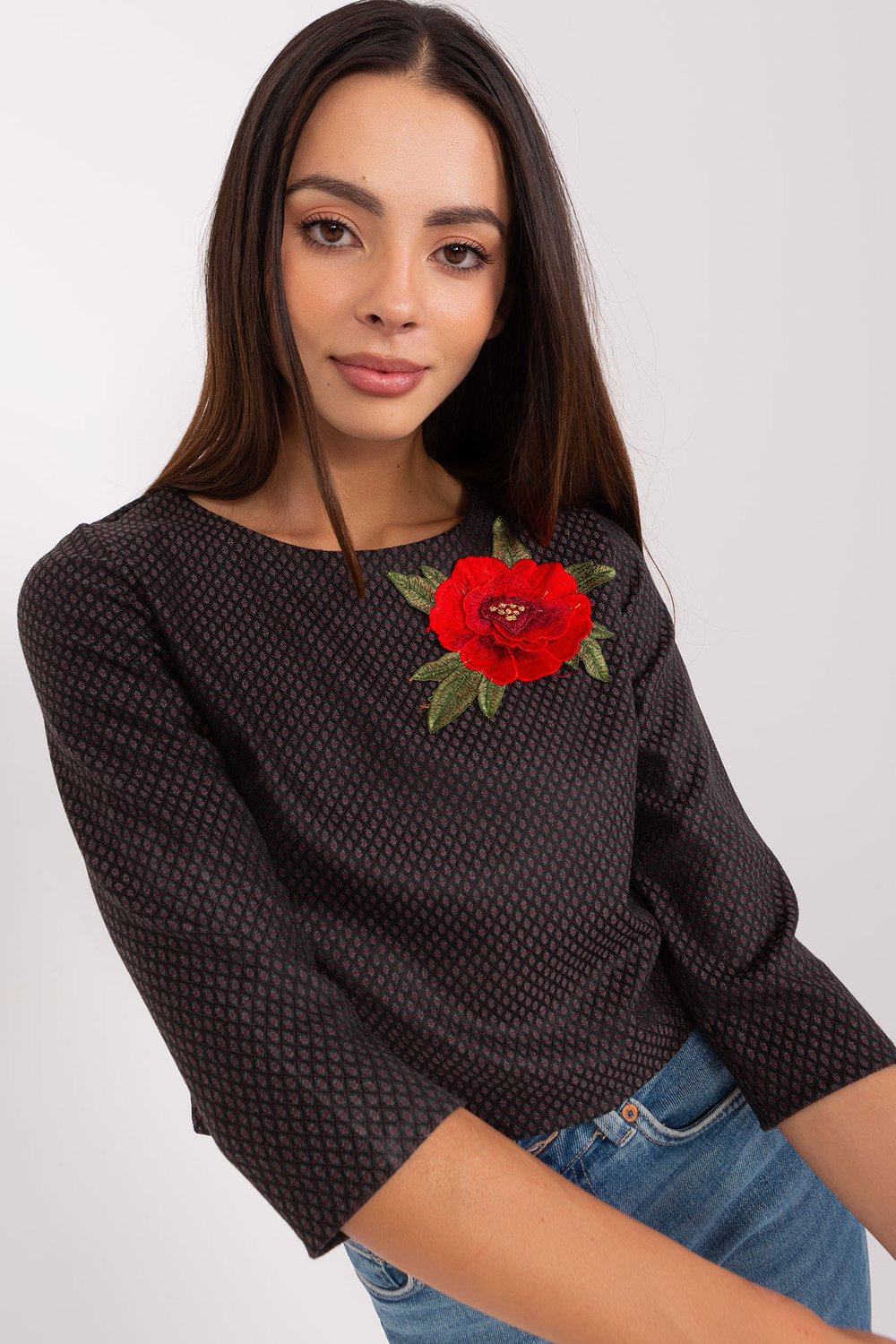 Blūzes izmēri 36. izmēram plakana: paduses platums - 45 cm, piedurknes garums - 43 cm, kopējais garums - 44 cm.