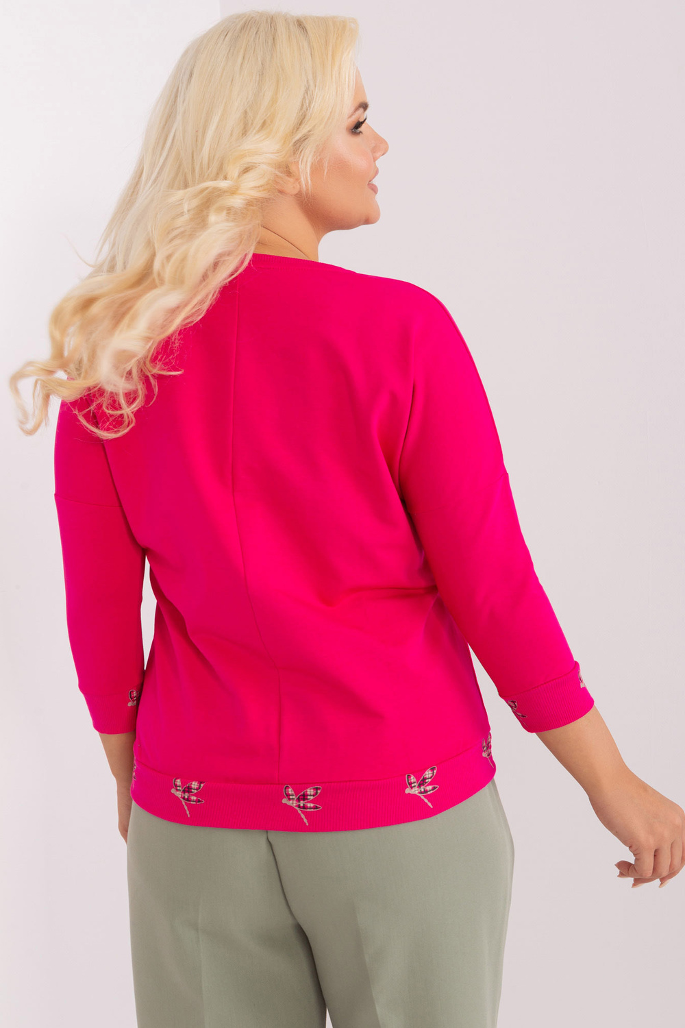 Blūzes izmēri viena izmēra izmērā, mērot plakanā veidā: platums zem rokām - 60 cm, kopējais garums - 63 cm, piedurknes garums - 42 cm