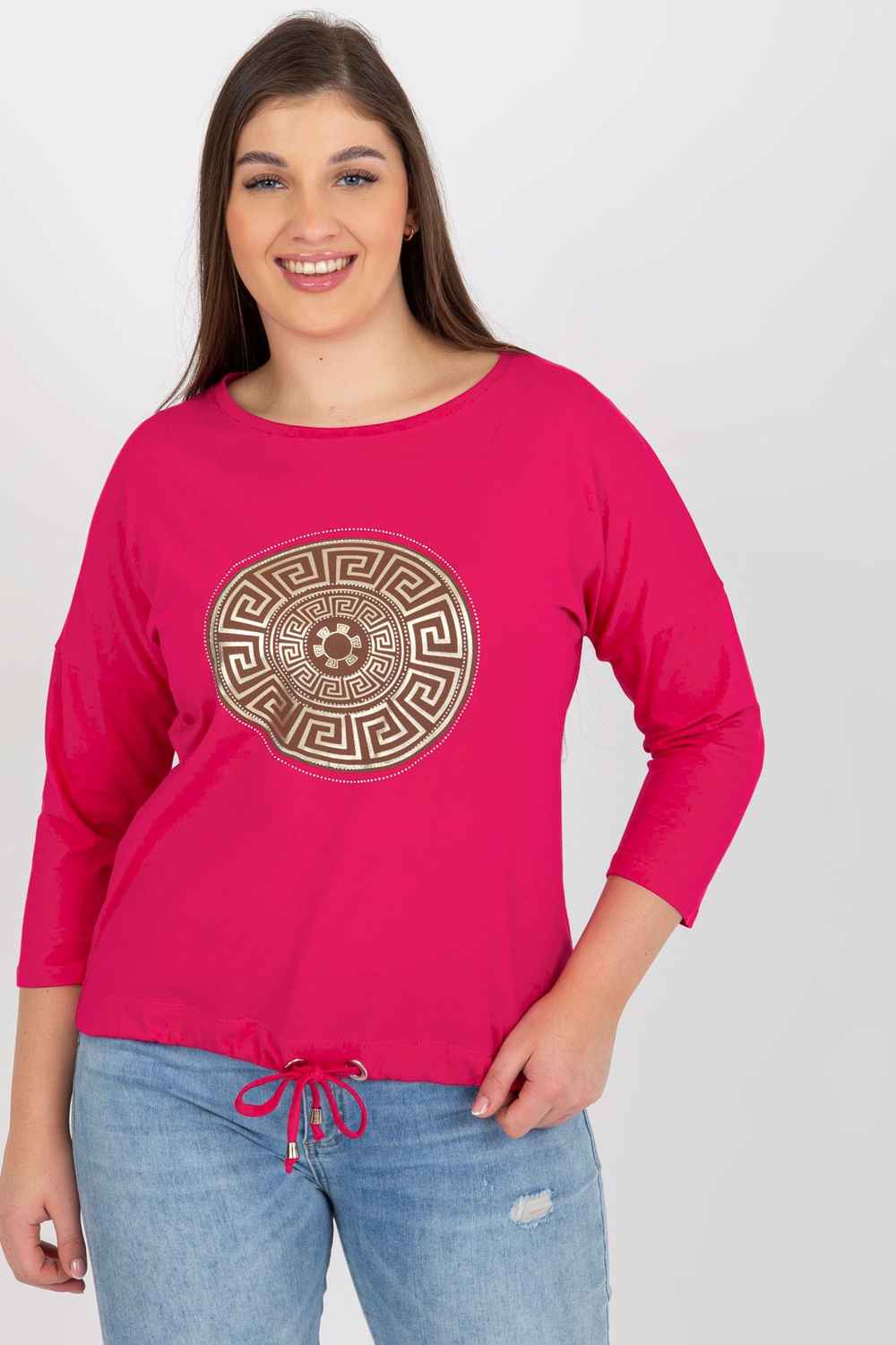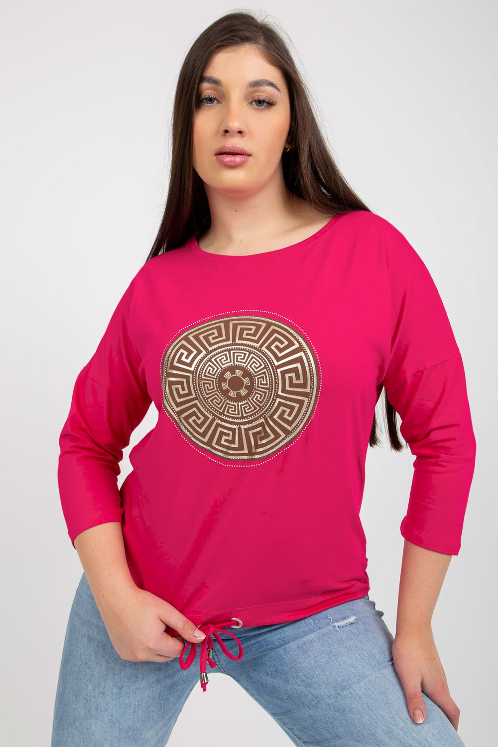 Fuksijas krāsas liela izmēra blūze ar spīdīgu apdruku.