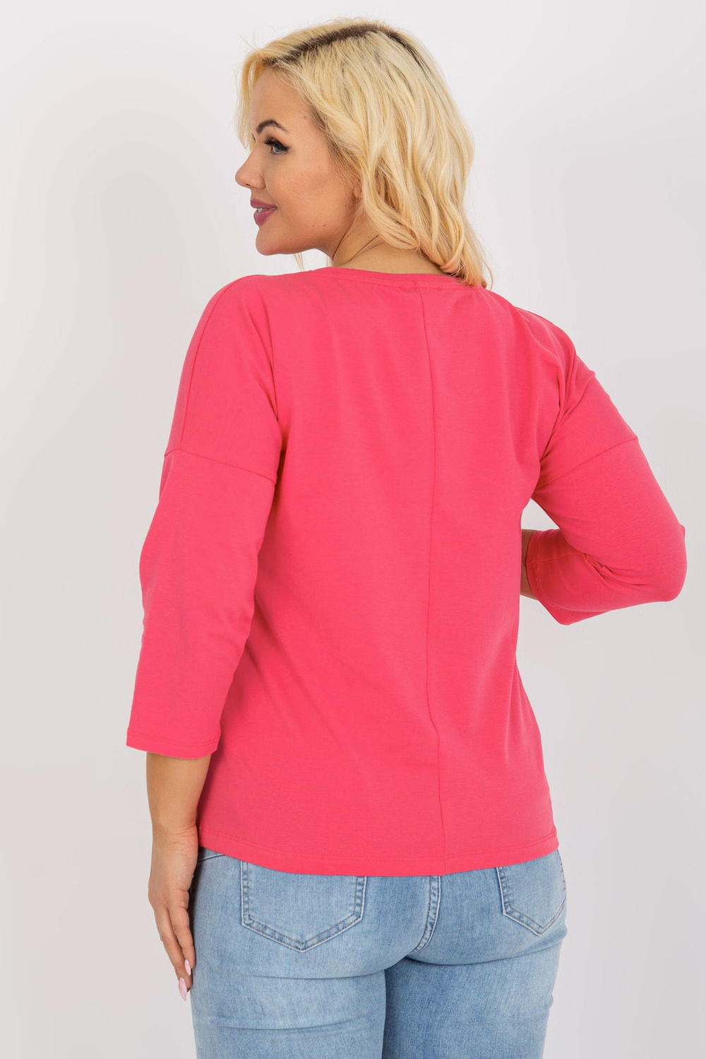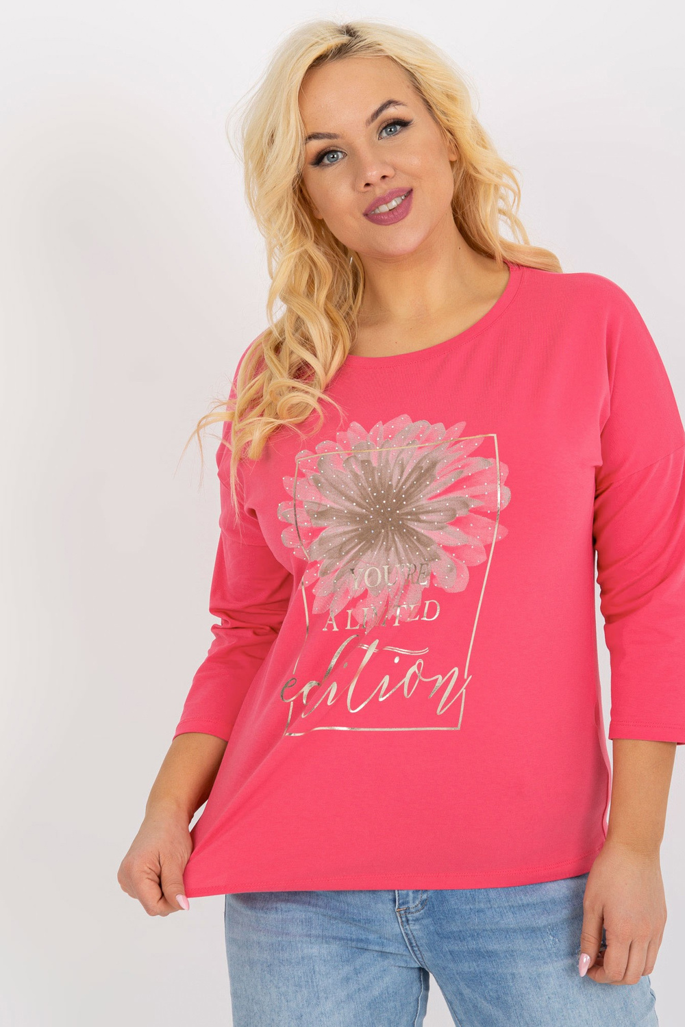 Rozā liela izmēra kokvilnas blūze ar apdruku.