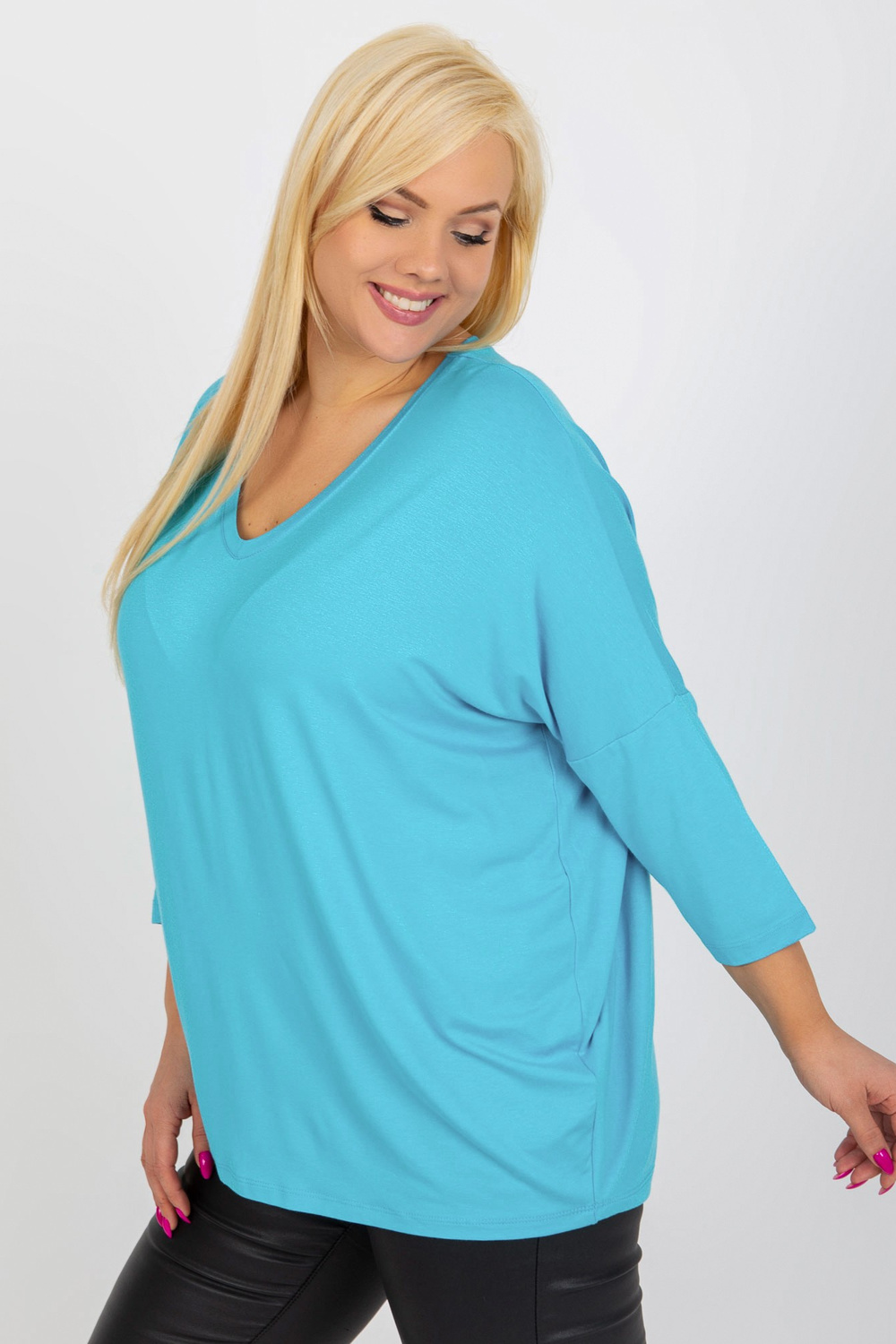 Modeles izmēri viena izmēra blūze, mērot plakana: paduses platums - 74 cm, piedurknes garums - 45 cm, kopējais garums - 73 cm.