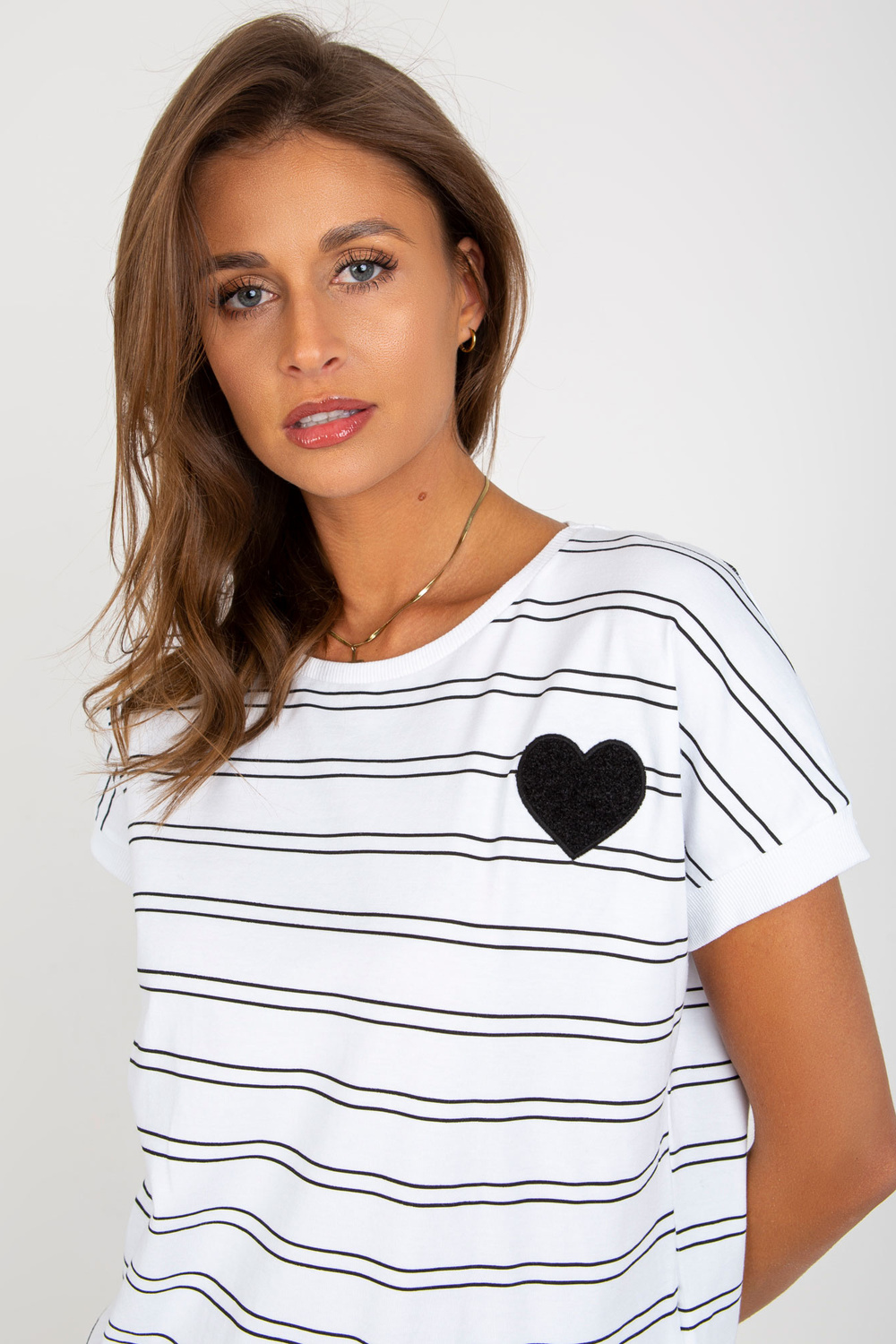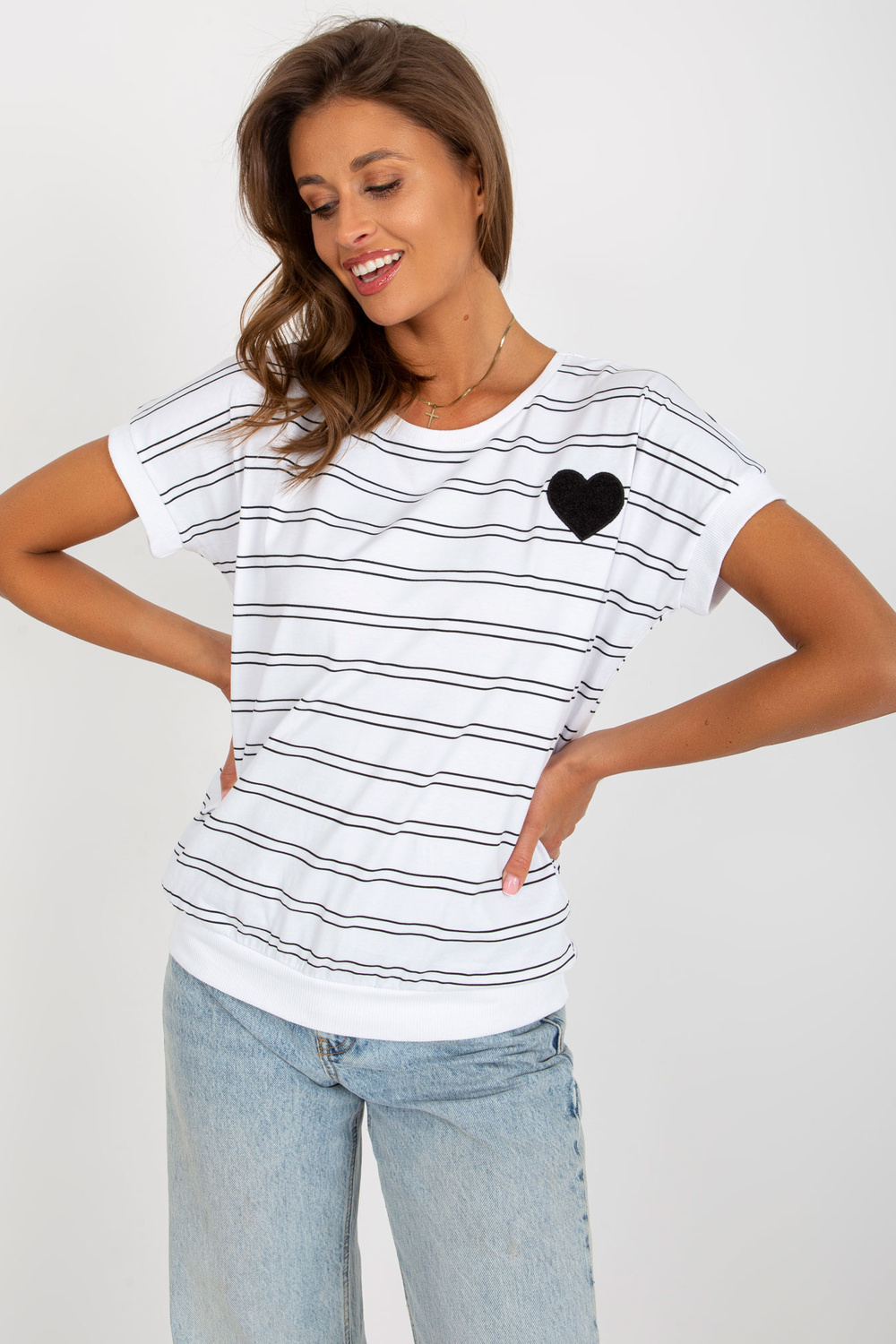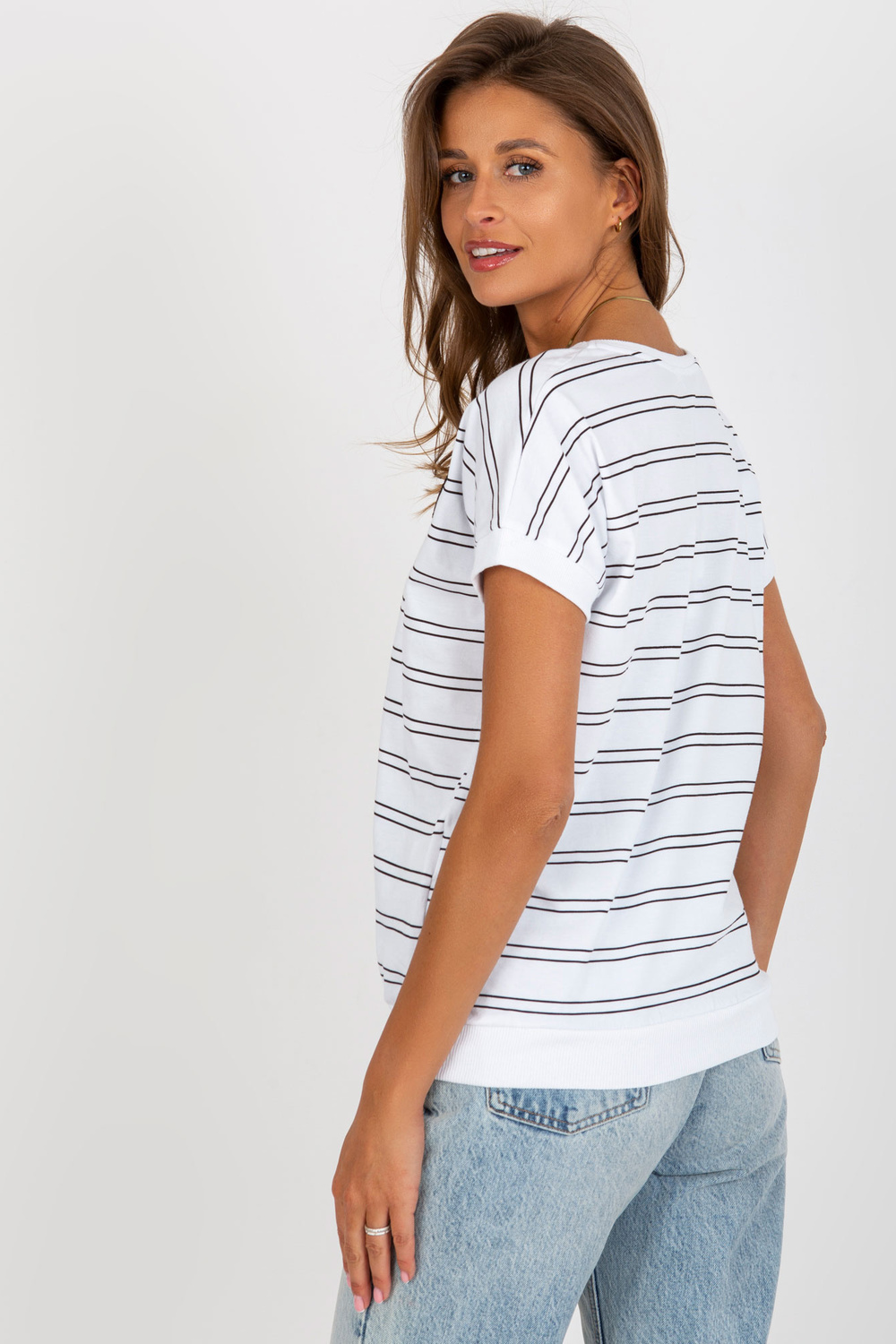 Balta un melna kokvilnas blūze ar svītrām.