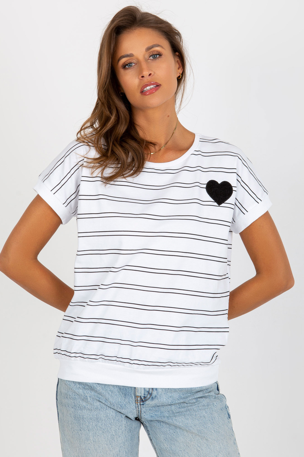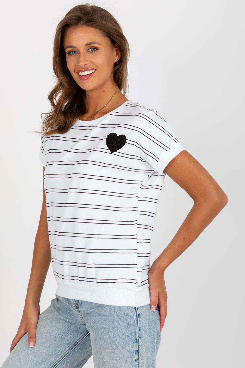 Balta un melna kokvilnas svītraina blūze