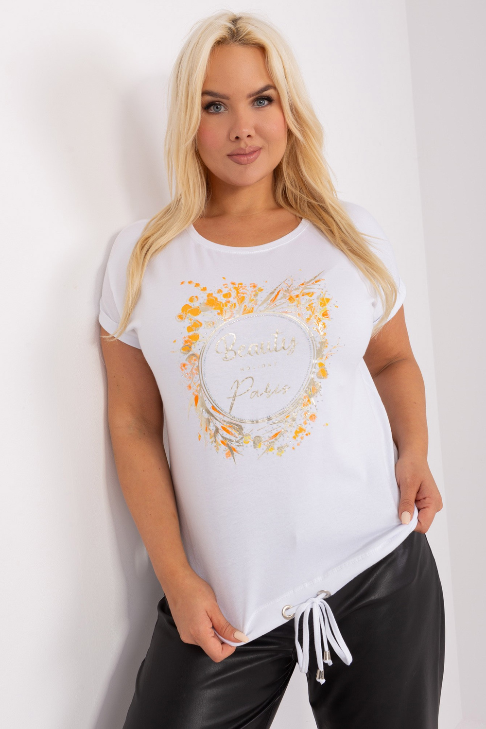 Modele valkā vienu izmēru. Modeles izmēri: augums 172 cm, krūtis 103 cm, viduklis 73 cm, gurni 103 cm.