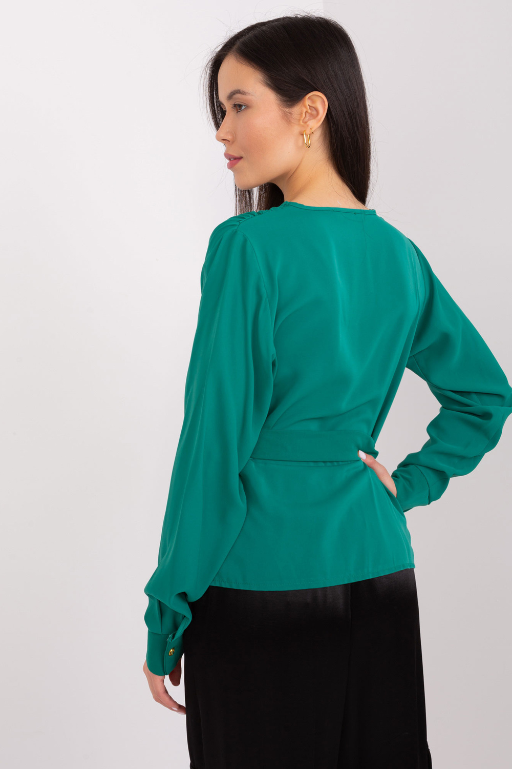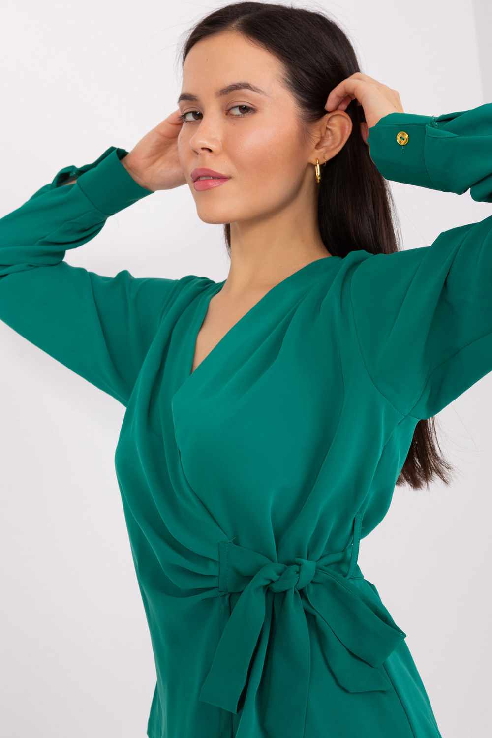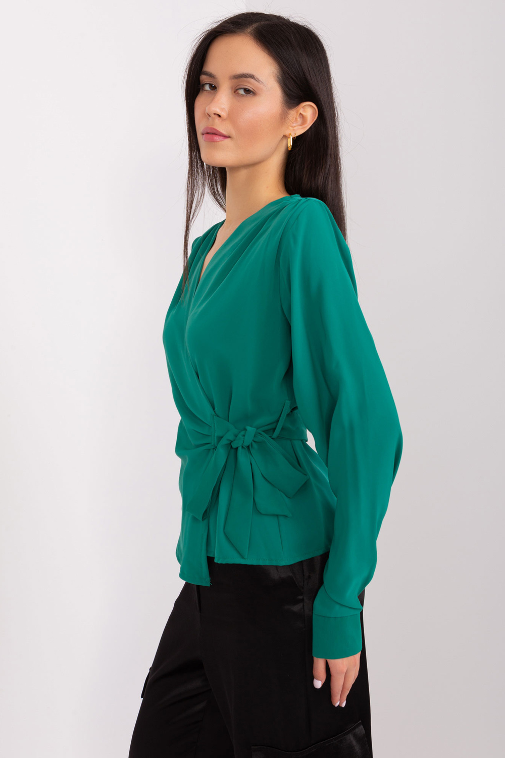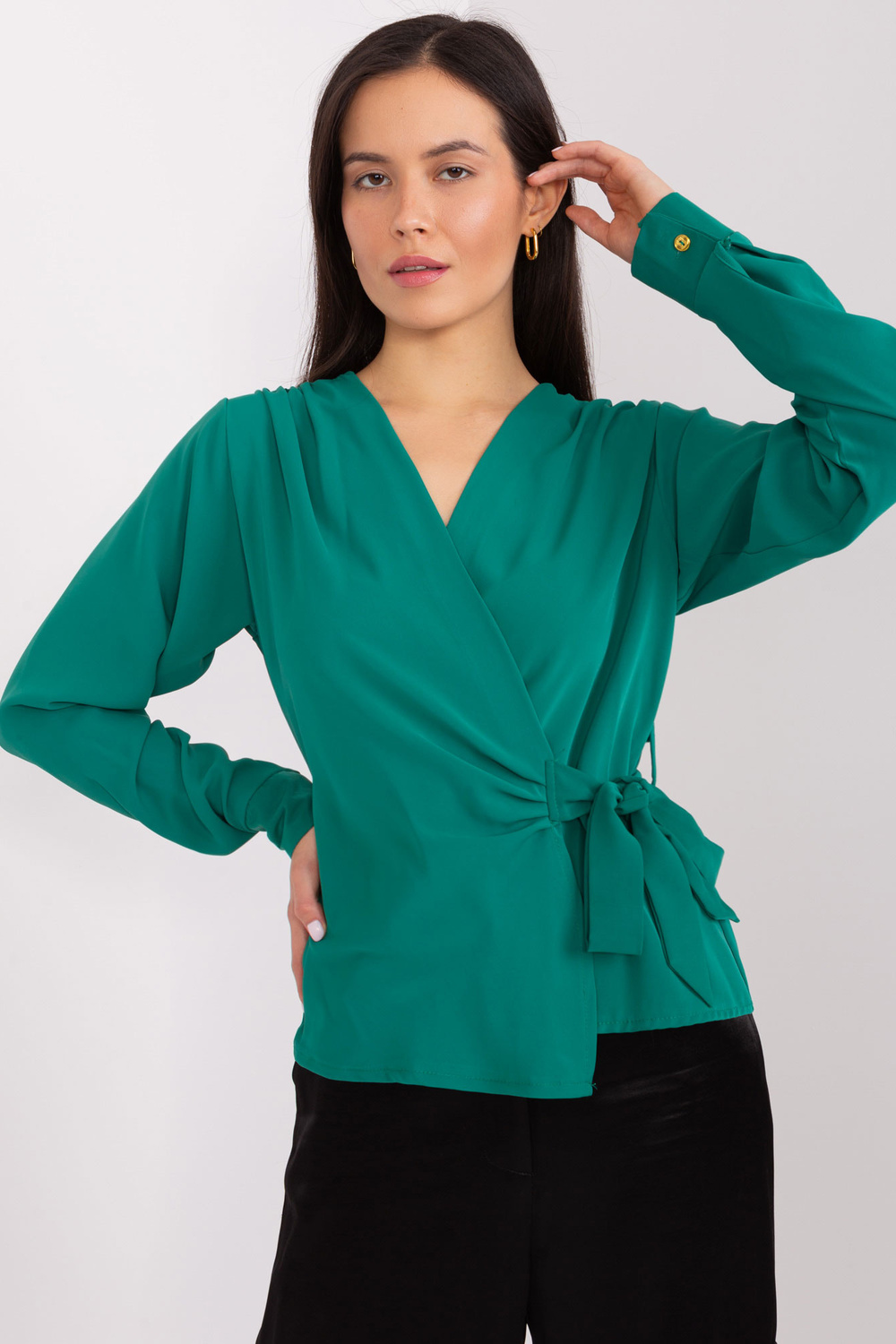 Tumši zaļa ietīšanas formālu blūze ar saitēm .
