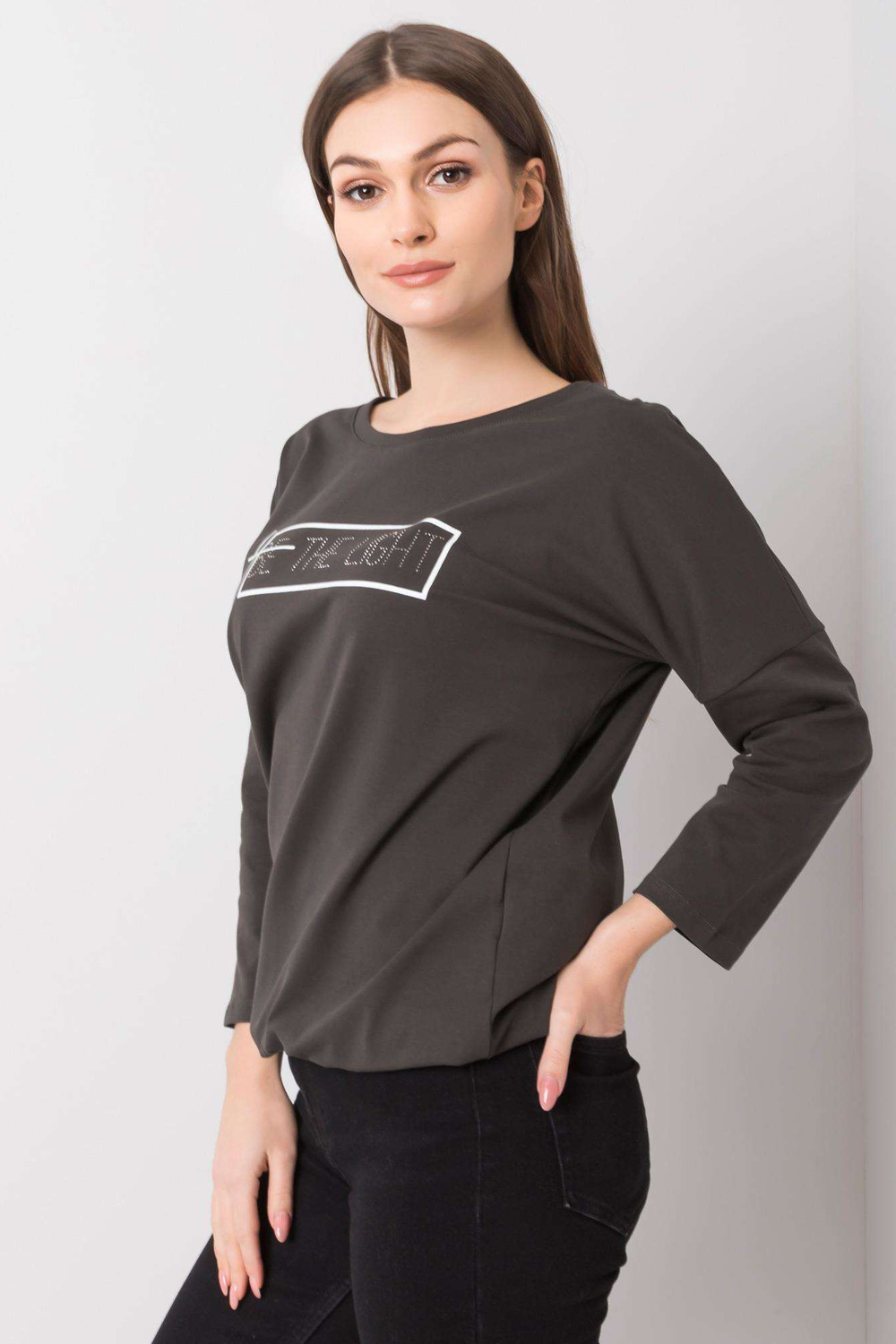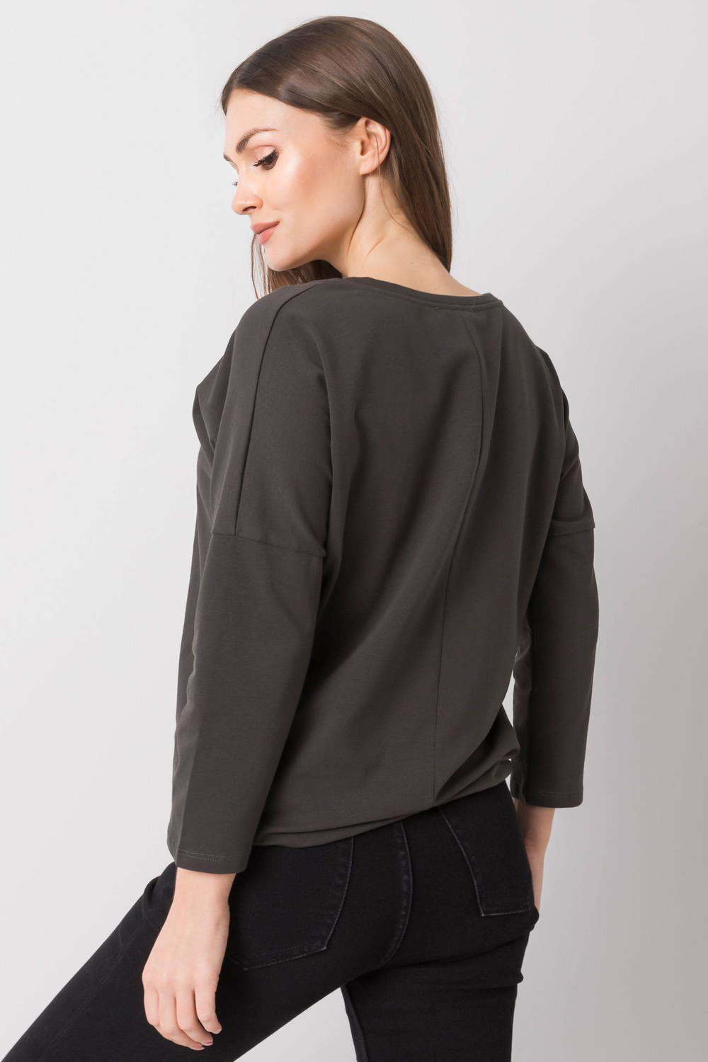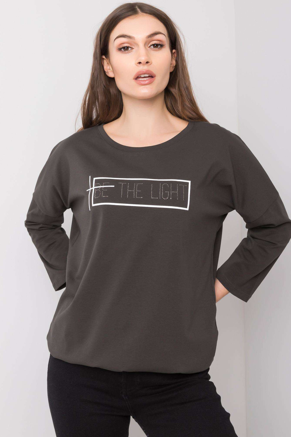 < p>Modele valkā viena izmēra izmēru. Modeļa izmēri: augums 170 cm, krūtis 93 cm, viduklis 66 cm, gurni 93 cm.Viena izmēra blūzes izmēri, mērot plakani: platums zem padusēm - 54 cm, kopējais garums - 61 cm, piedurkņu garums - 46 cm