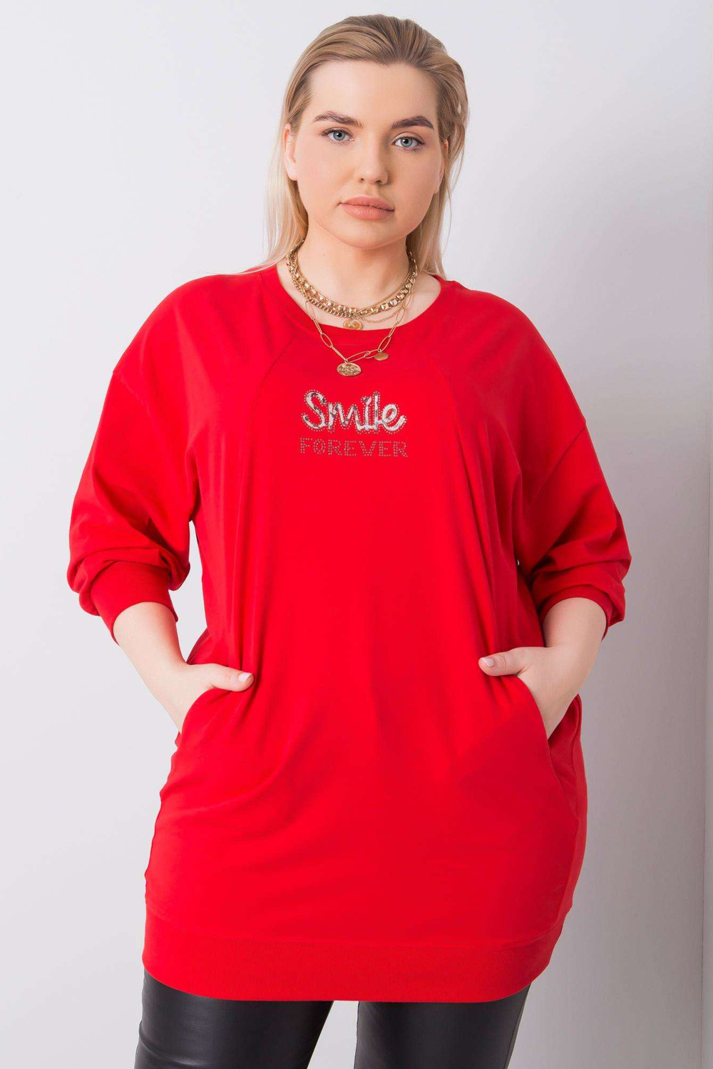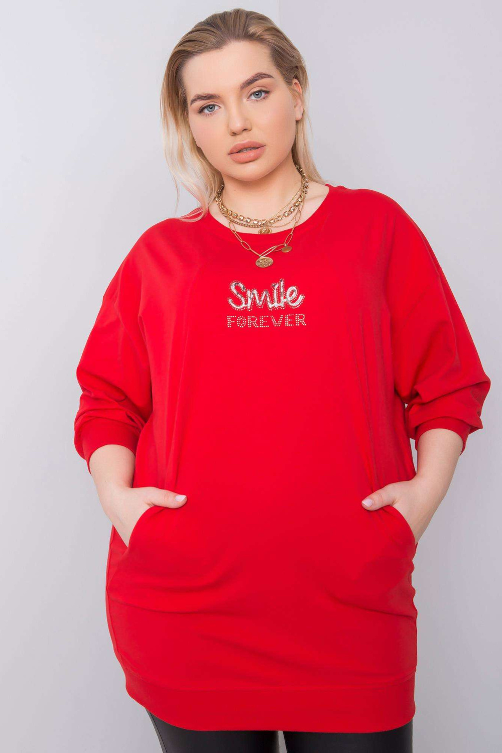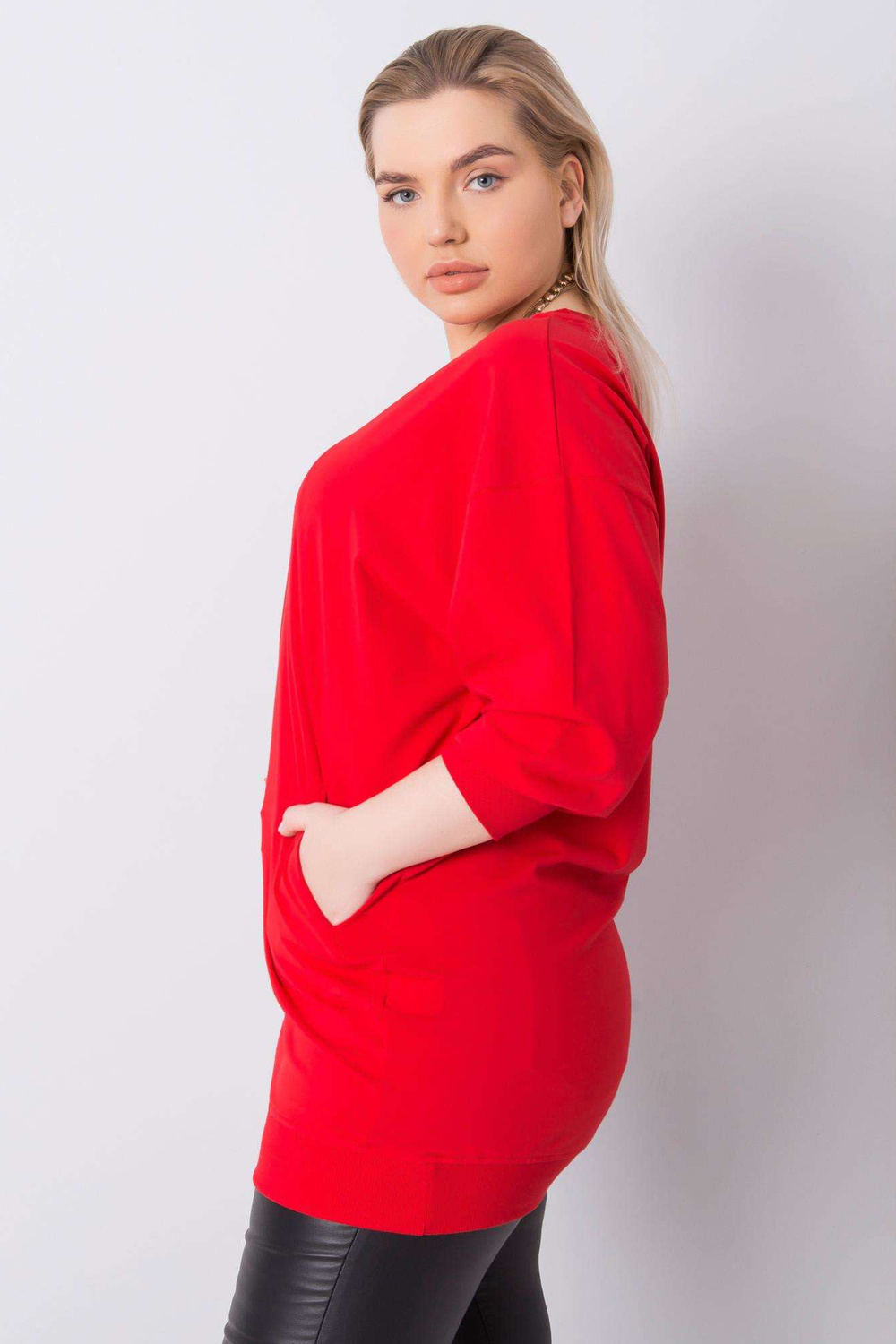 Viena izmēra blūzes izmēri, mērot plakaniski: paduses platums - 62 cm, kopējais garums - 77 cm, piedurkņu garums - 50 cm