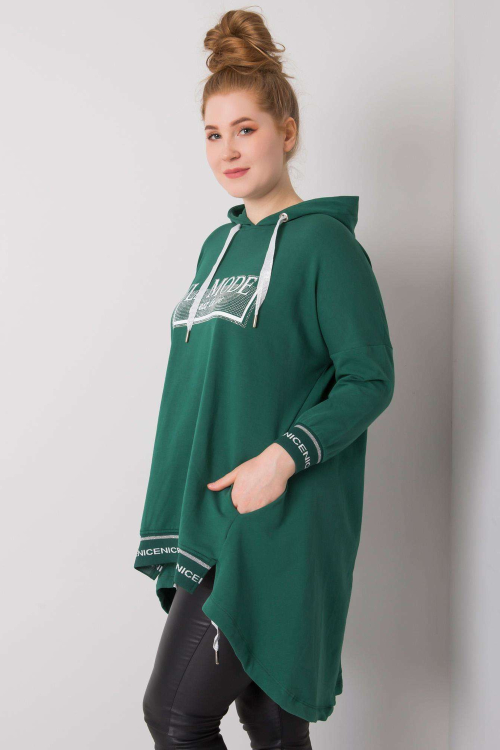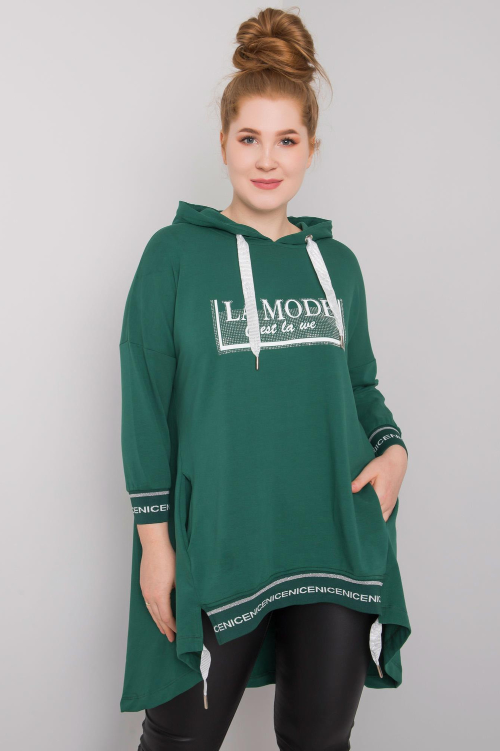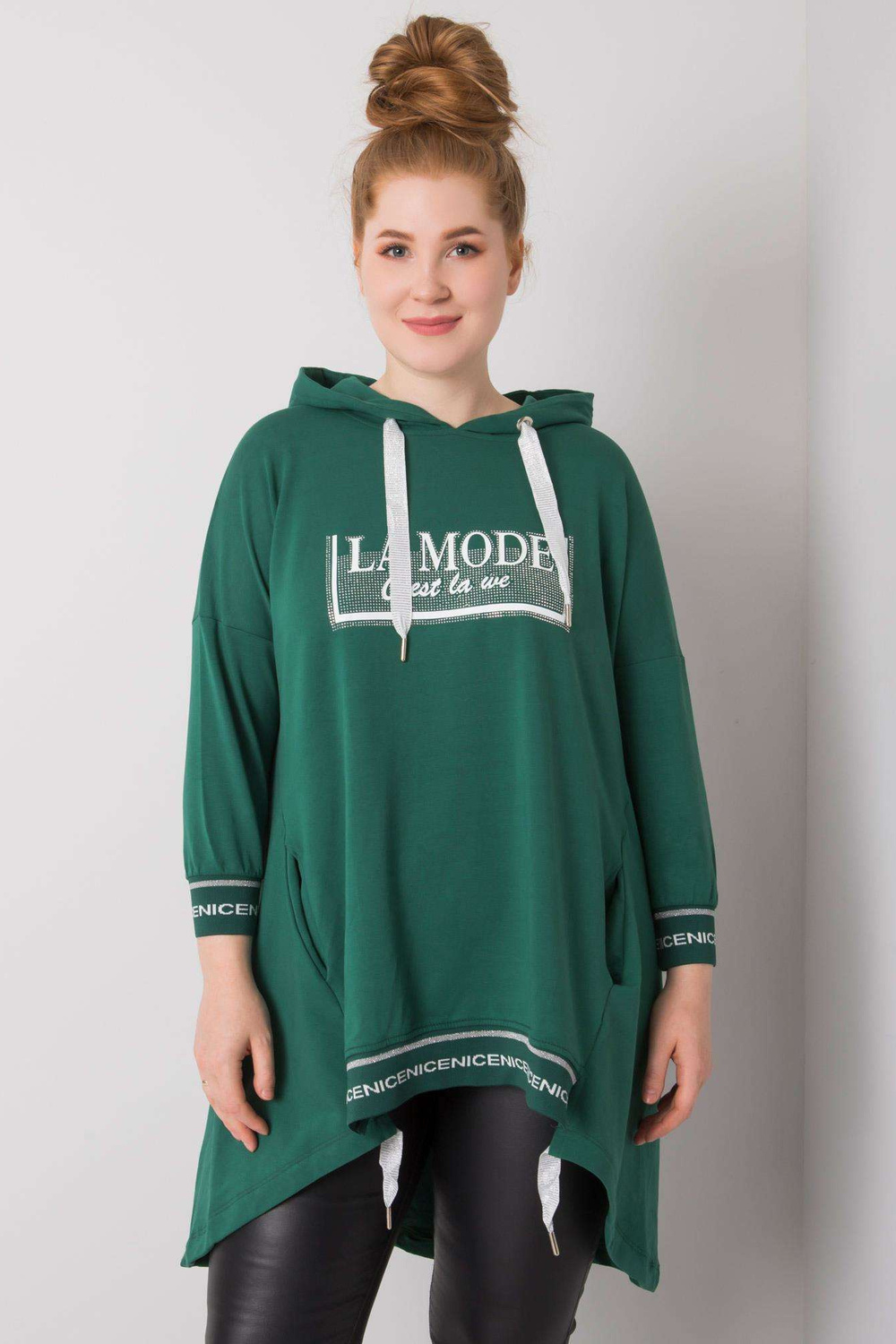p>Modele valkā viena izmēra izmēru. Modeļa izmēri: augums 175 cm, krūtis 98 cm, viduklis 76 cm, gurni 117 cm.