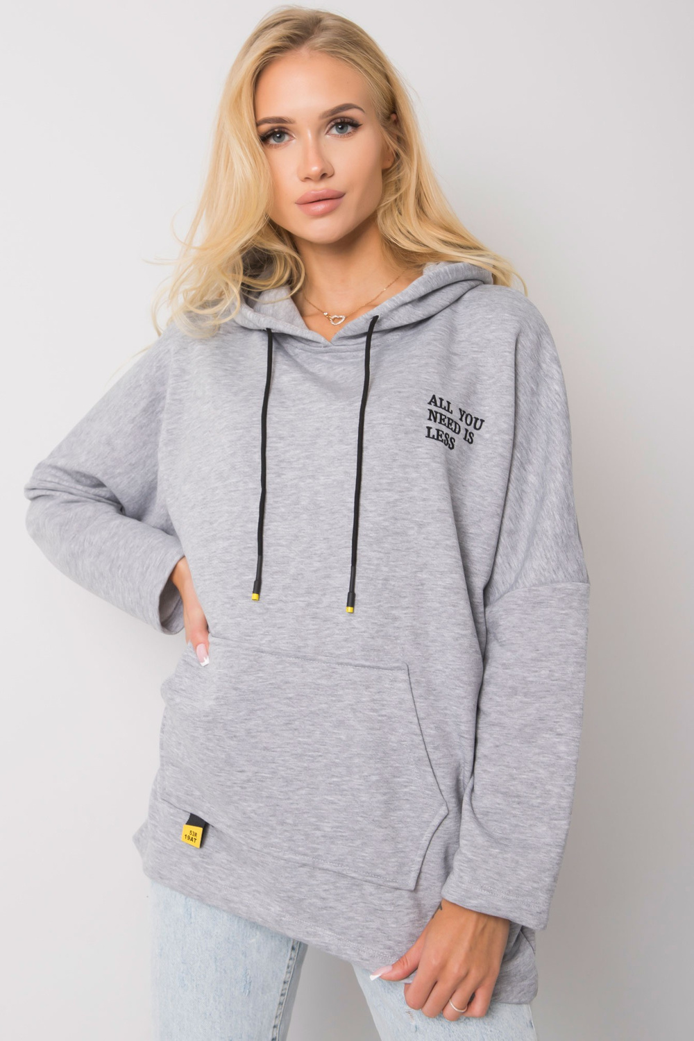 Laylla pelēkā melanža kapuci. Materiāla sastāvs: 90% kokvilna, 10% elastāns mazgāšanas metode: veļas mašīna 30°C. Modelis valkā viena izmēra izmēru. Modeļa izmēri: augums 175 cm, krūtis 84 cm, viduklis 62 cm, gurni 93 cm. Viena izmēra sporta krekla izmēri m