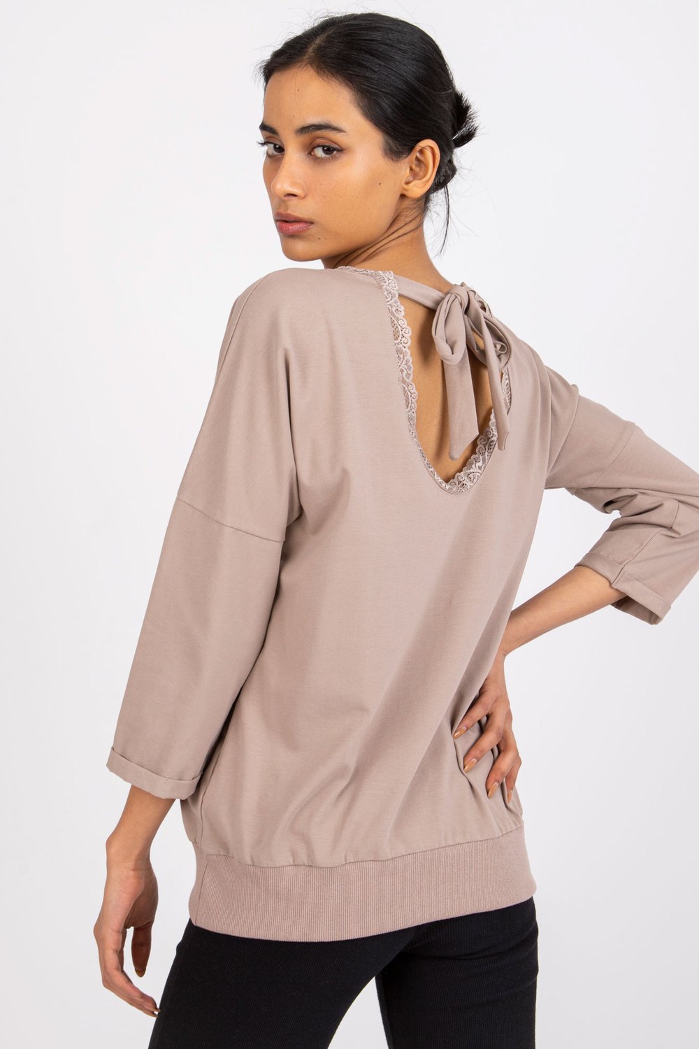 Tumši bēša blūze ar piegriezumu mugurpusē Wioleta RUE PARIS .