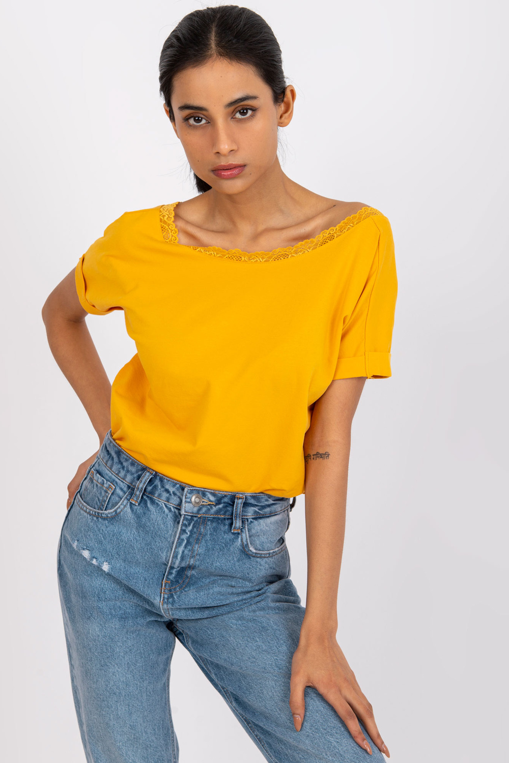 Gaiši oranža blūze ar kakla izgriezumu mugurpusē Salma RUE PARIS.