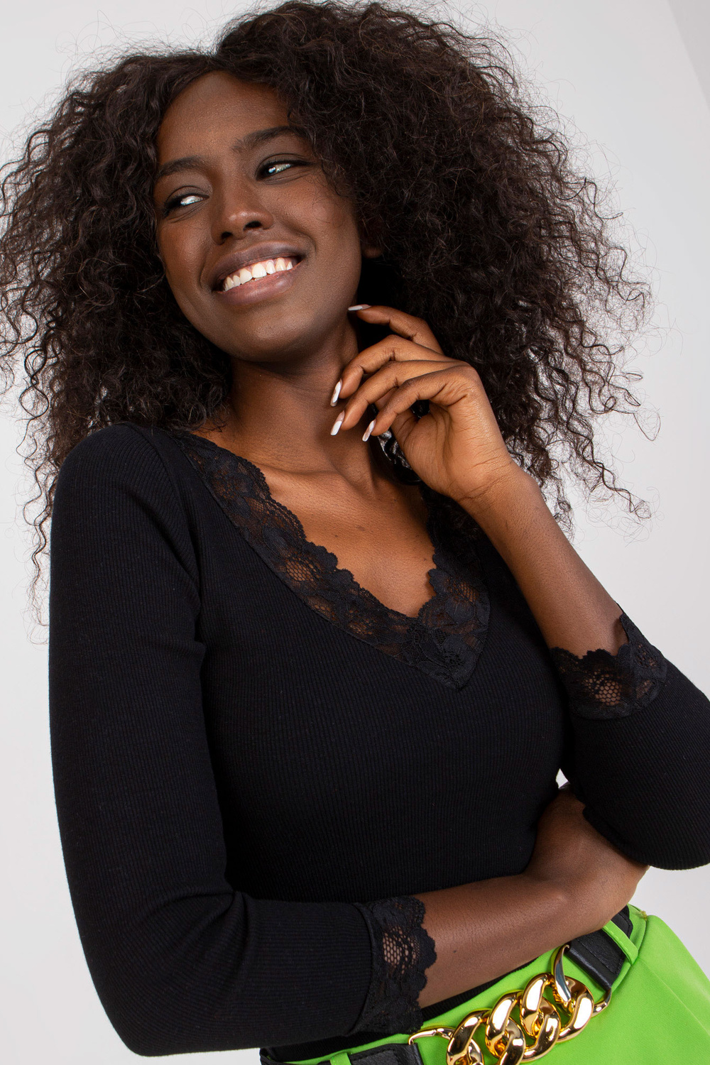 Modele valkā S izmēru. Modeļa izmēri: augums 168 cm, krūtis 82 cm, viduklis 62 cm, gurni 93 cm.