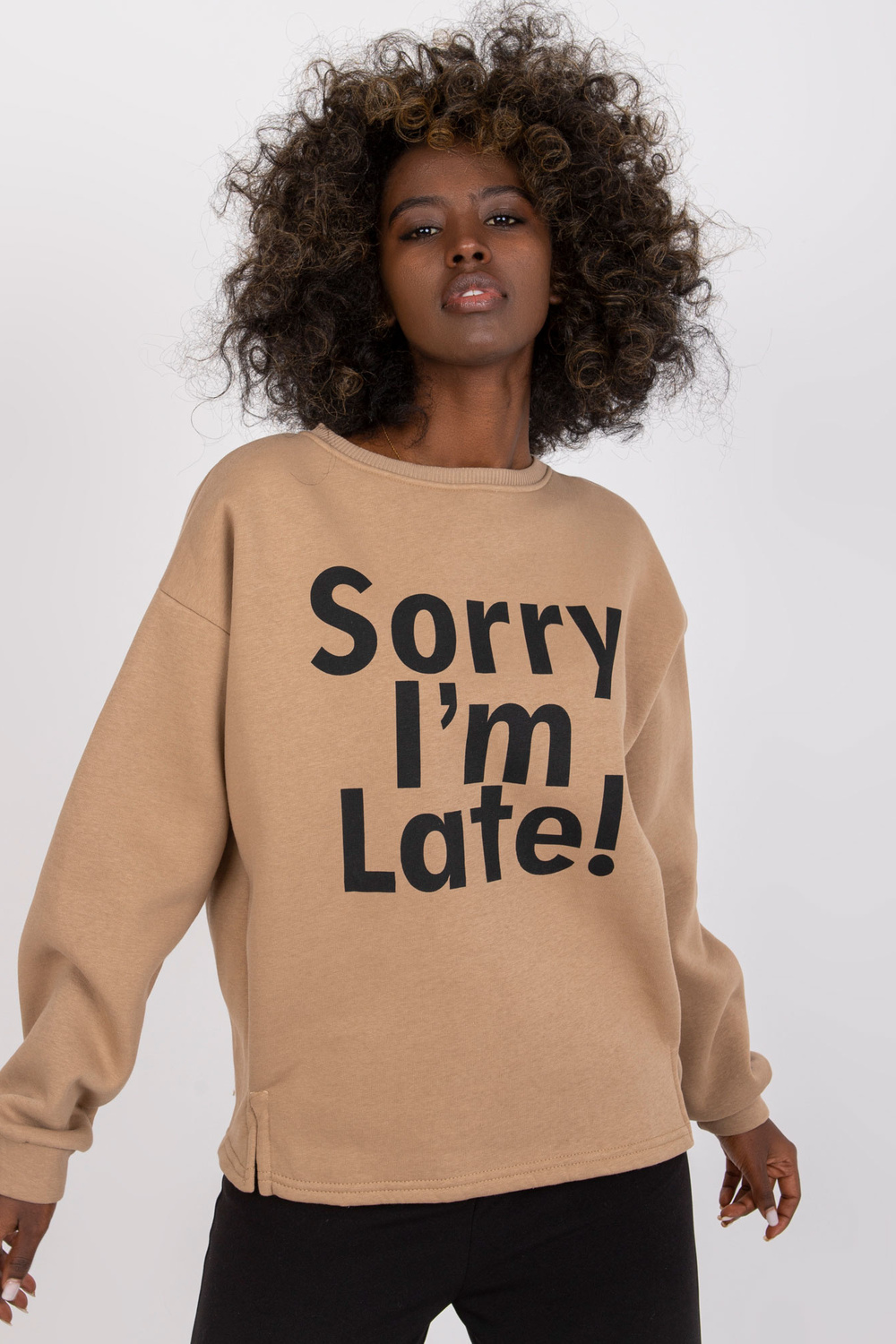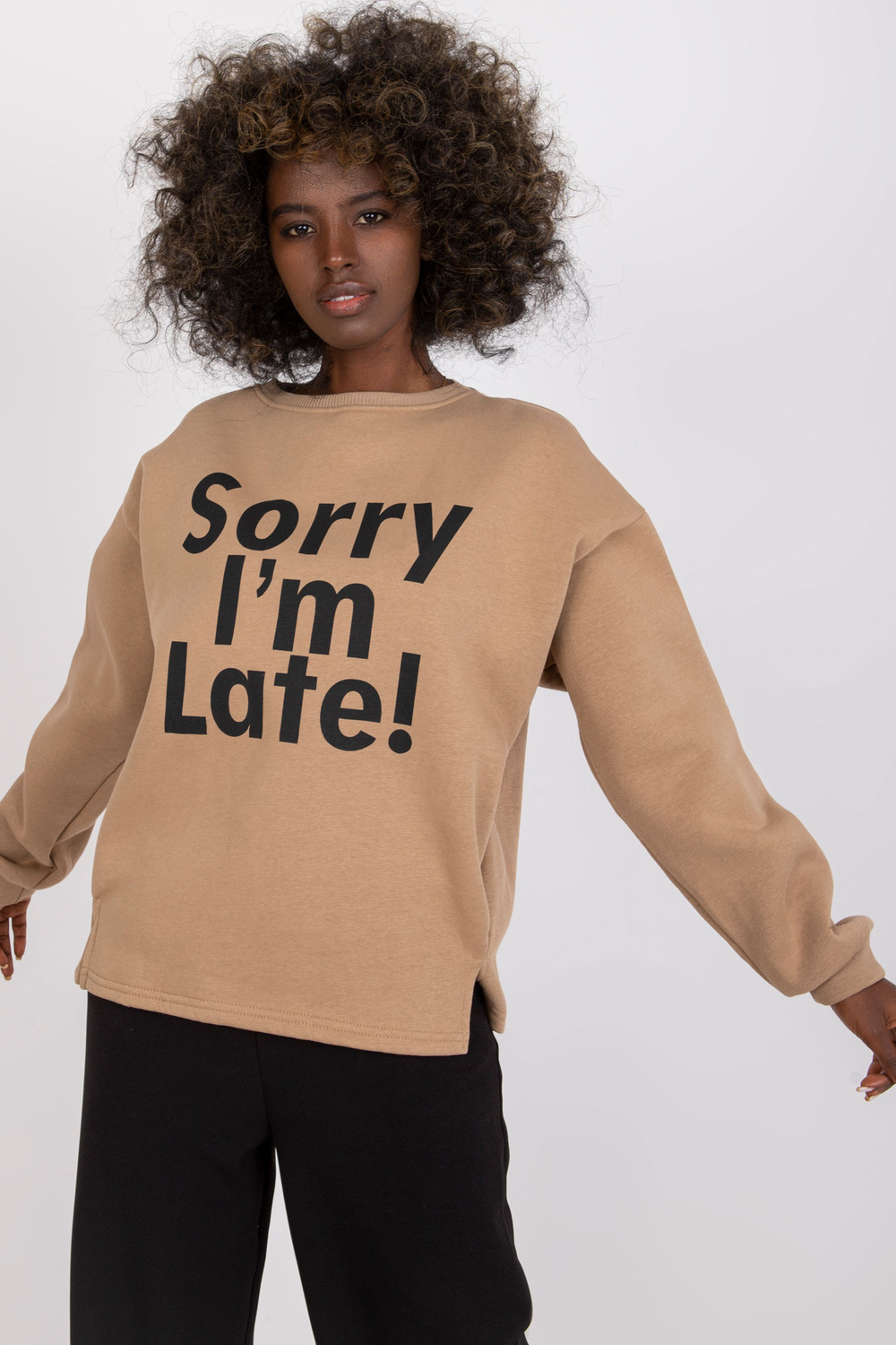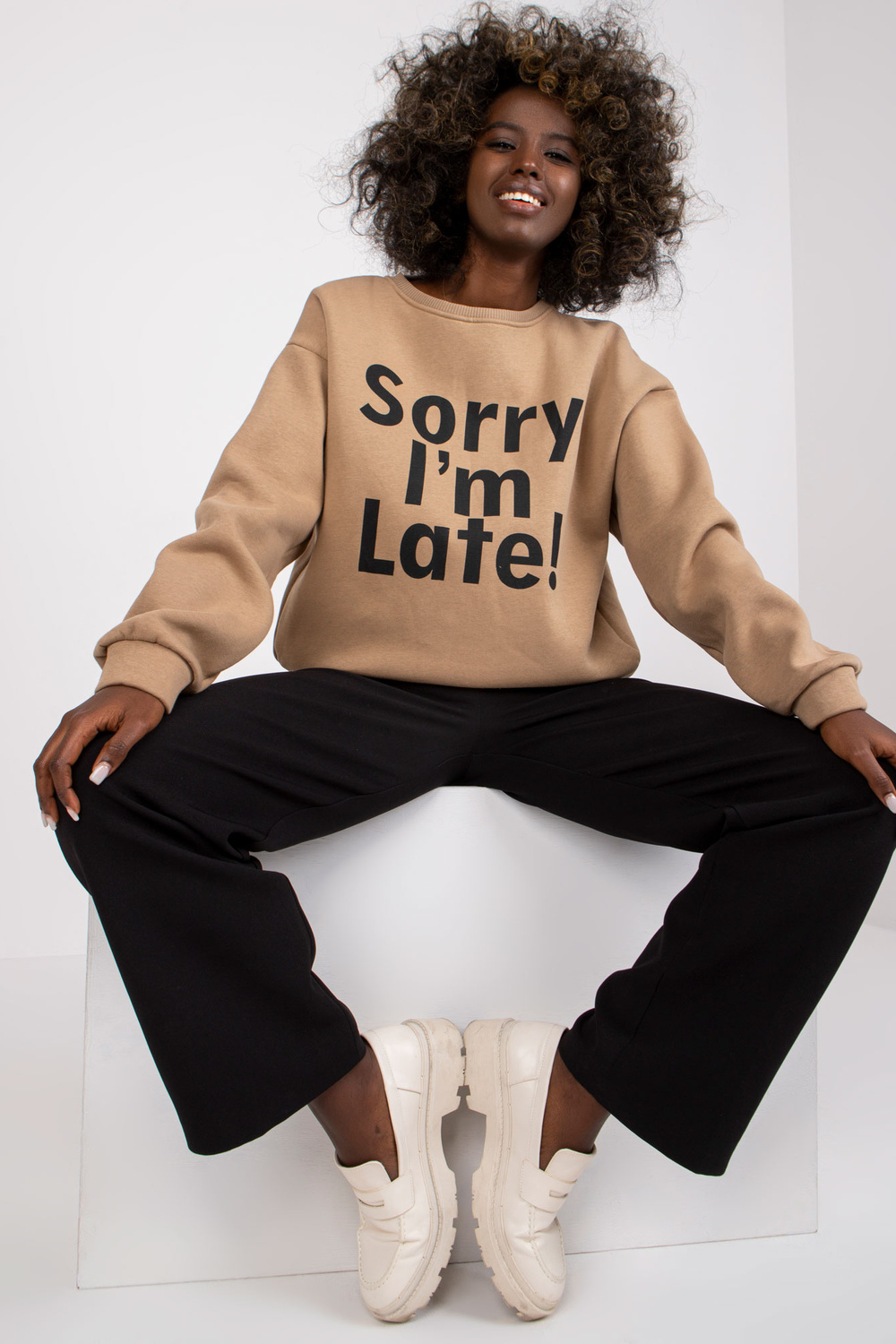 Tumši bēšs liela izmēra sporta krekls ar apdruku bez kapuces Francisco
