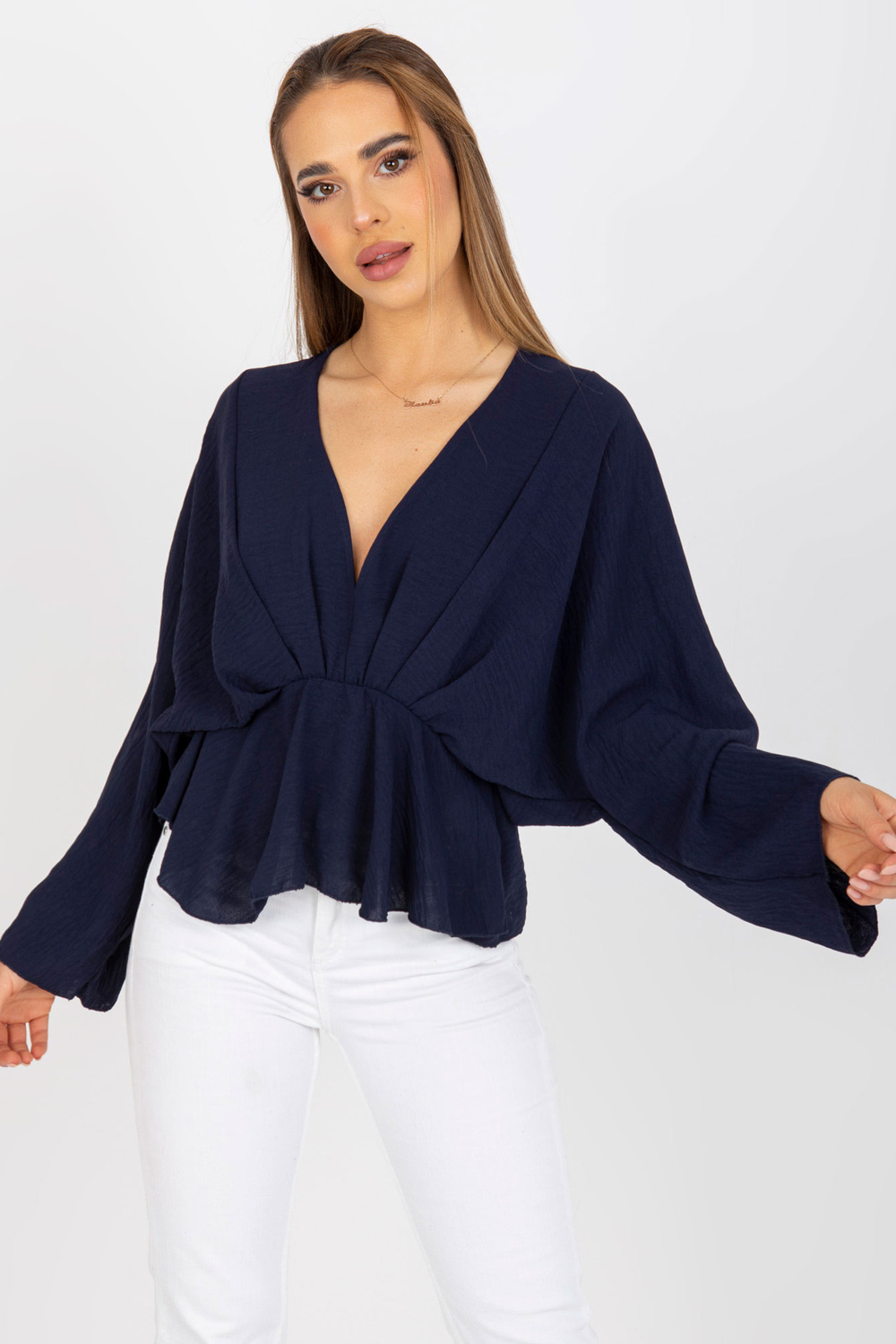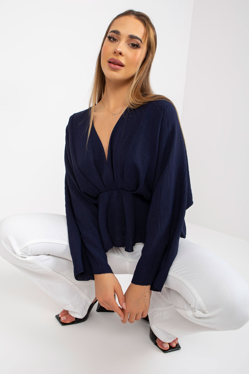 Navyblue viena izmēra blūze ar V kakla izgriezumu Raquela .