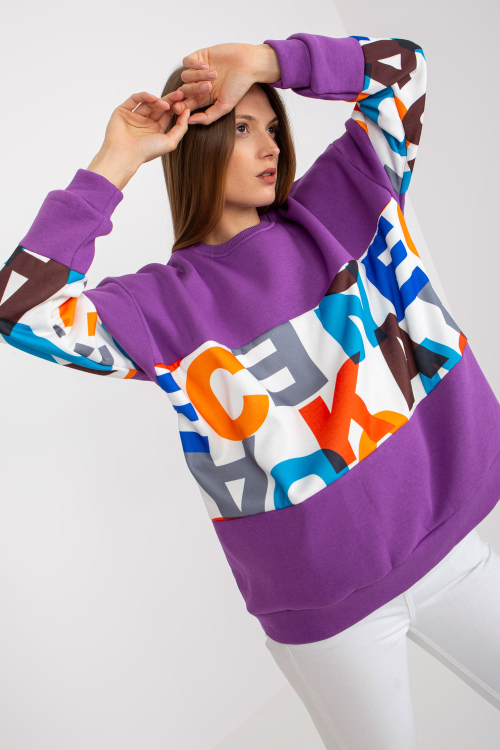 Tumši violets liela izmēra sporta krekls ar Madalynn apdruku.