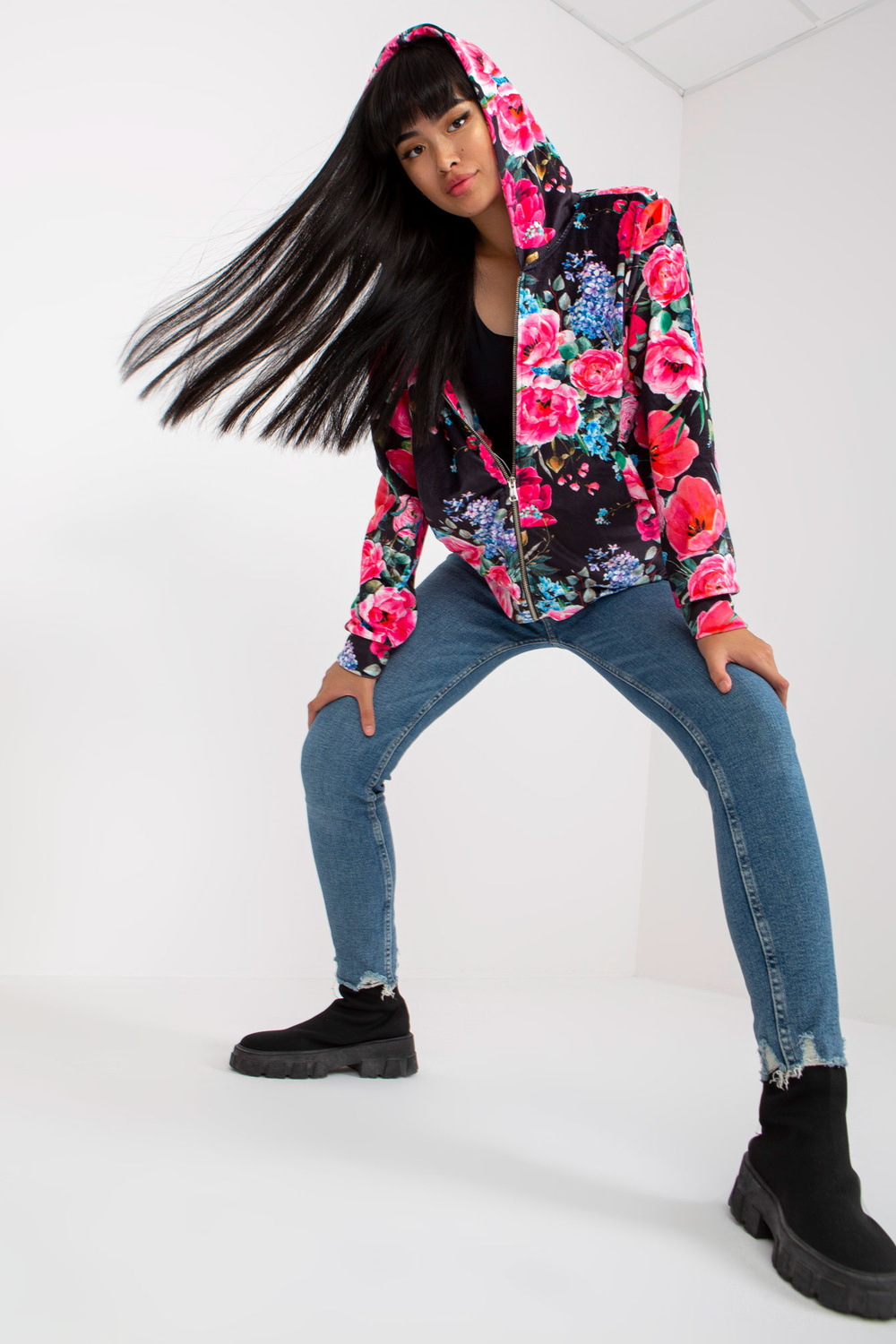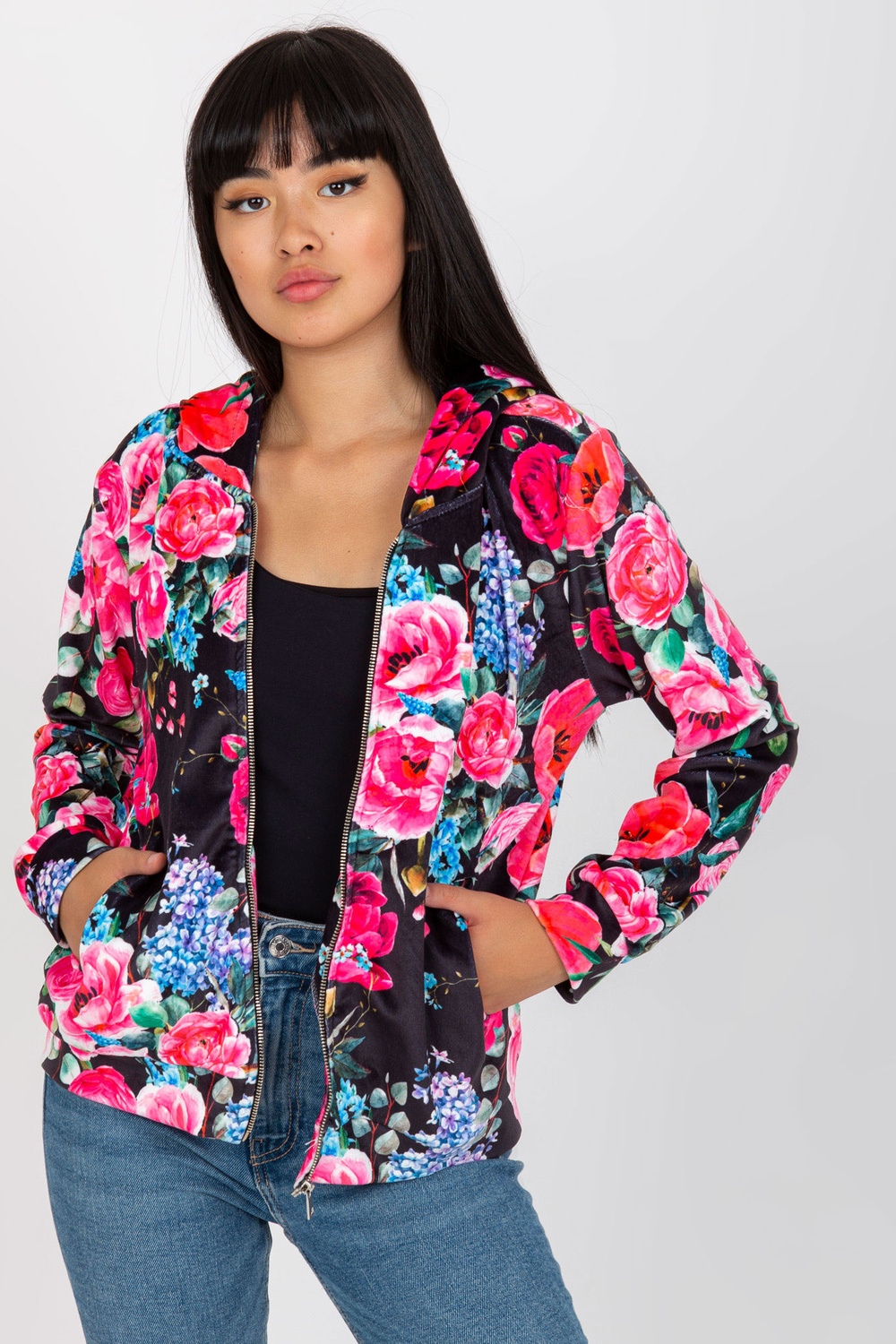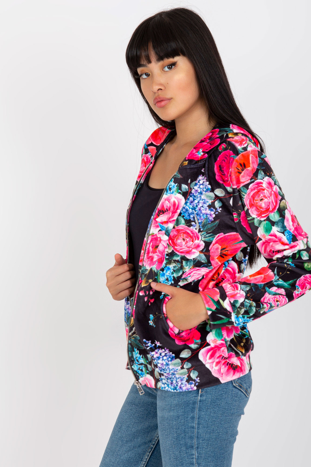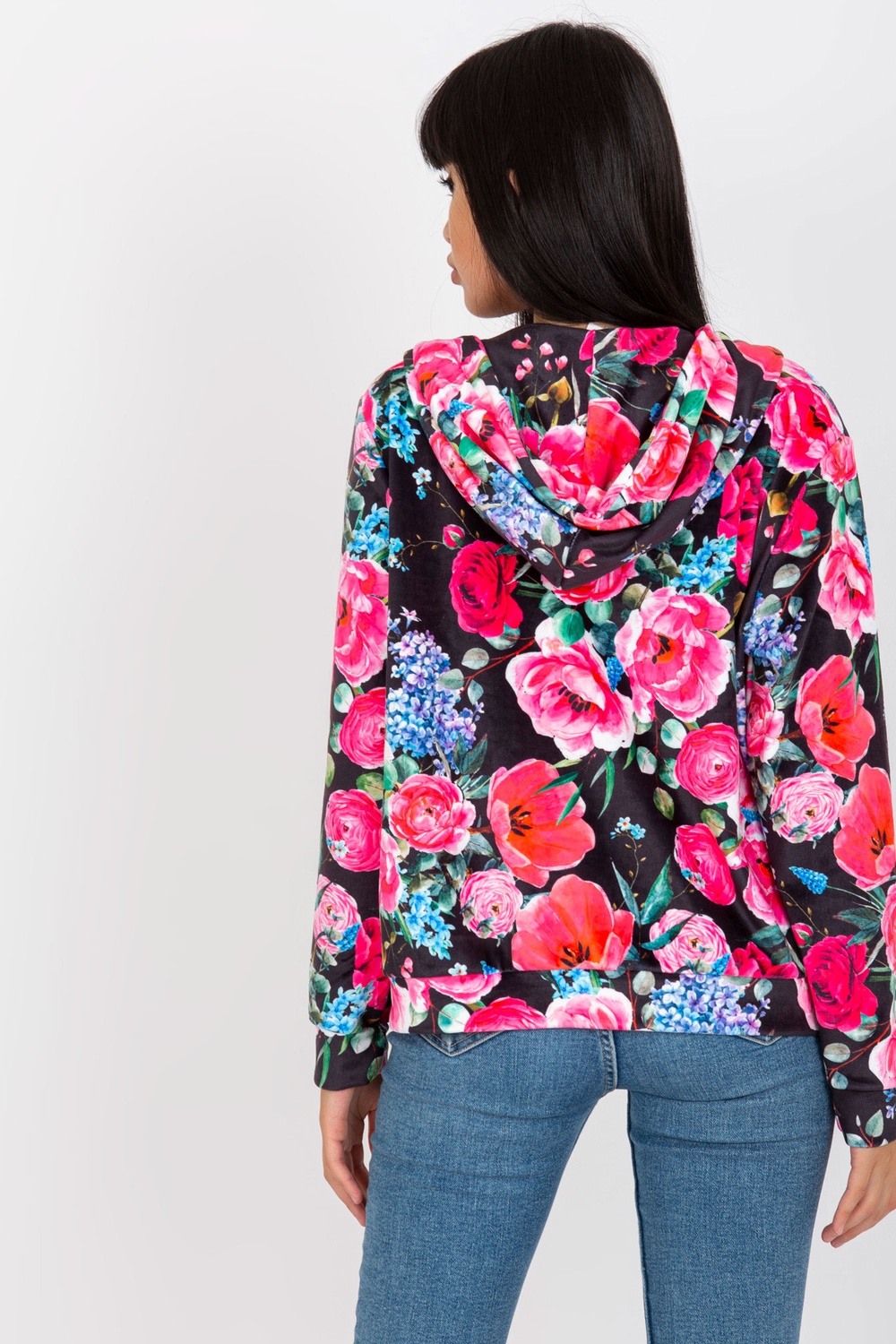 Melnā rozā velūra sporta krekls ar ziediem RUE PARIS . aksesuāri: kabatas, kapuces materiālssastāvs: 90% viskoze, 10% elastāns mazgāšanas metode: veļas mašīna 30°C Produkta kods: RV-BL-8118.89 dominējošais raksts: ziedi Stils: ikdienišķs gadījums: ikdienišķs,