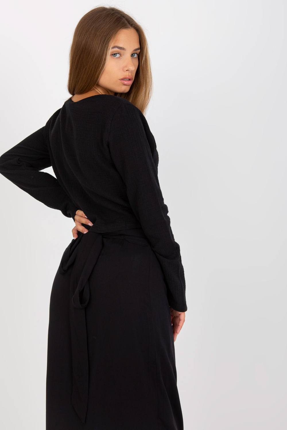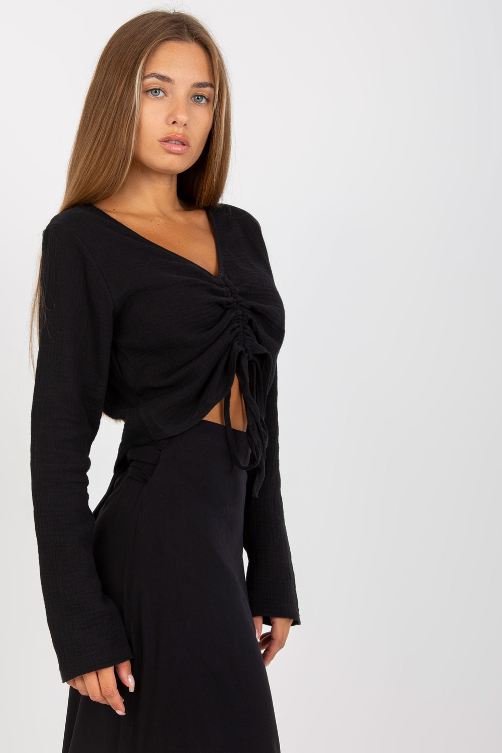 Melna ikdienas muslīna blūze no SUBLEVEL kokvilnas. materiāla sastāvs: 100% kokvilna mazgāšanas metode: veļas mašīna 30°C
