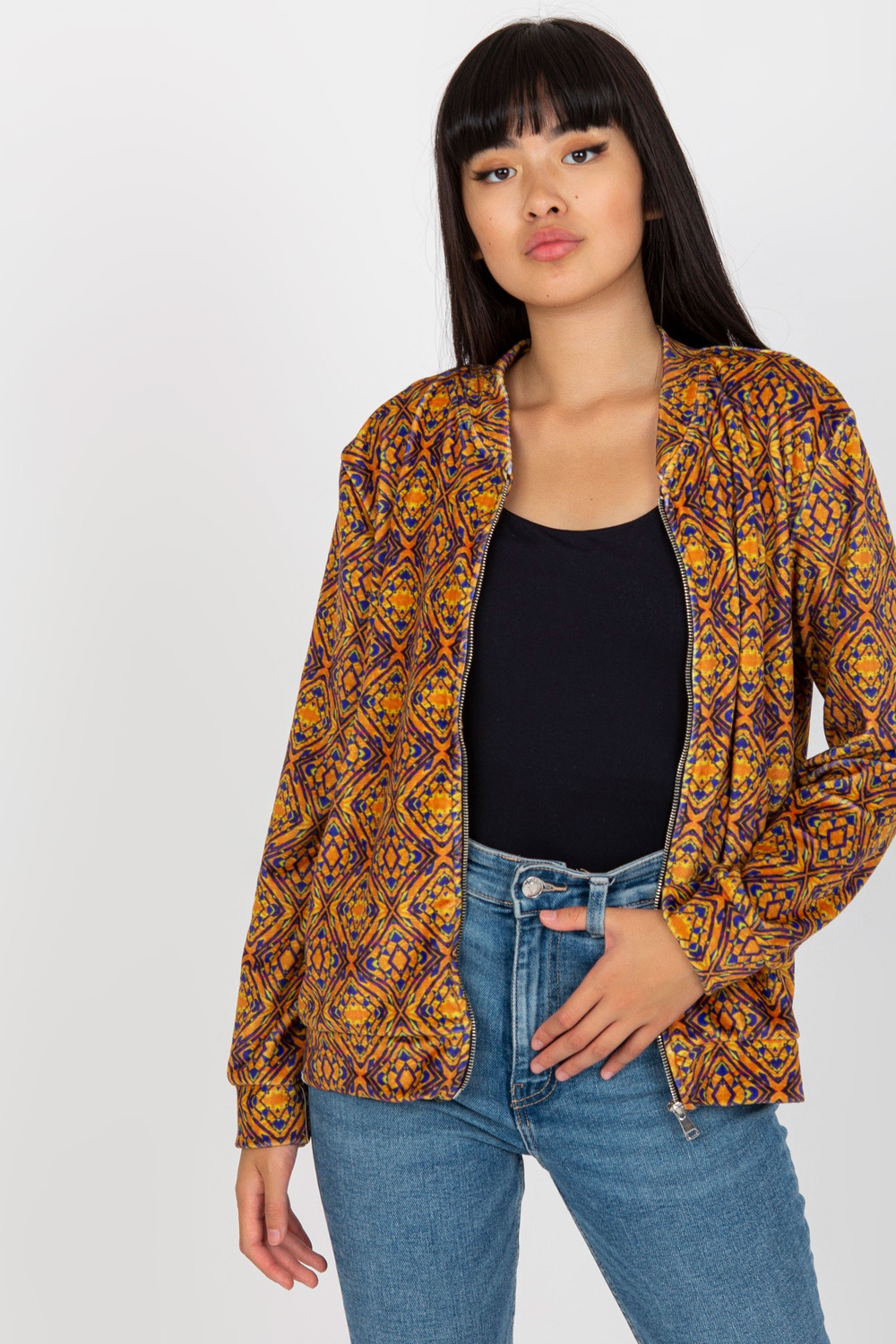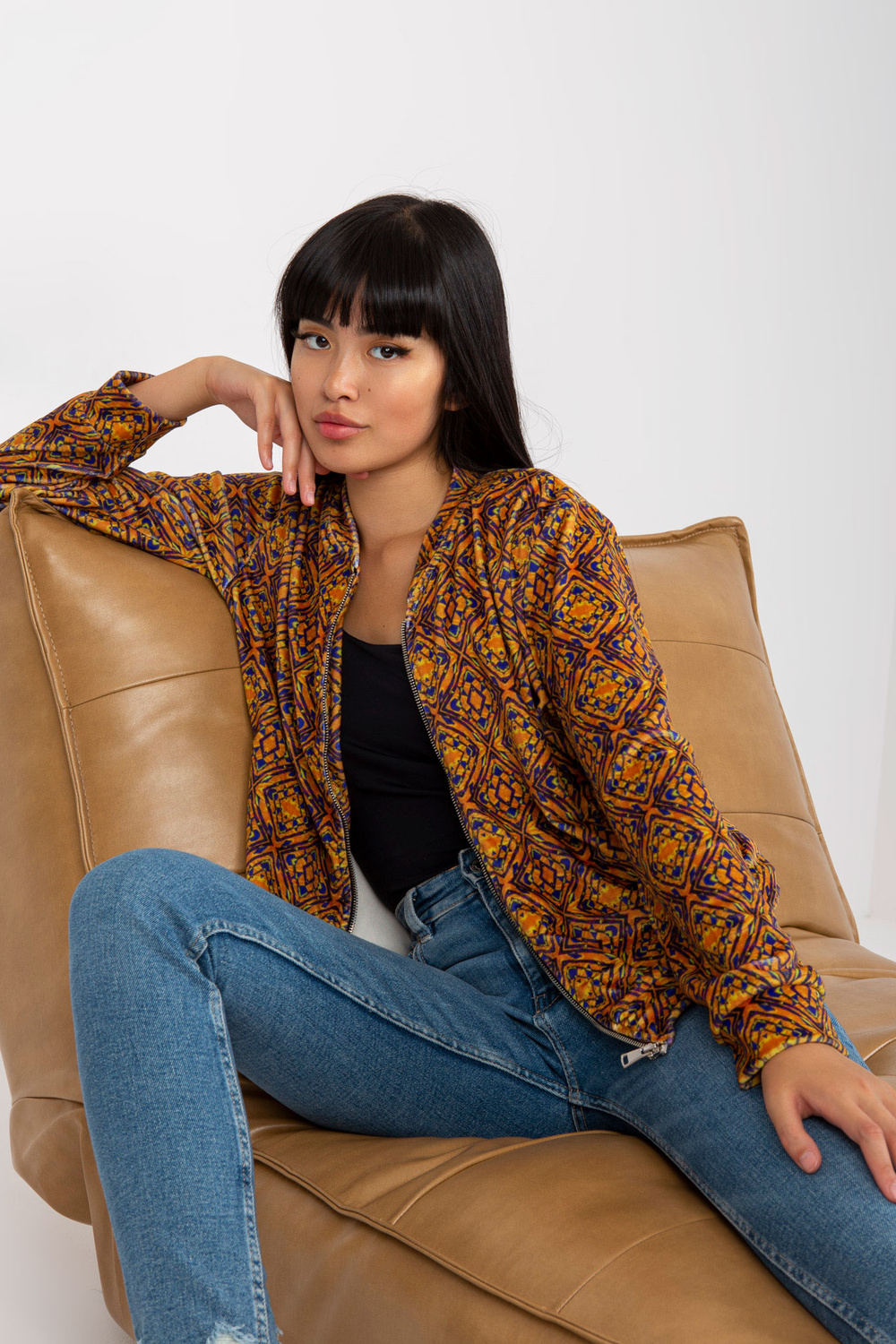 Tumši dzeltens velūra bumbvedējs ar RUE PARIS rakstiem.