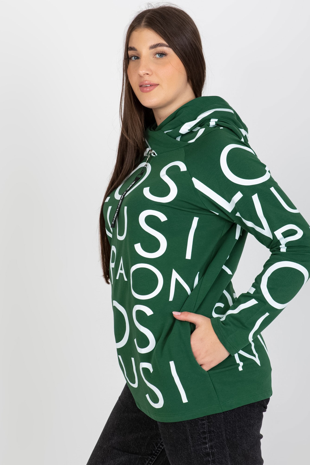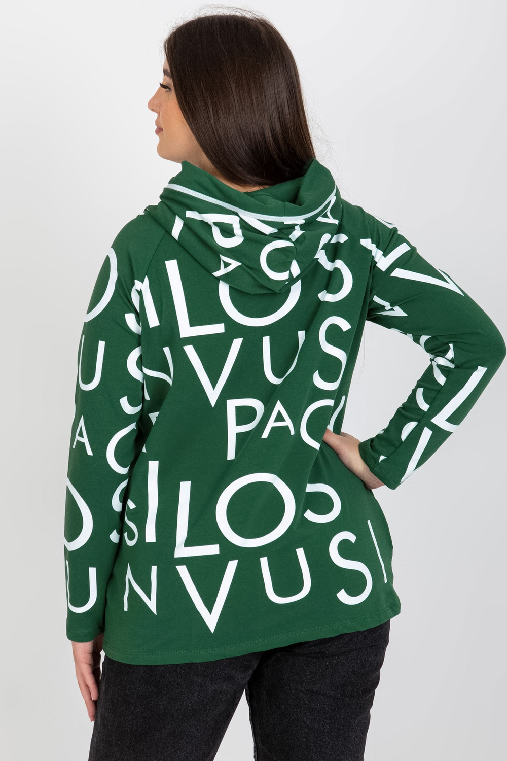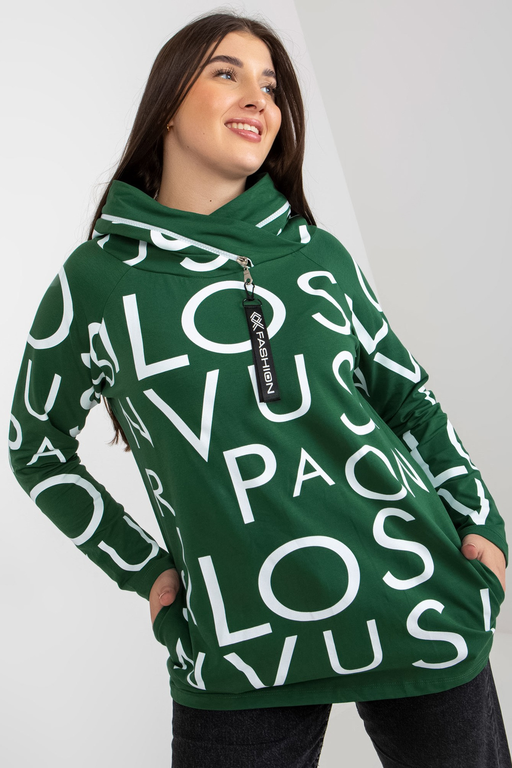 Tumši zaļš liela izmēra kokvilnas sporta krekls ar burtiem.