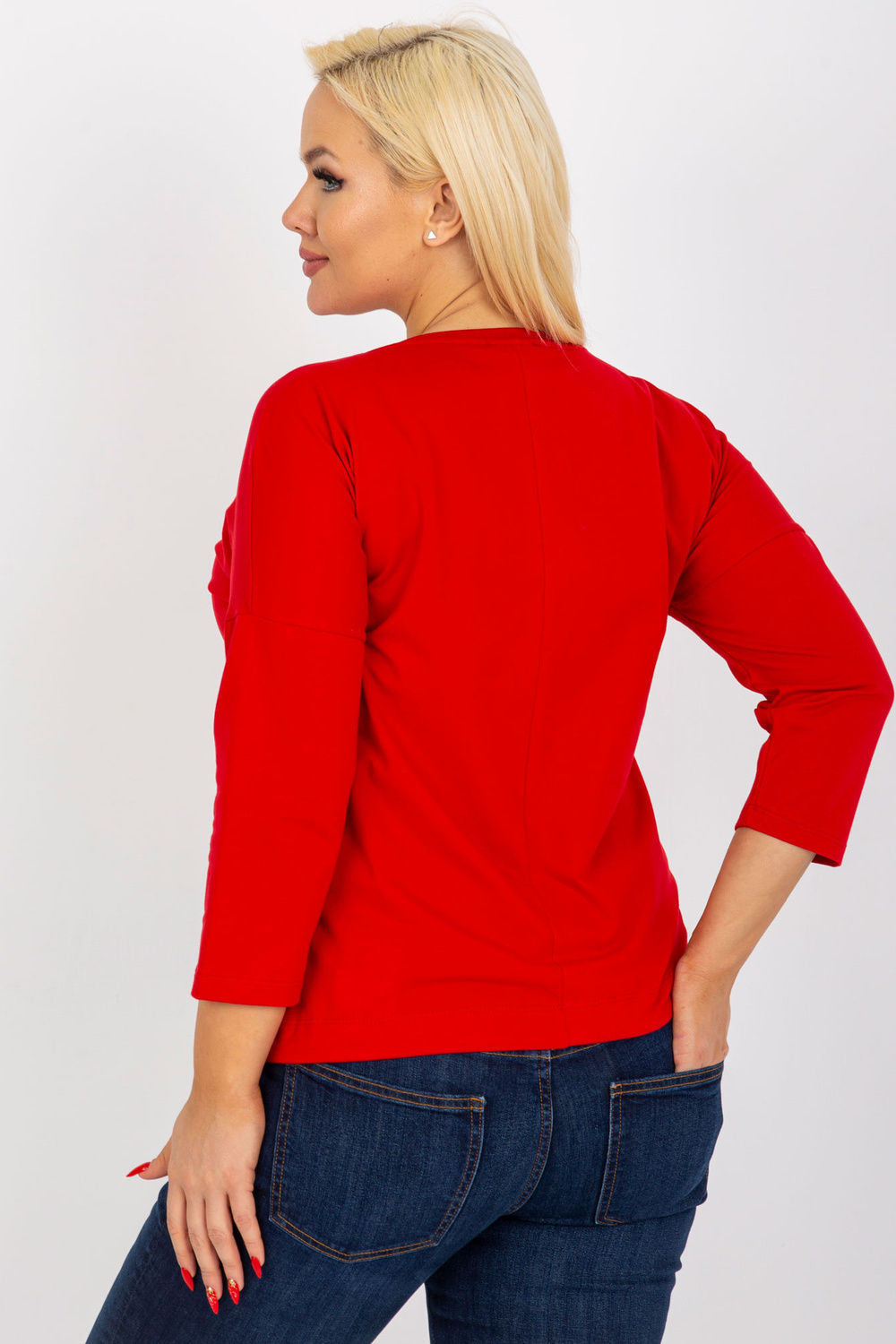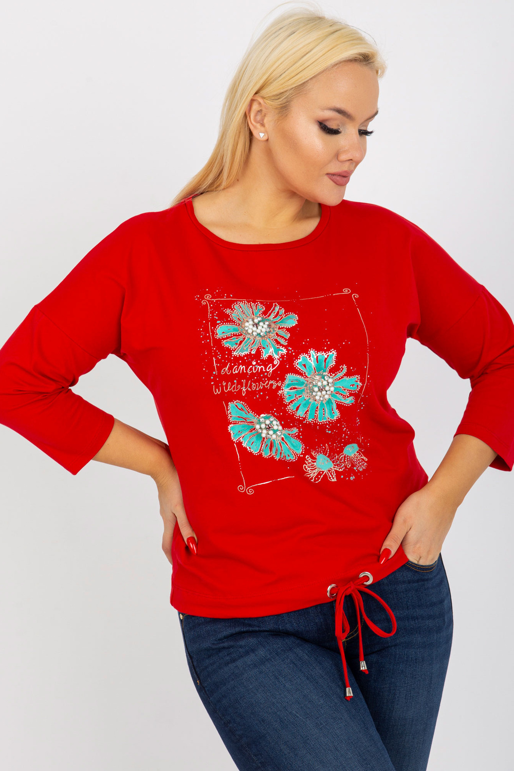 Sarkana sieviešu liela izmēra blūze ar aplikāciju un apdruku