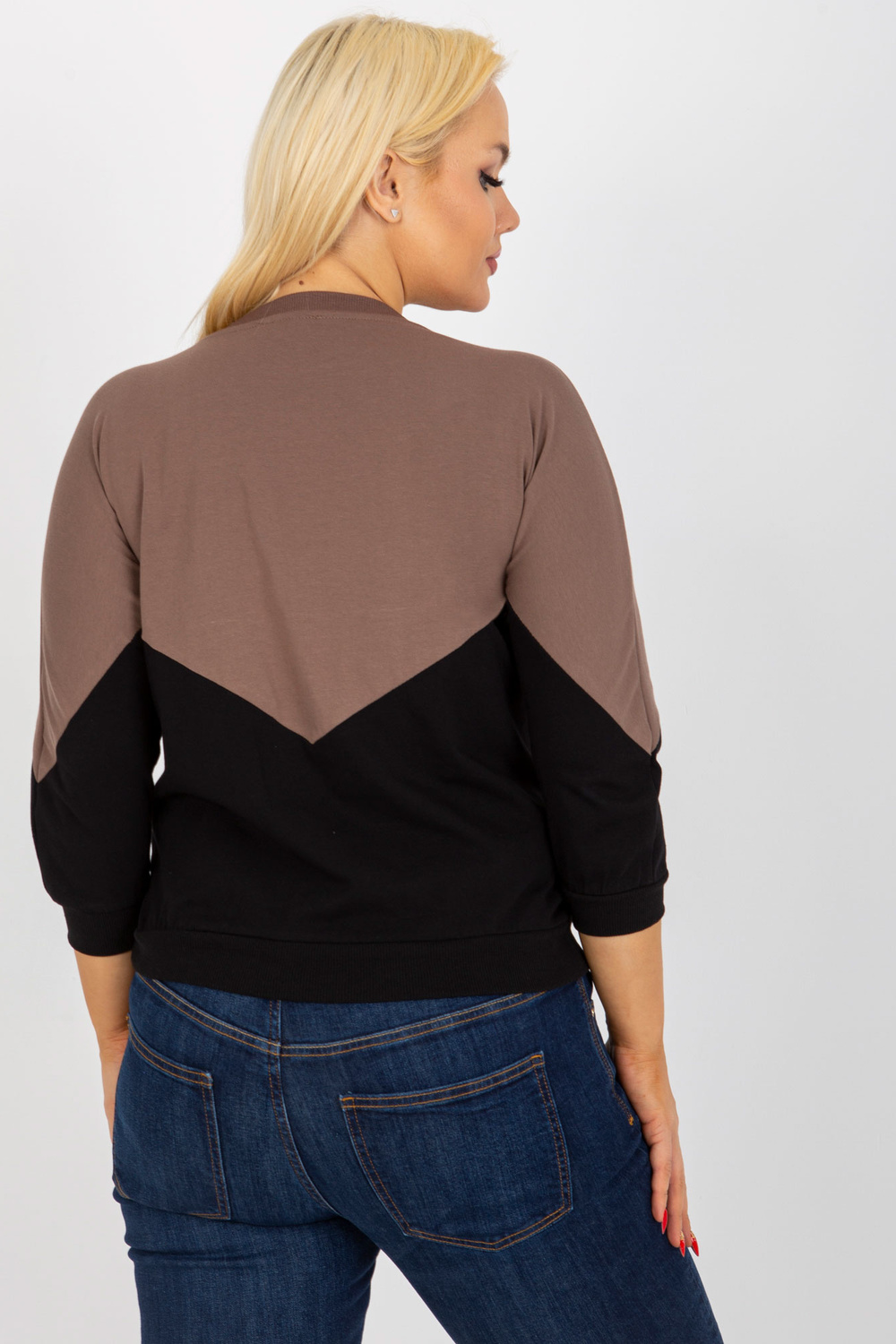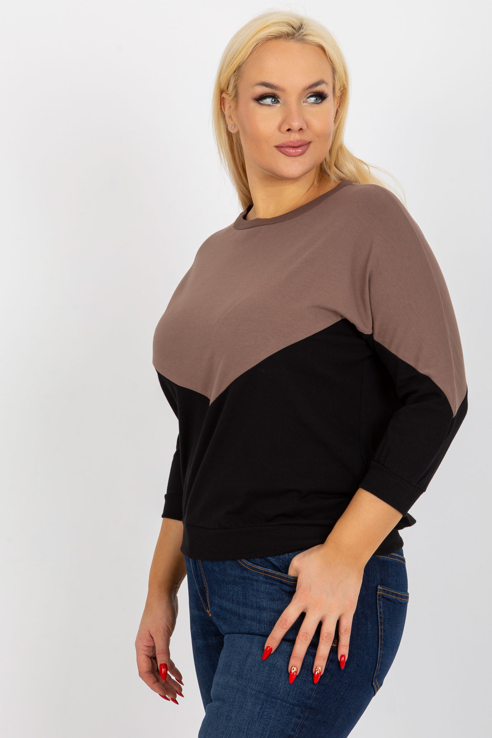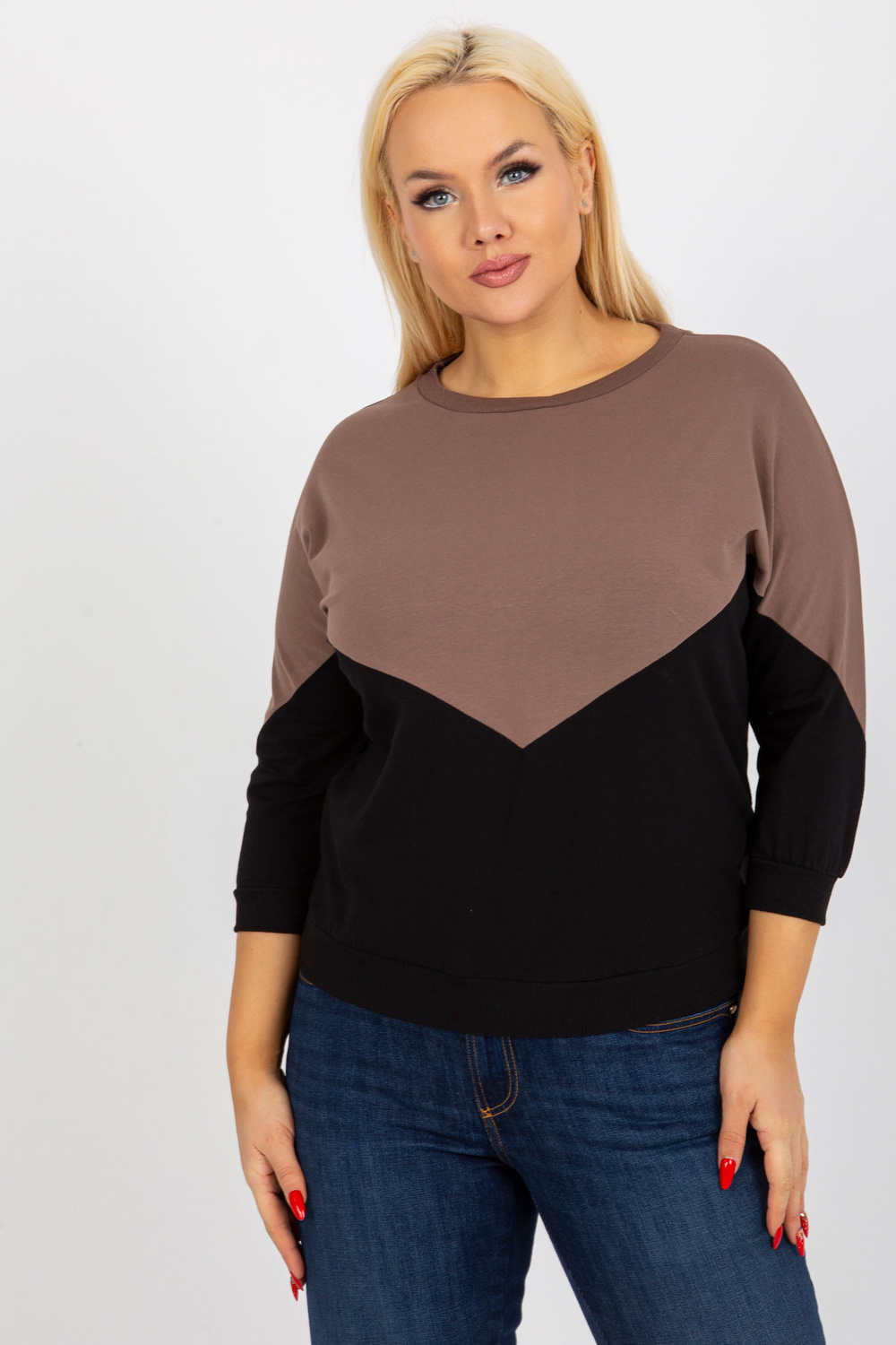 Brūna un melna sieviešu liela izmēra pamata blūze no kokvilnas.