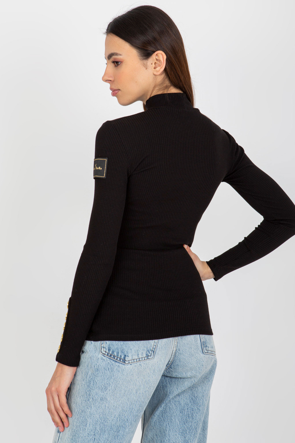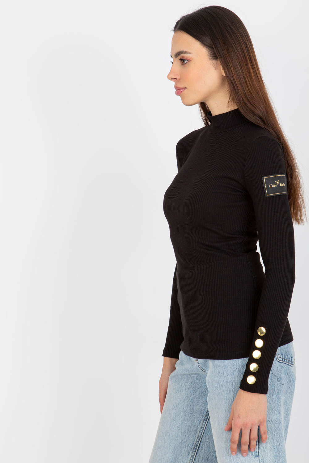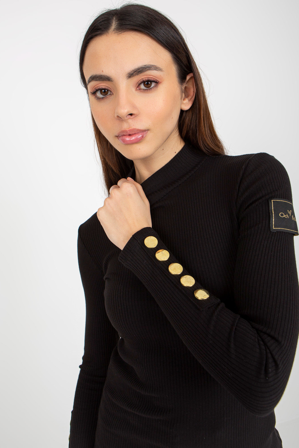 Melna pieguloša blūze ar pusapkakli un svītru OCH BELLA.