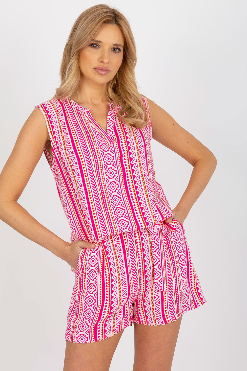 Rozā boho blūze ar V kakla izgriezumu FRESH MADE
