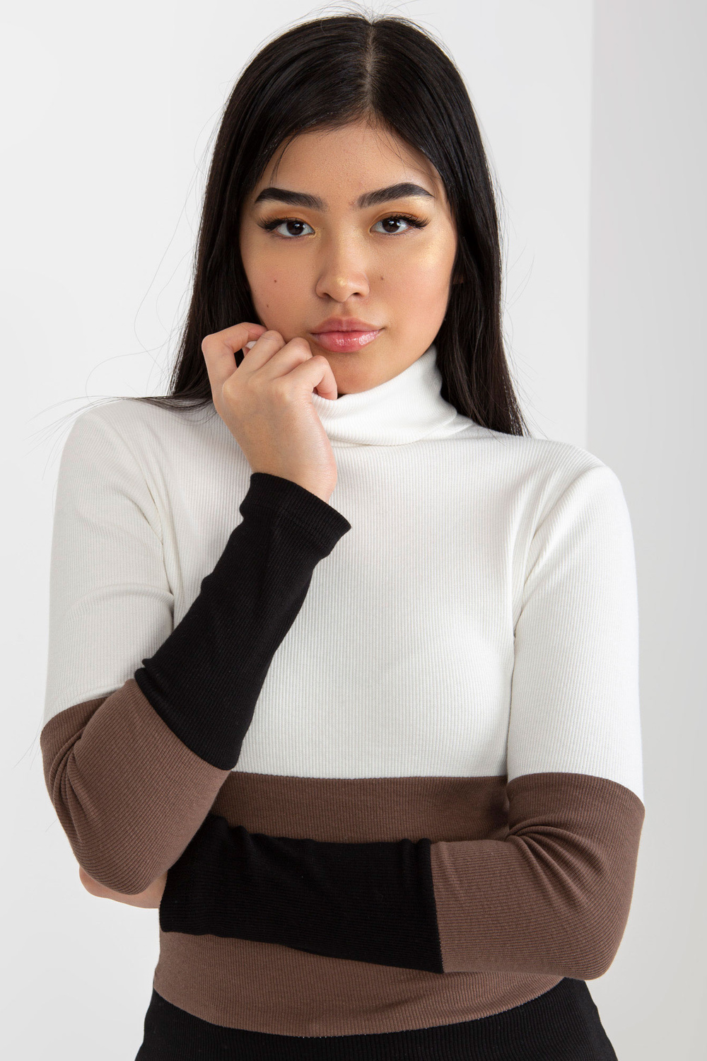 Ekruli melna pamata blūze ar bruņurupuču apkakli un svītrām RUE PARIS.