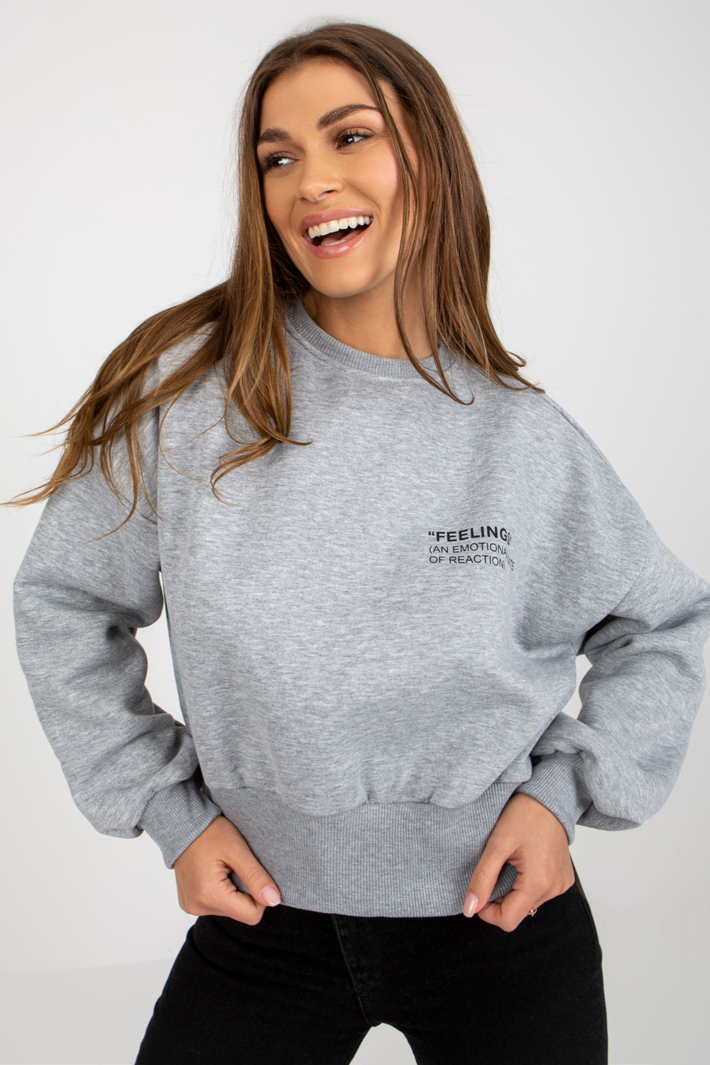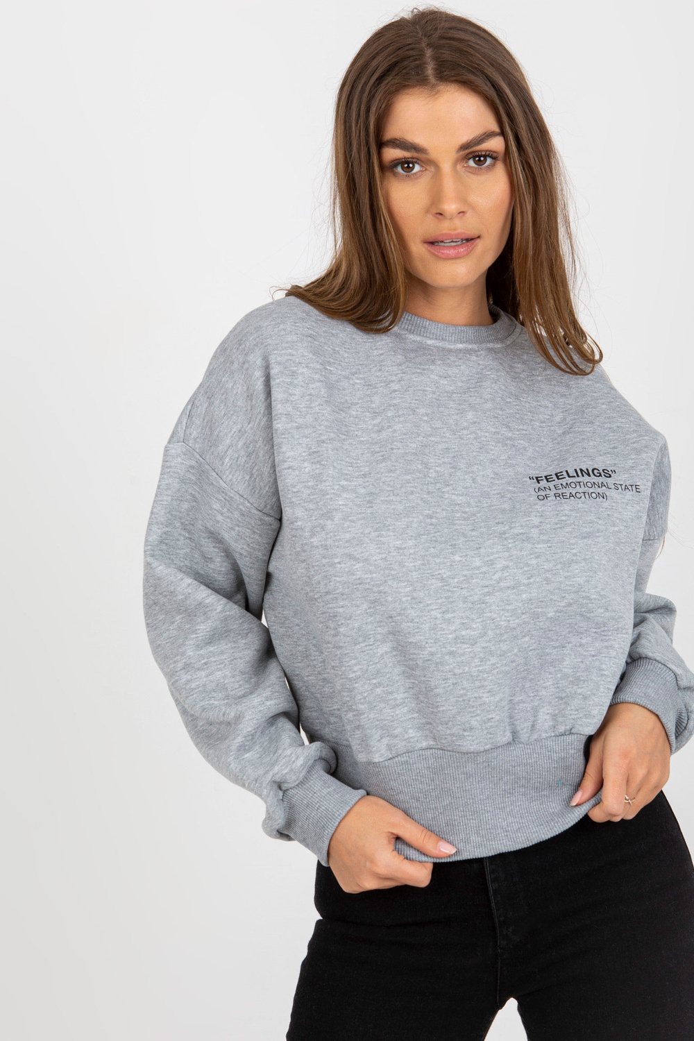 Pelēks īss džemperis bez kapuces ar apaļu kakla izgriezumu
