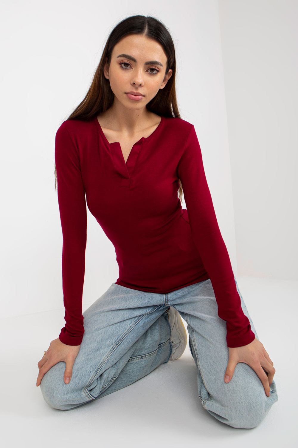 Burgundijas krāsas pieguļoša blūze ikdienas viskozei.