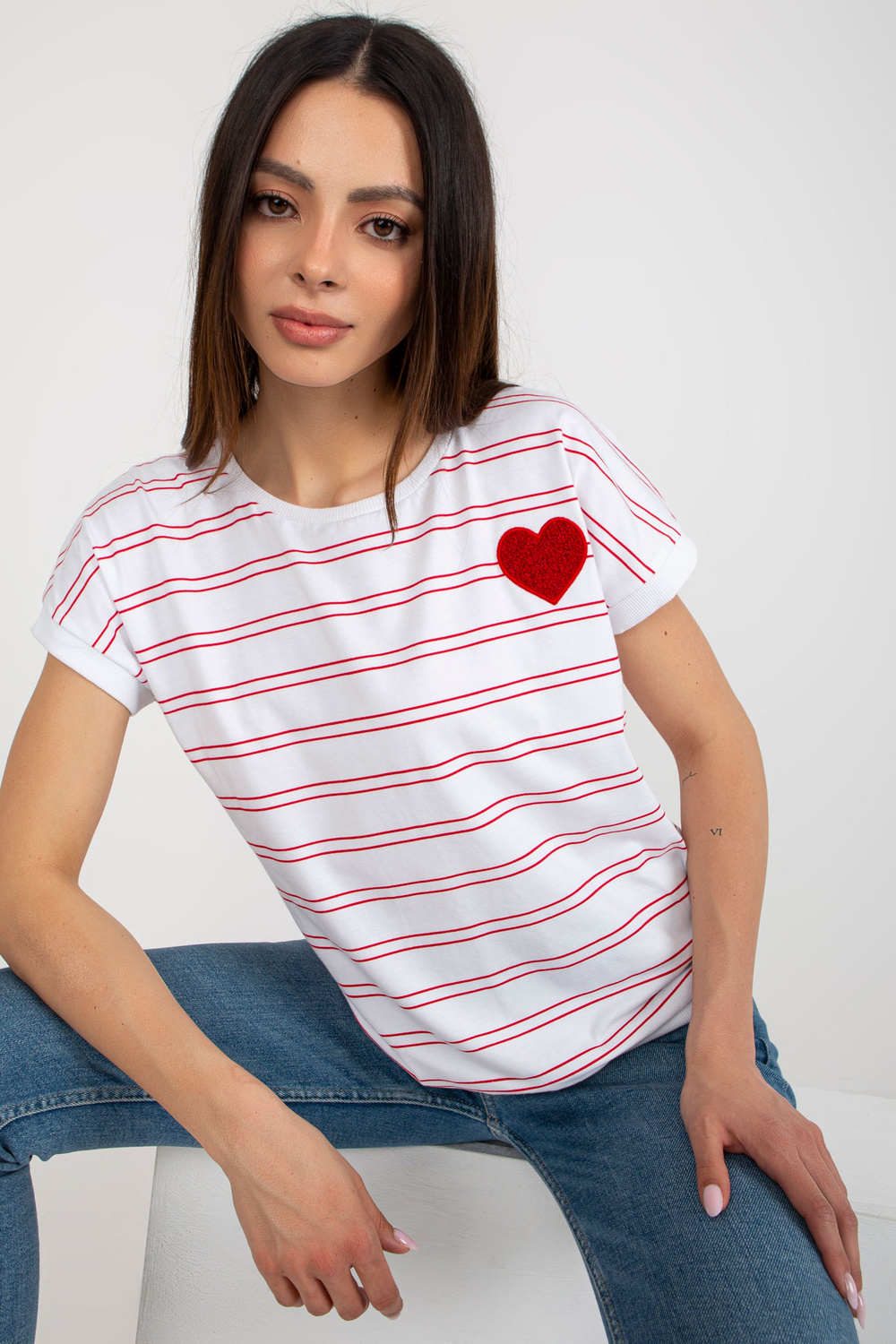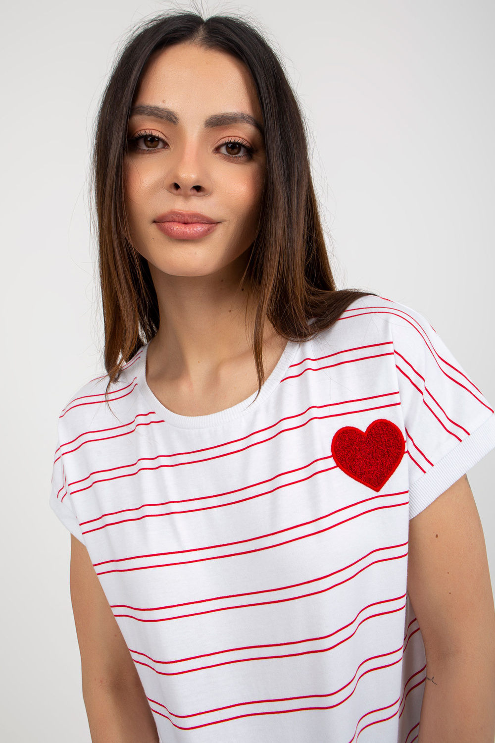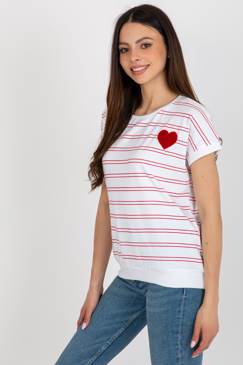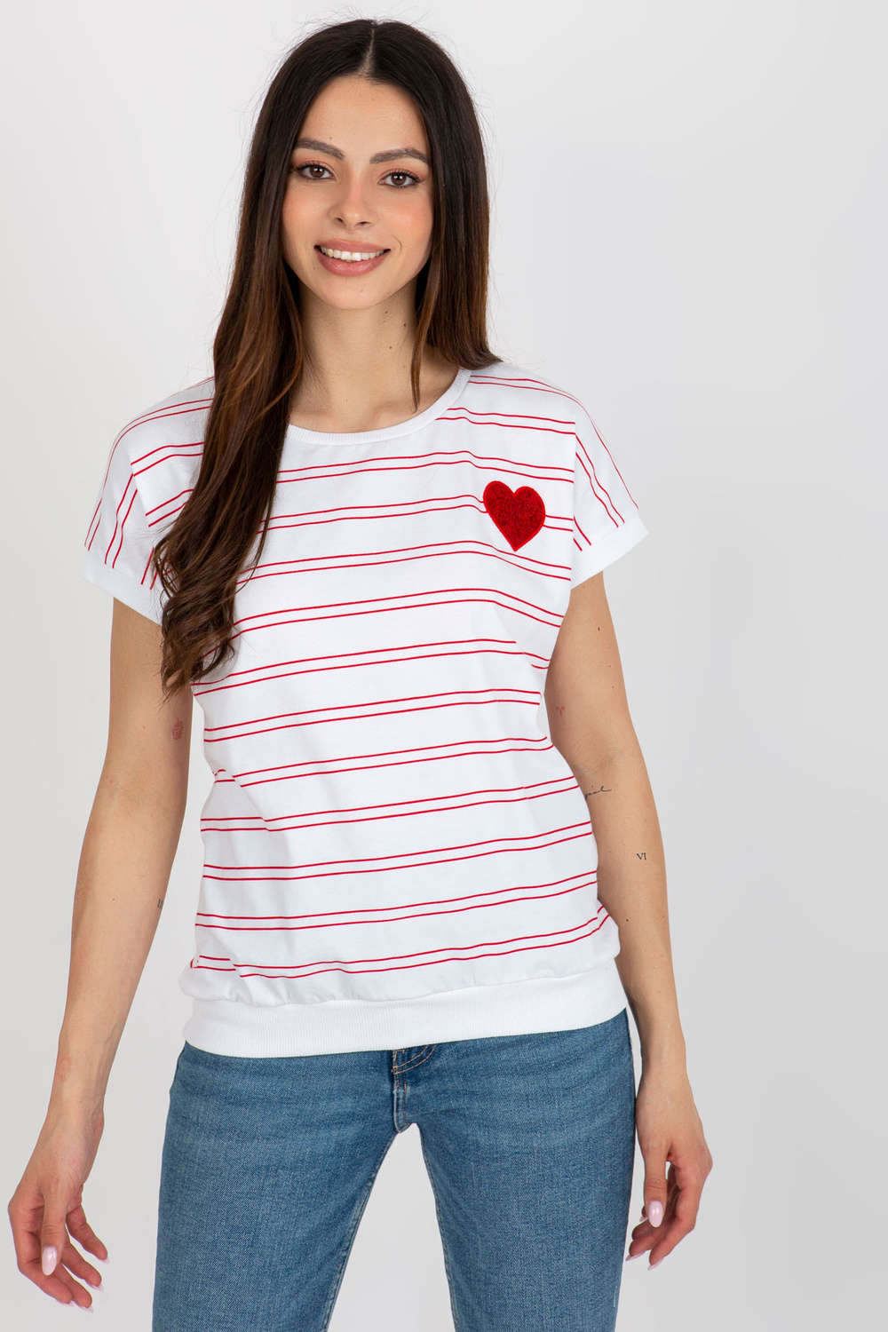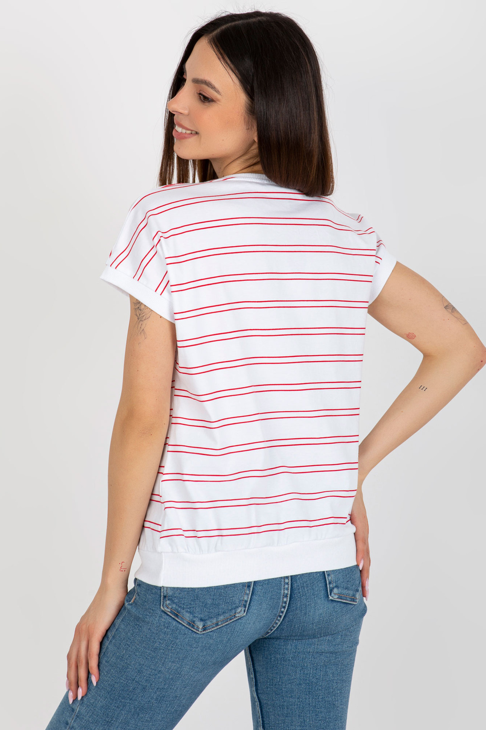 Balta un sarkana ikdienas blūze ar kokvilnas svītrām.