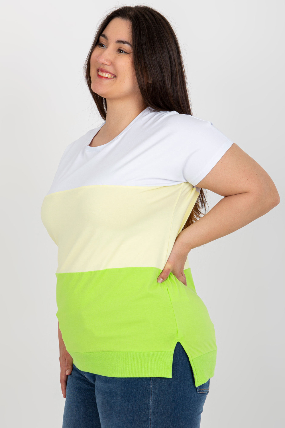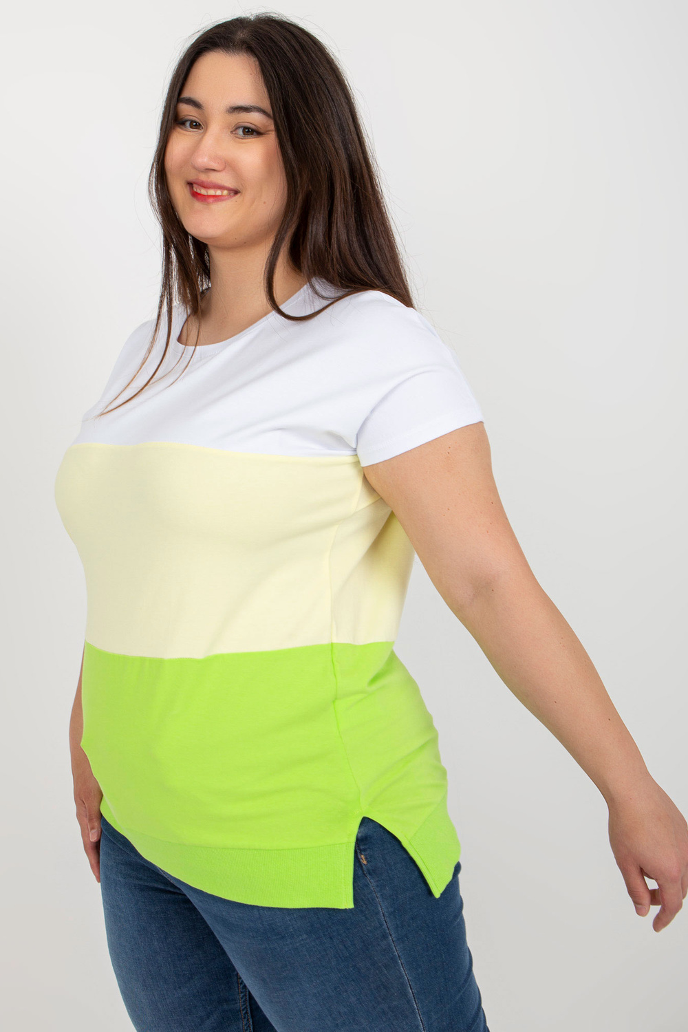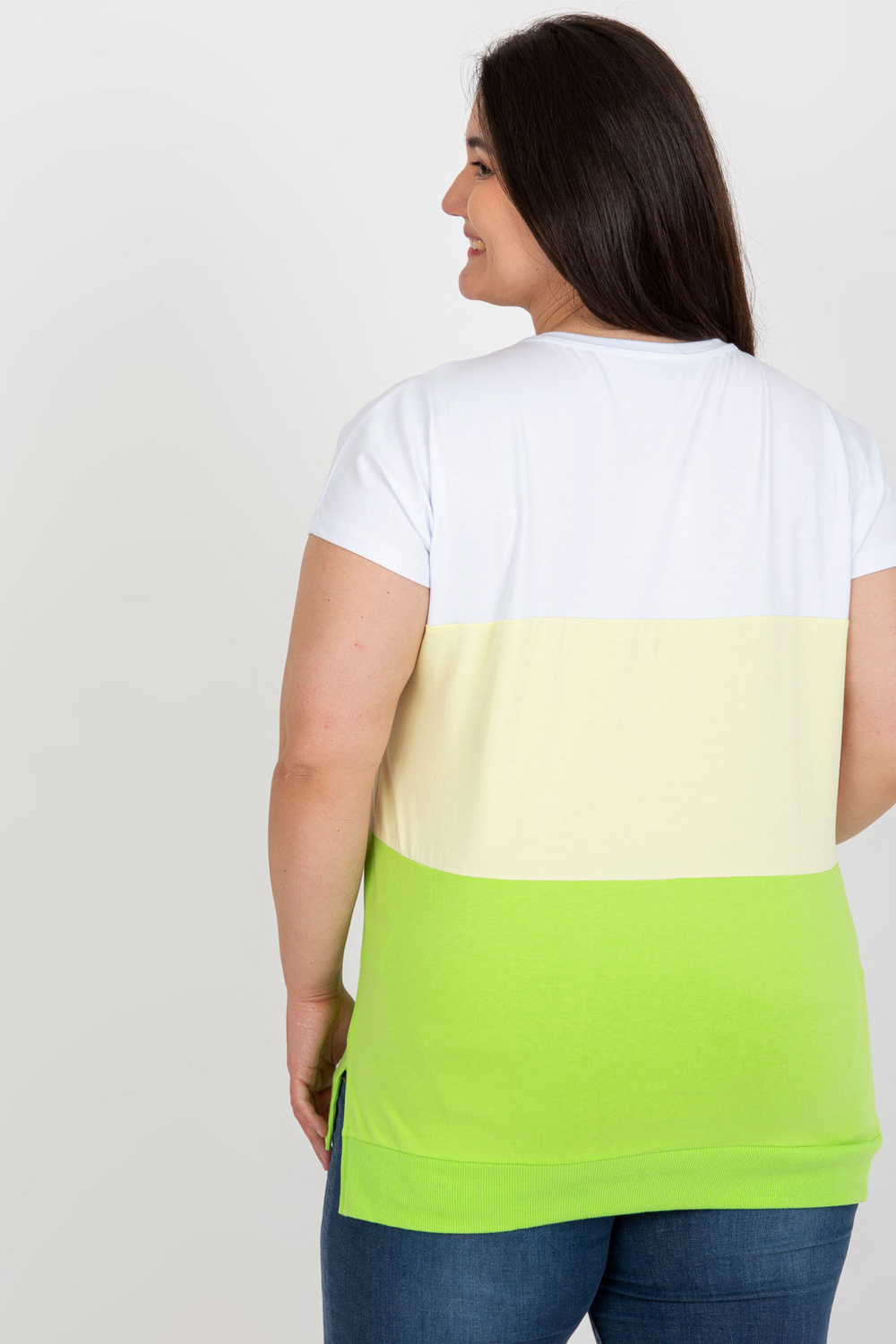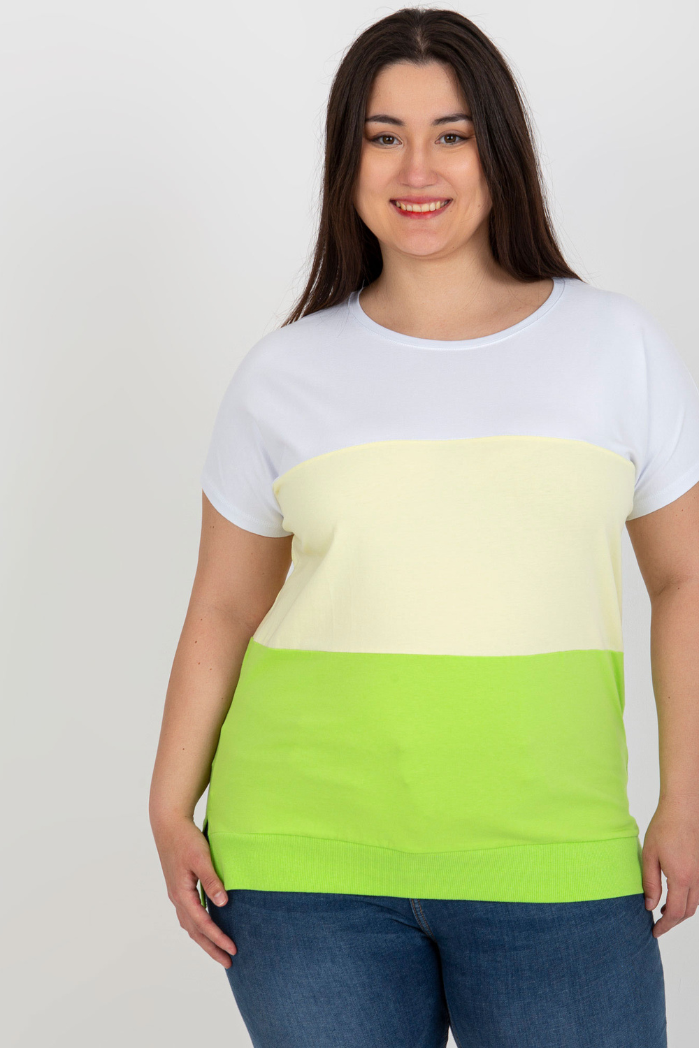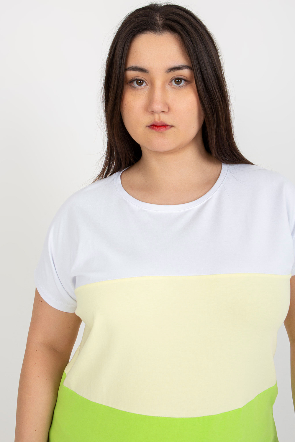 Balta un dzeltena sieviešu liela izmēra blūze no kokvilnas.
