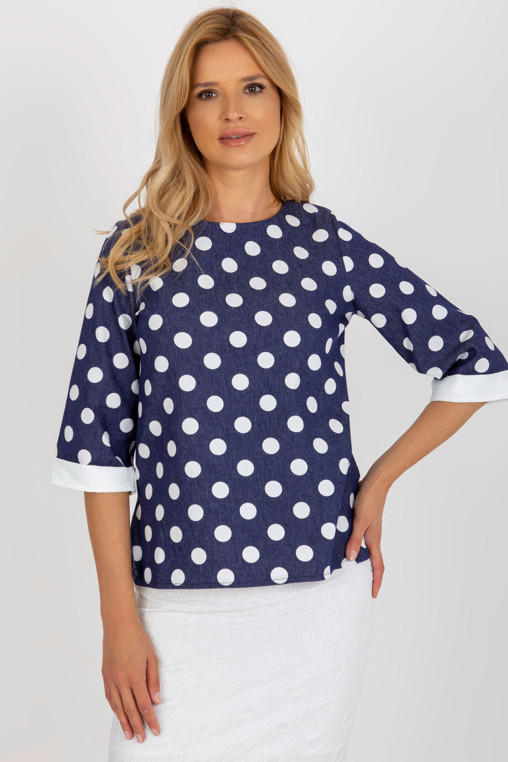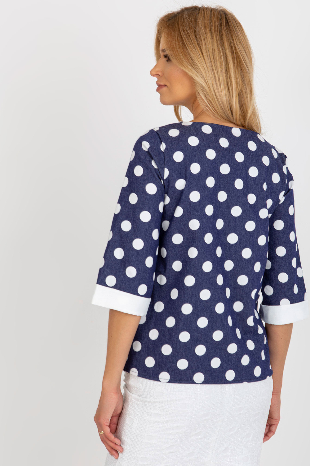 Blūzes izmēri 36. izmēram mērot uz plakanas: paduses platums - 48 cm, piedurknes garums - 40 cm, kopējais garums - 61 cm.