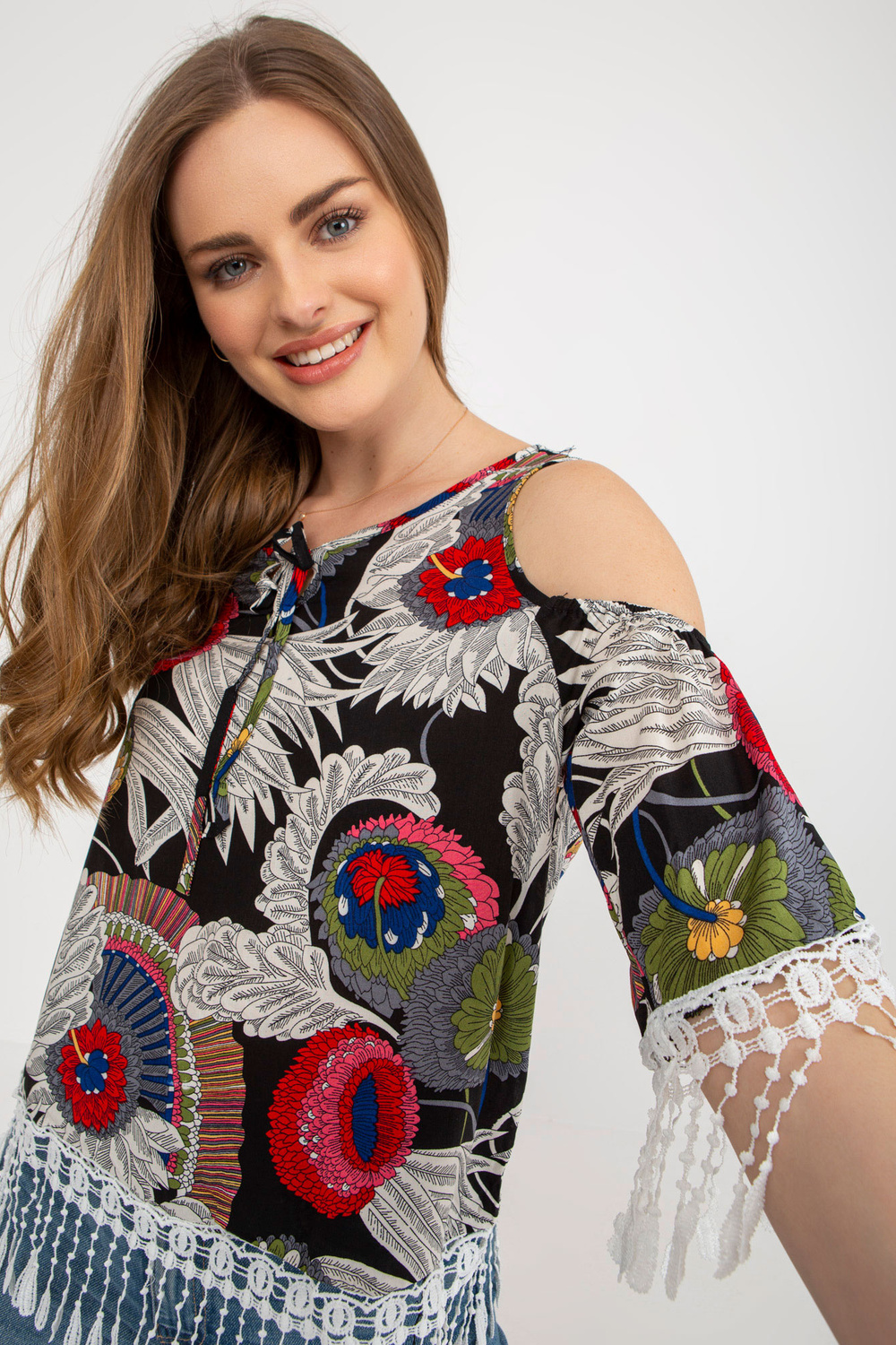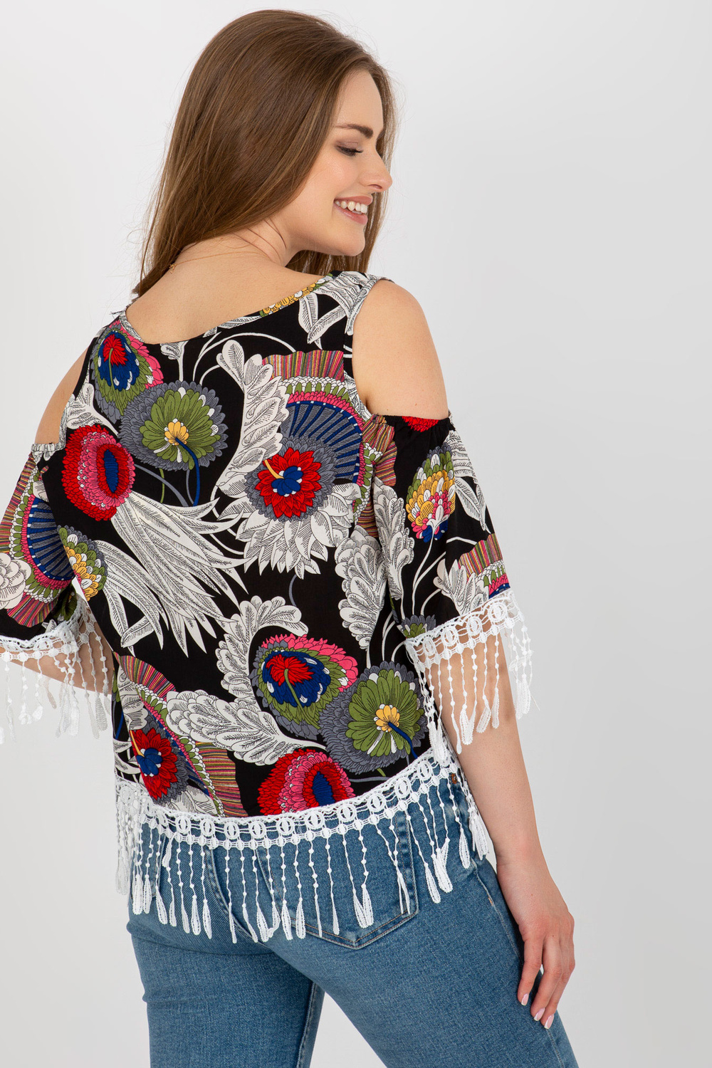 Blūzes izmēri vienā izmērā mērīti plakanā: platums zem padusēm - 51 cm, piedurknes garums - 40 cm, kopējais garums - 64 cm.